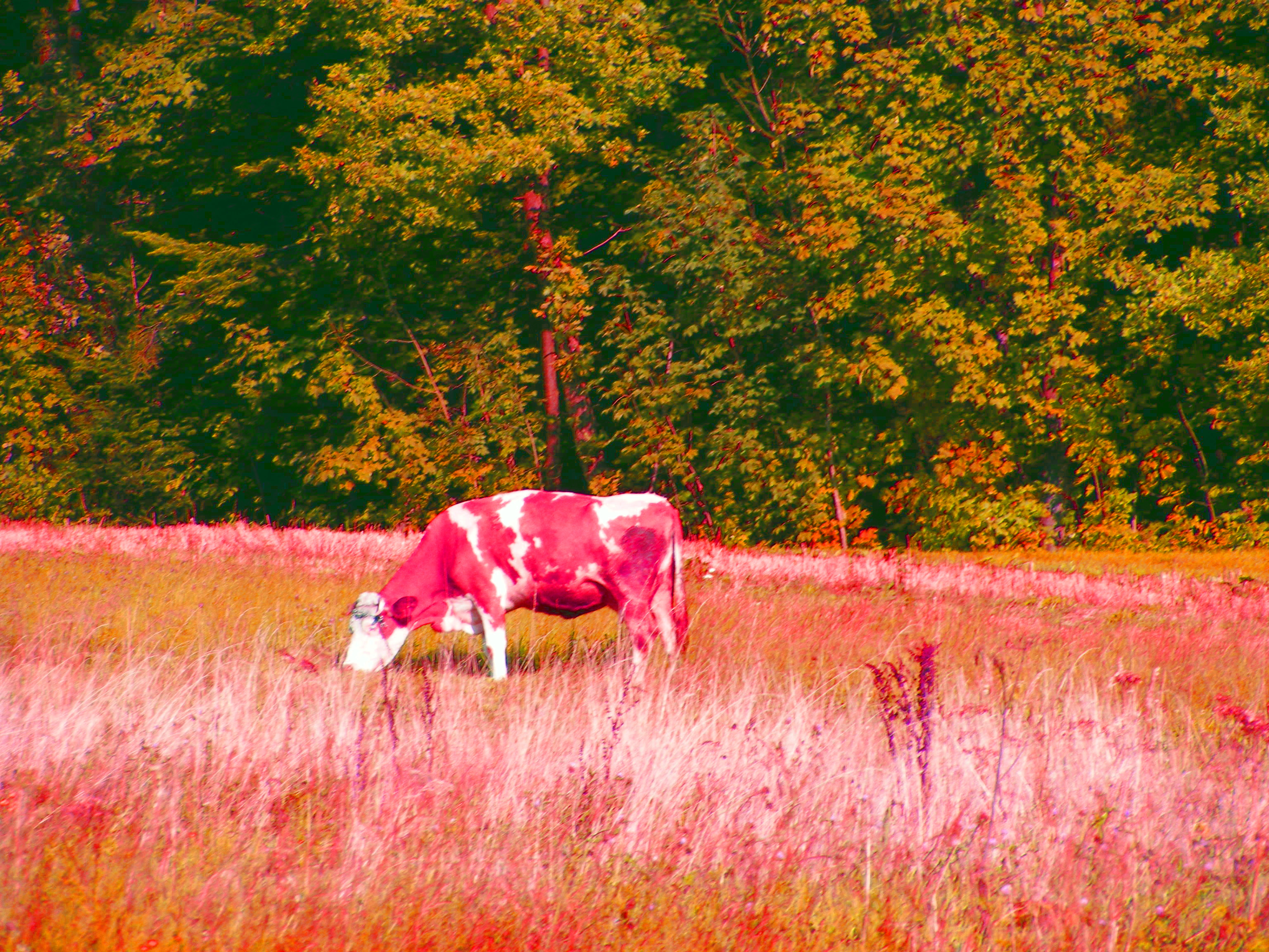 To zdjęcie zostało wykonane przez Mamę w naszej sielankowej, wiejskiej okolicy w gorącym i słonecznym lipcu 1973 roku. Był to prawdziwie lampowy miesiąc, jakie po 2006 roku już nie występują - tylko epizodycznie, ale nawet w sierpniu 2015 taki błękit nie zdarzał się na codzień. Świeciło Słońce, było gorąco, pięknie... W ogóle 1973 rok był cudowny. Miał dwie bardzo mroźne zimy z półmetrowymi zaspami (jak każda w tych czasach), a prócz tego niezwykle słoneczne i ciepłe lato i zero przymrozków w niepożądanych do tego miesiącach. Teraz to nawet w tym podobno niezwykłym 2018 roku mrozy zdarzają się nawet we wrześniu, a i czerwiec potrafi się do tego zbliżyć.