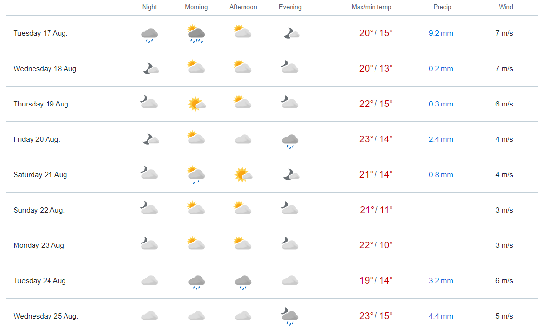 Prognozy pogody - Kontynuacja chłodnego (łagodnego) sierpnia