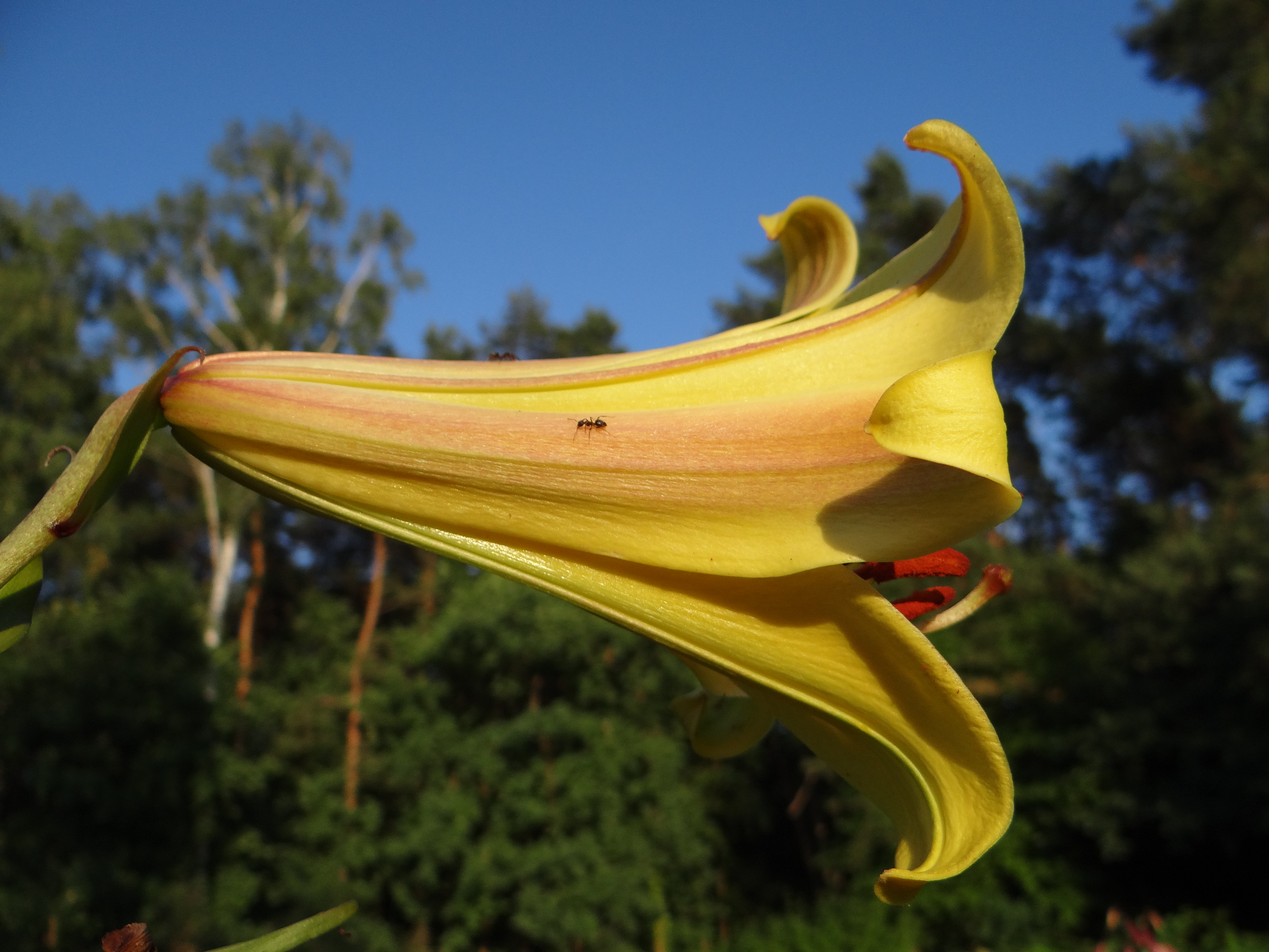 Kwiat lilii z boku + mrówka Lasius niger