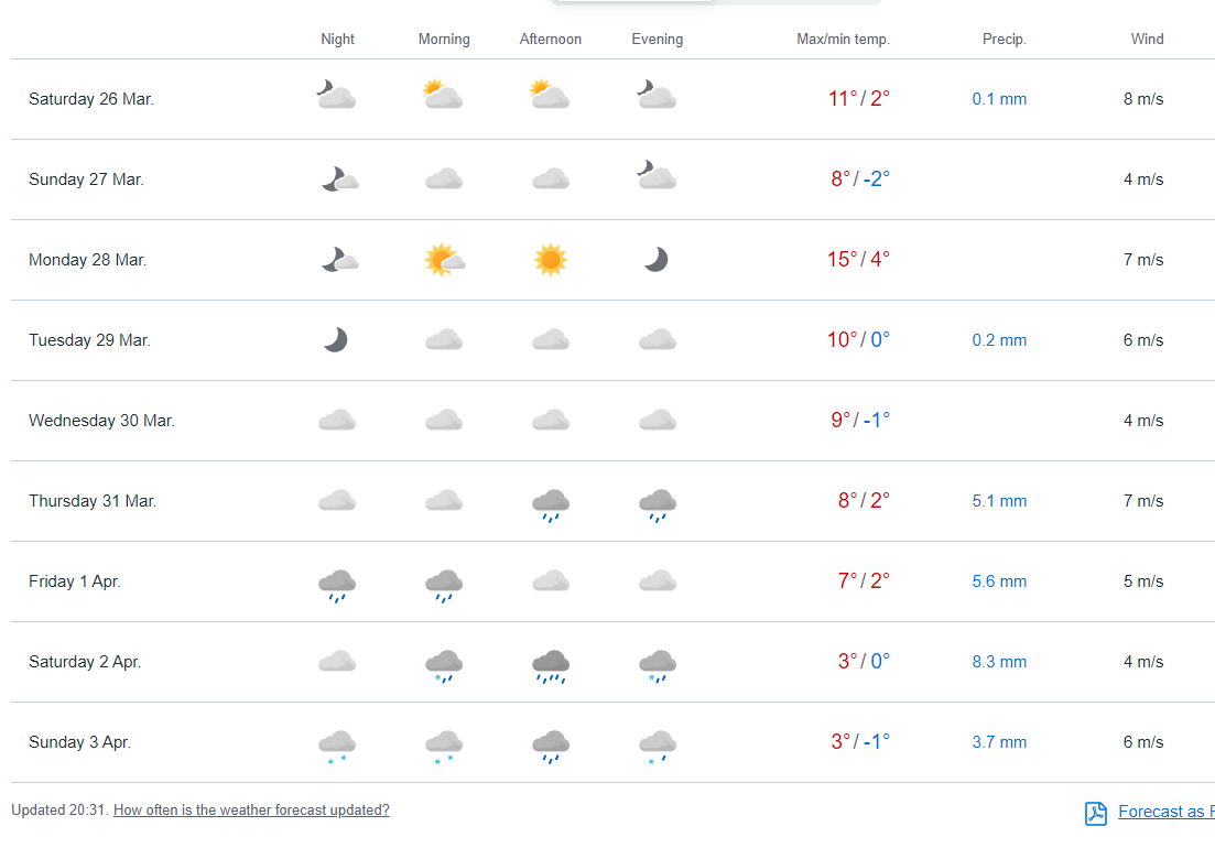 kmroz - 25 Marzec 2022, 23:58 Ej dobra sorry xd To jest ciągle odsłona z 0Z xd Ale no kolejna z 12Z wygląda dość podobnie, no ale na yr.no pewnie koło 3:00 się pojawi to jutro wstawieBartek617 - 26 Marzec 2022, 12:39 Jednak mentalnie nastawiam się, że marzec jeszcze sobie potrwa z 10 dni...