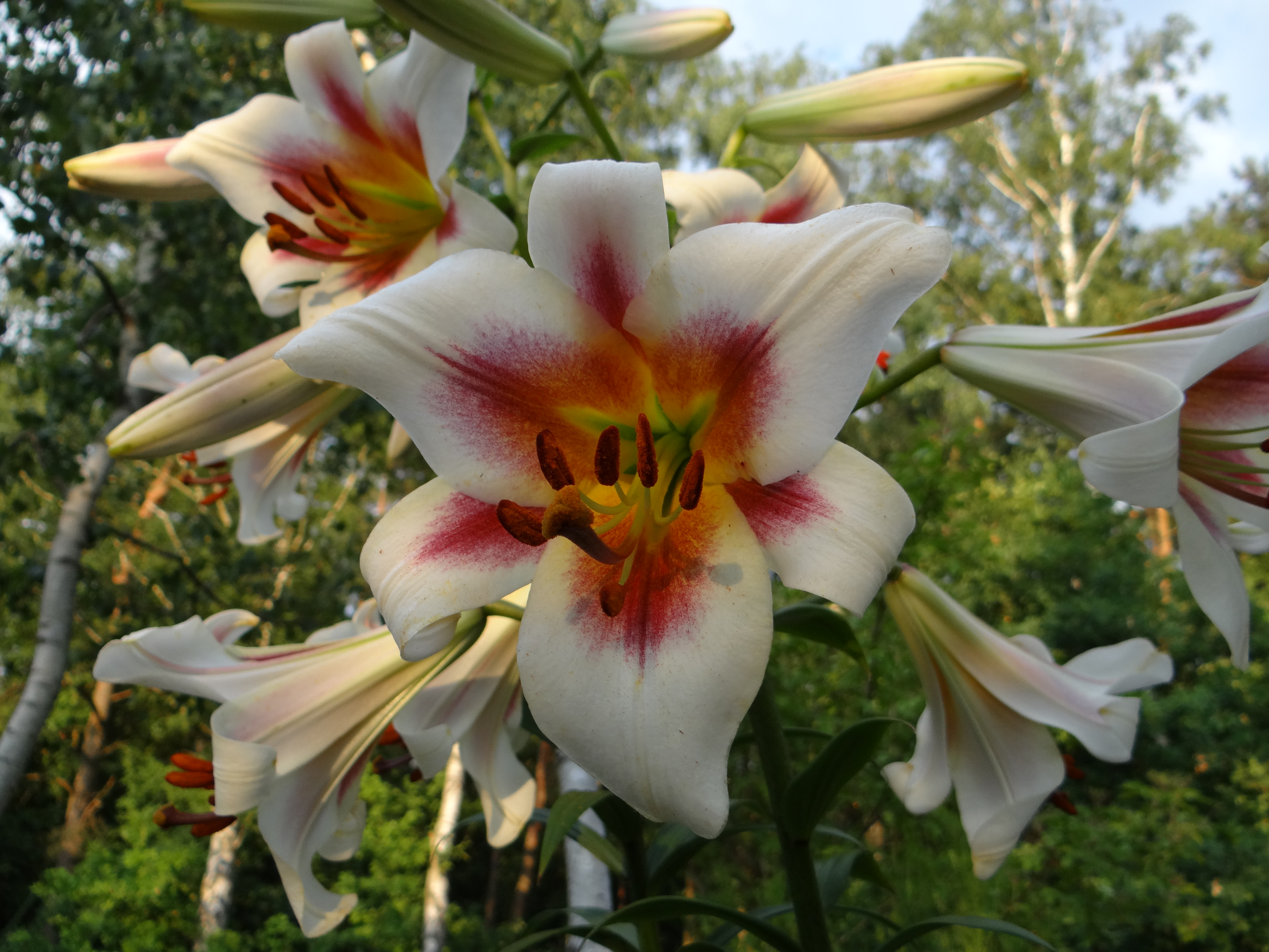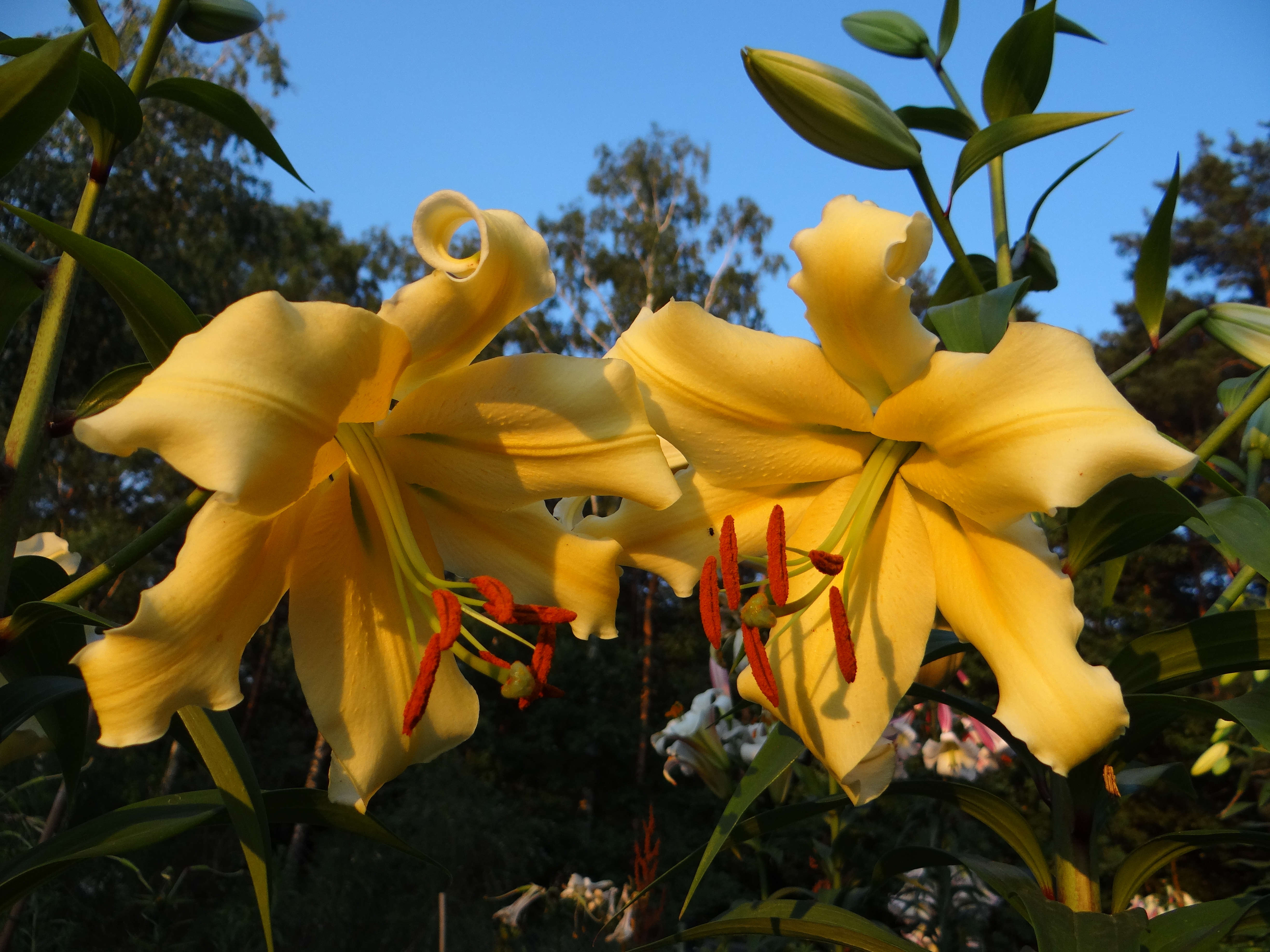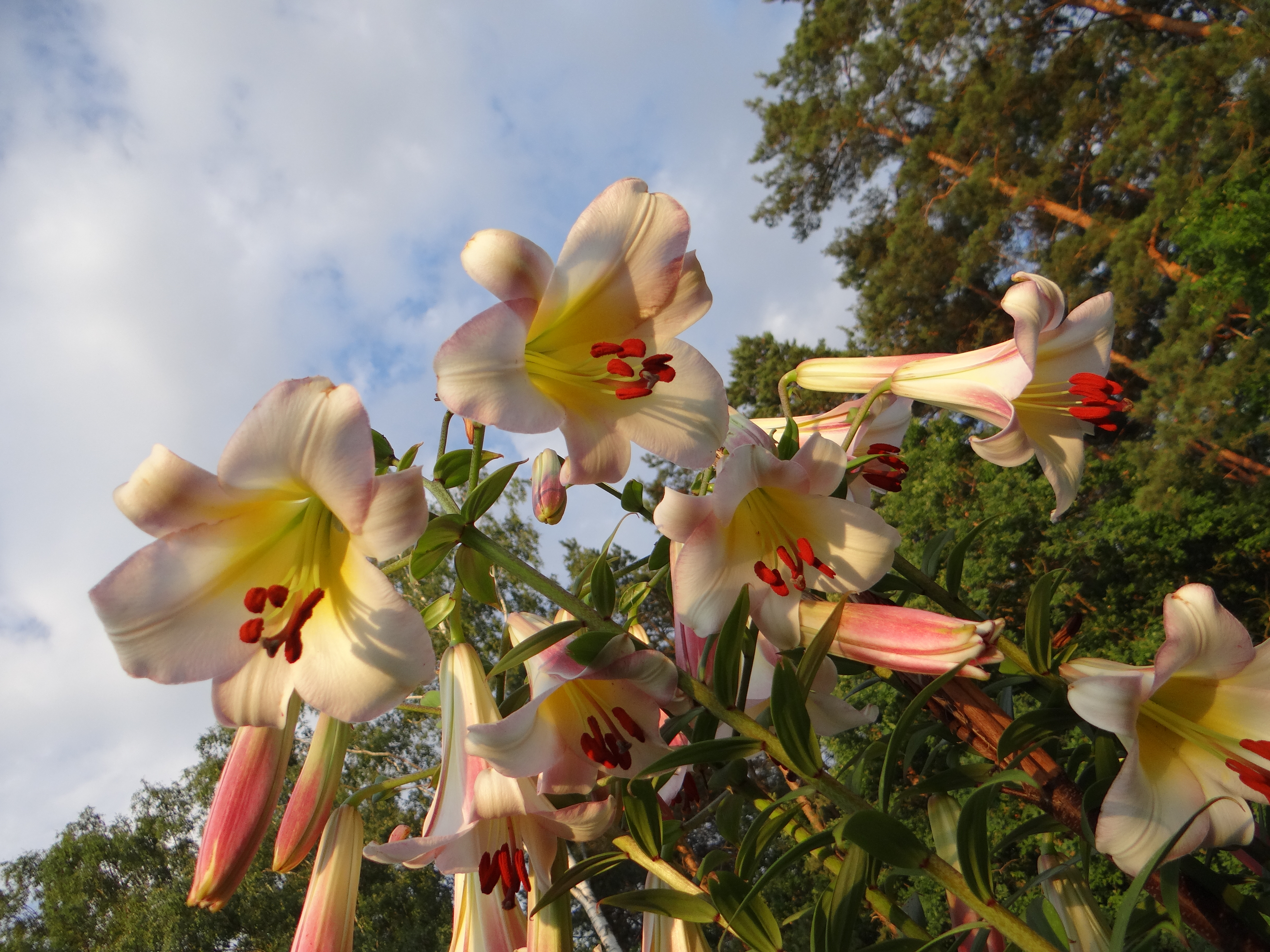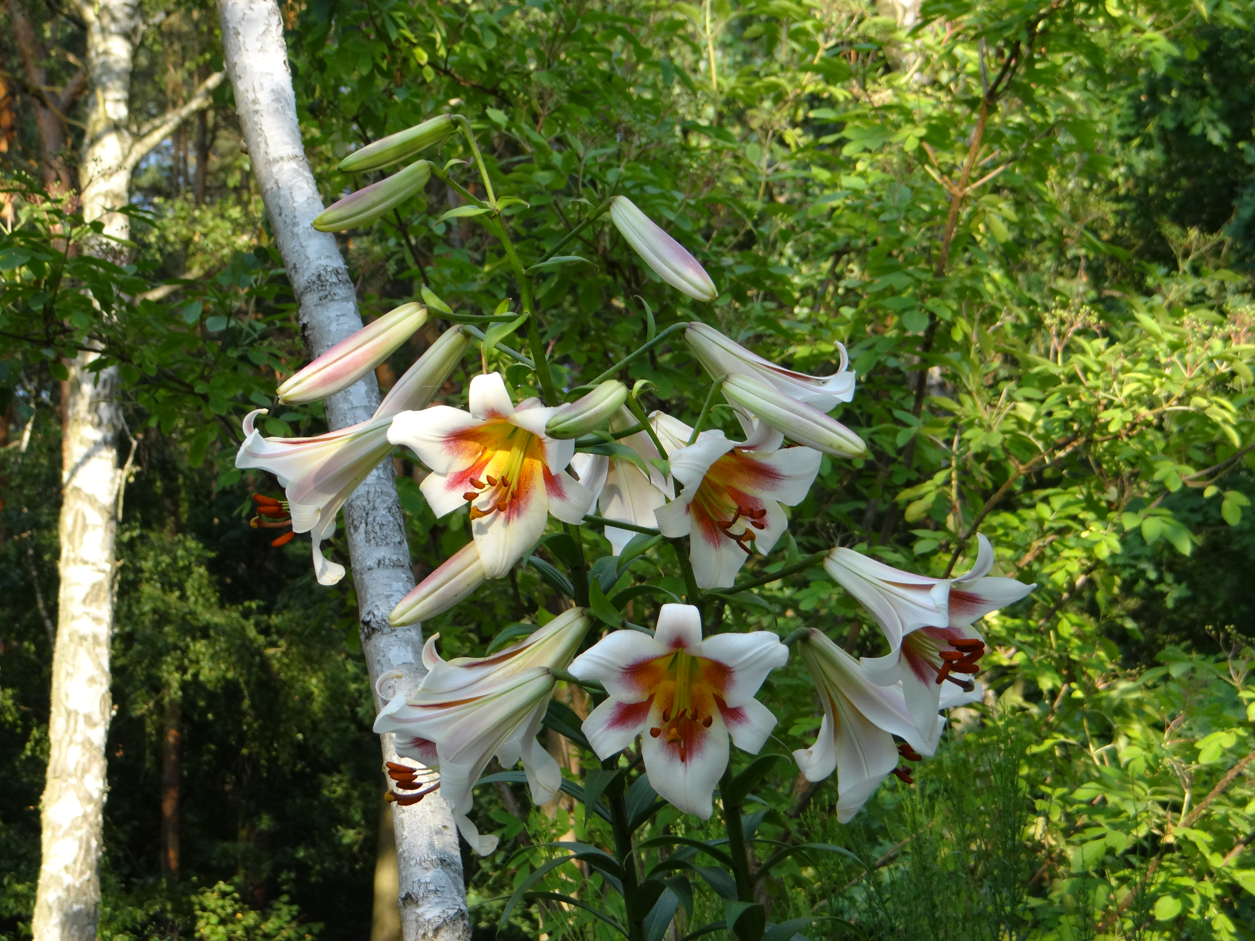 Chyba to nie do końca tak. Na zdjęciu poniżej (dzisiejszym) są 3 lilie identycznej odmiany razem rosnące przy krzaku hortensji. Dwie są tylko nieznacznie niższe niż w ubiegłym roku, a trzecia całkiem skarlała. Te dwie to moje najwyższe lilie.