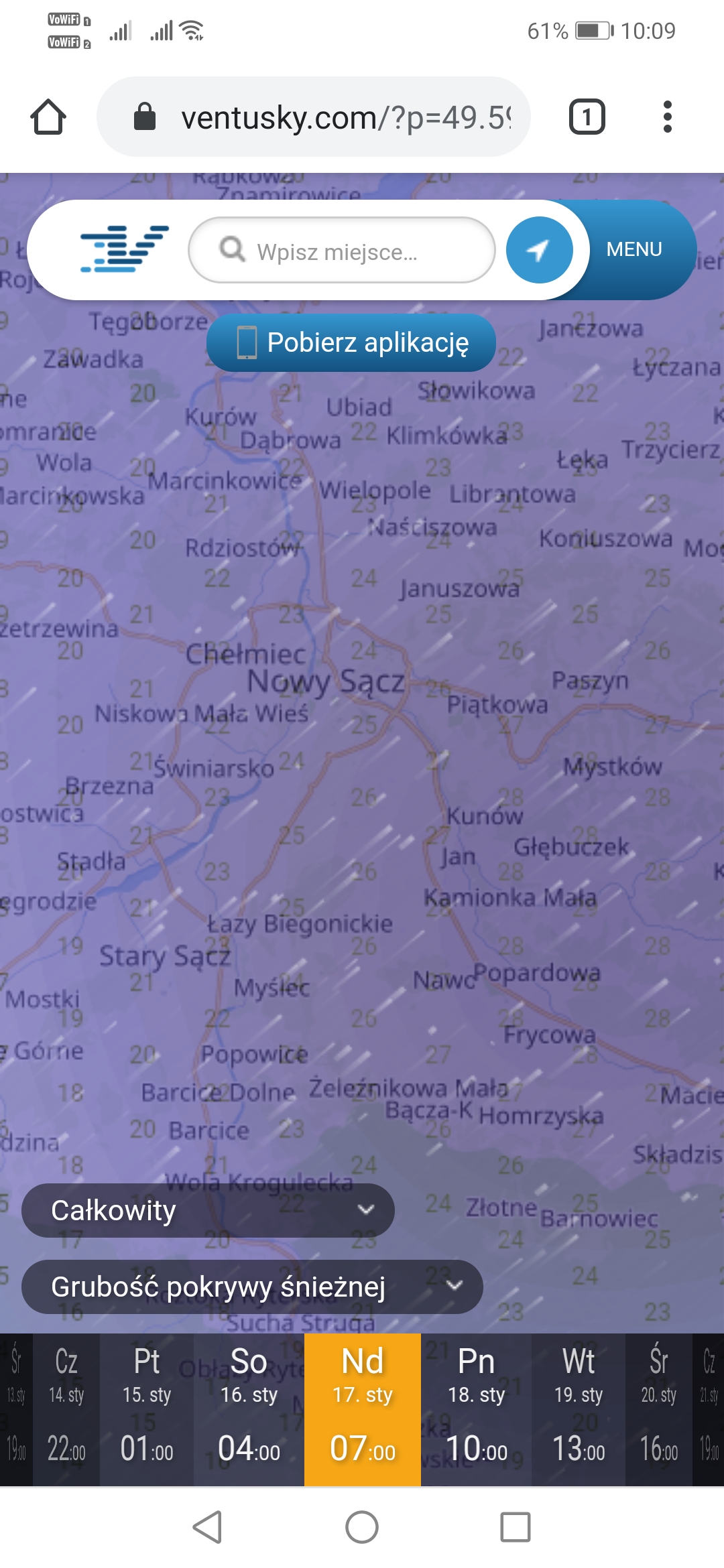 W moim miejscu zamieszkania Ventusky widzi 27/28 cm, a to cieszy