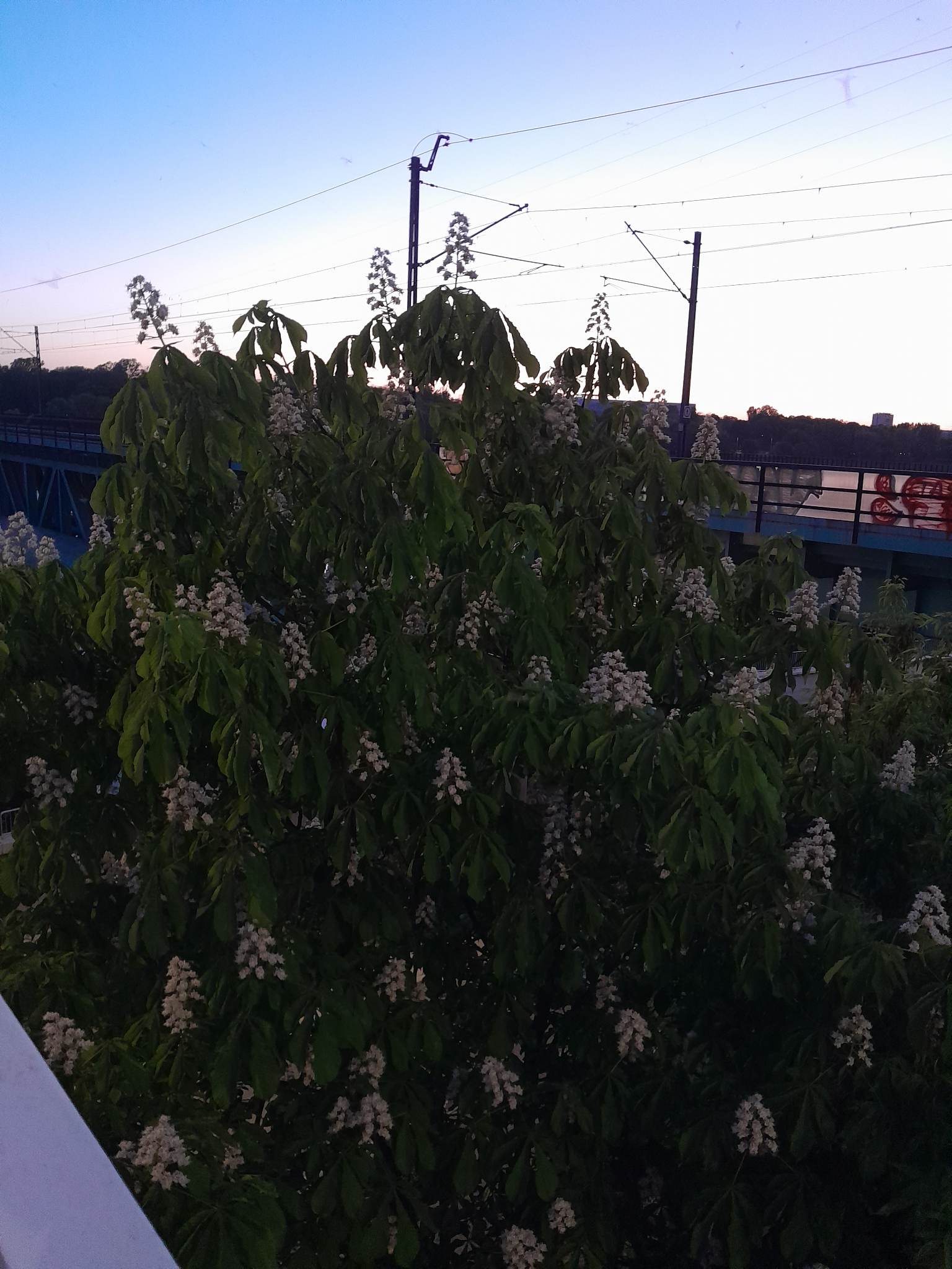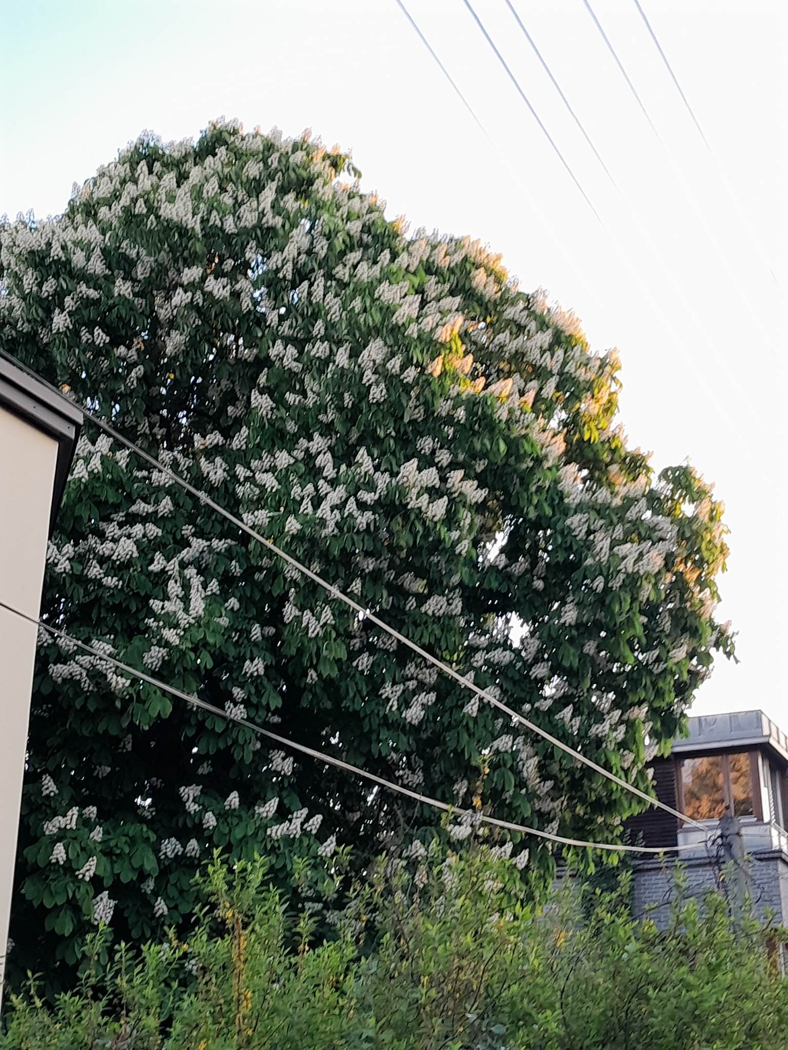 kmroz - 11 Maj 2023, 23:10 Piękny kasztanowiec na skrzyżowaniu Milanowskiej i Tomnickiej.