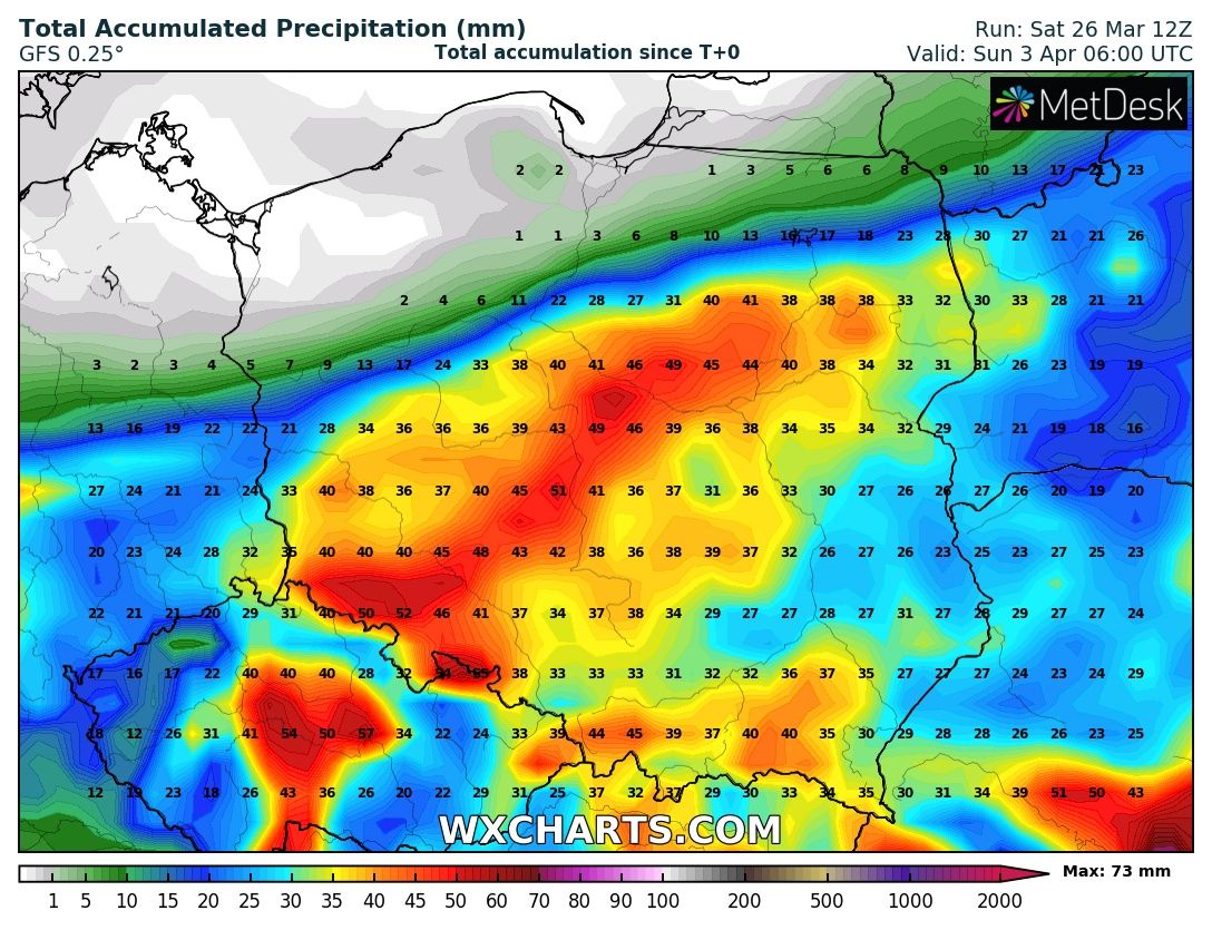kmroz - 26 Marzec 2022, 14:25 No i kolejna prognoza, z jednej strony lipa, bo zabrała opady z 30-31.03 (są one jednak niedaleko na południe, już w regionie Radomia), ale z drugiej brak dwucyfrowych tmax i k*rwy od 29.03 do 2.04, no i docelowo jednak biała magia 2.04 - bardzo cieszą. Tylko zabrać tę dziwkę z 3.04