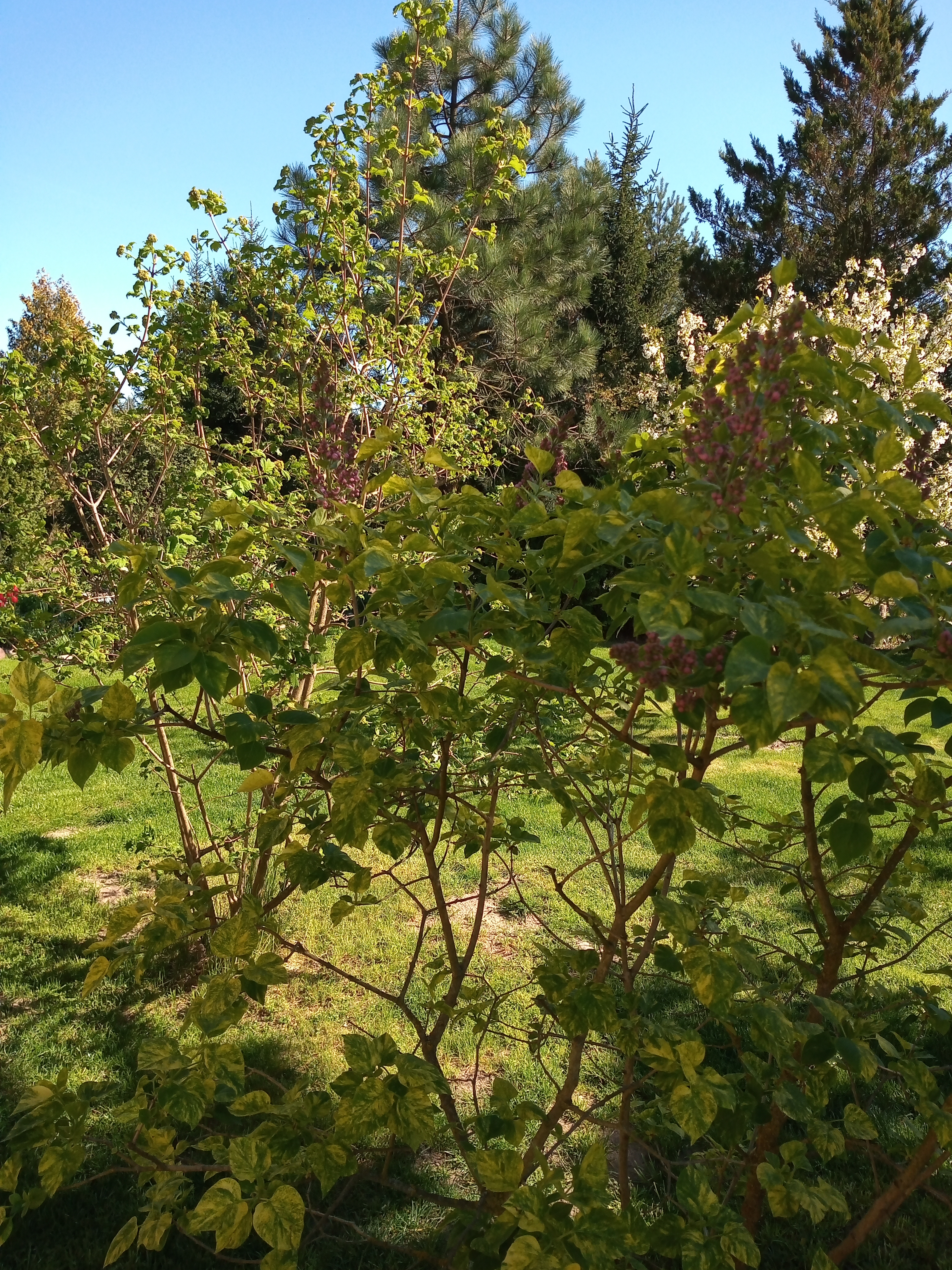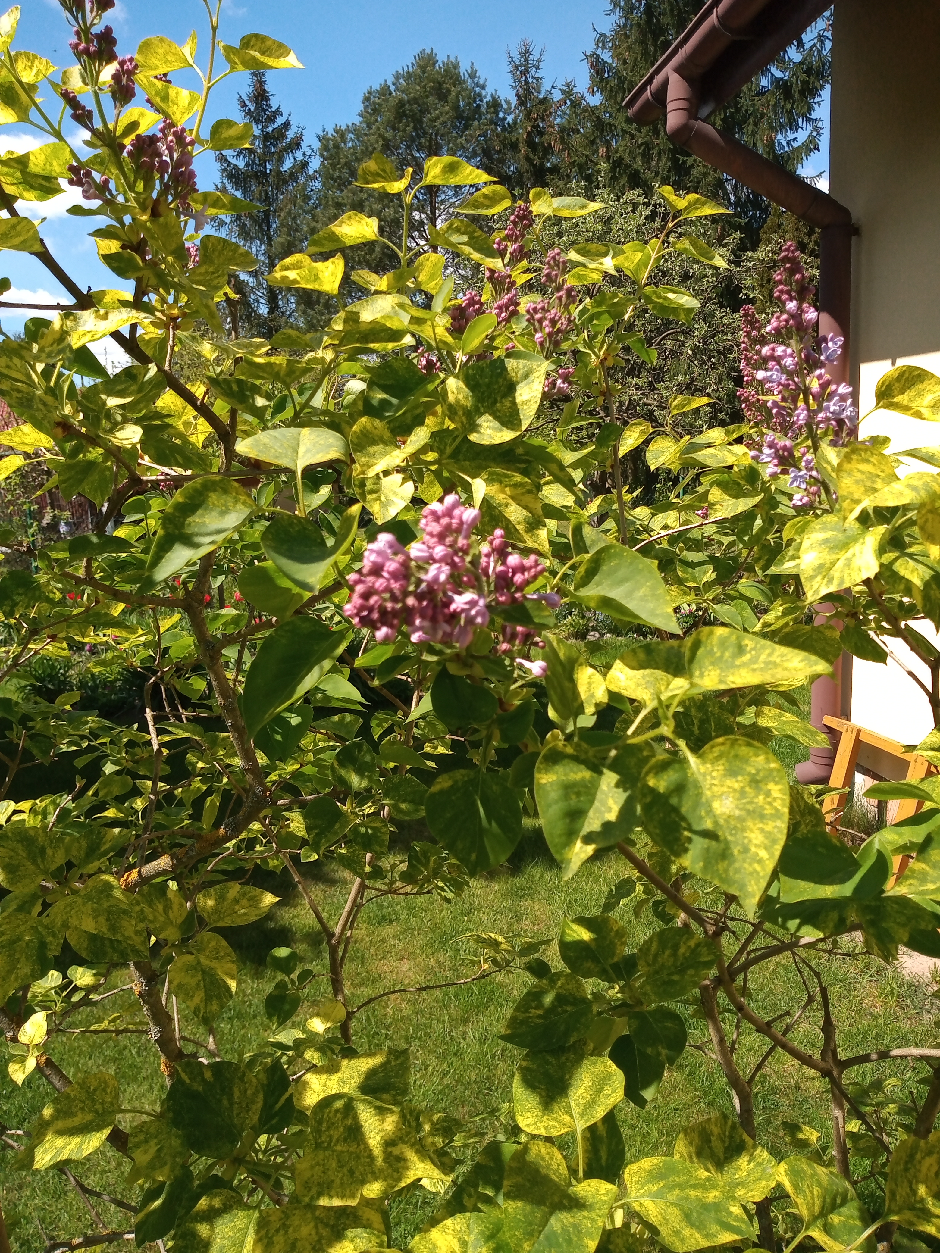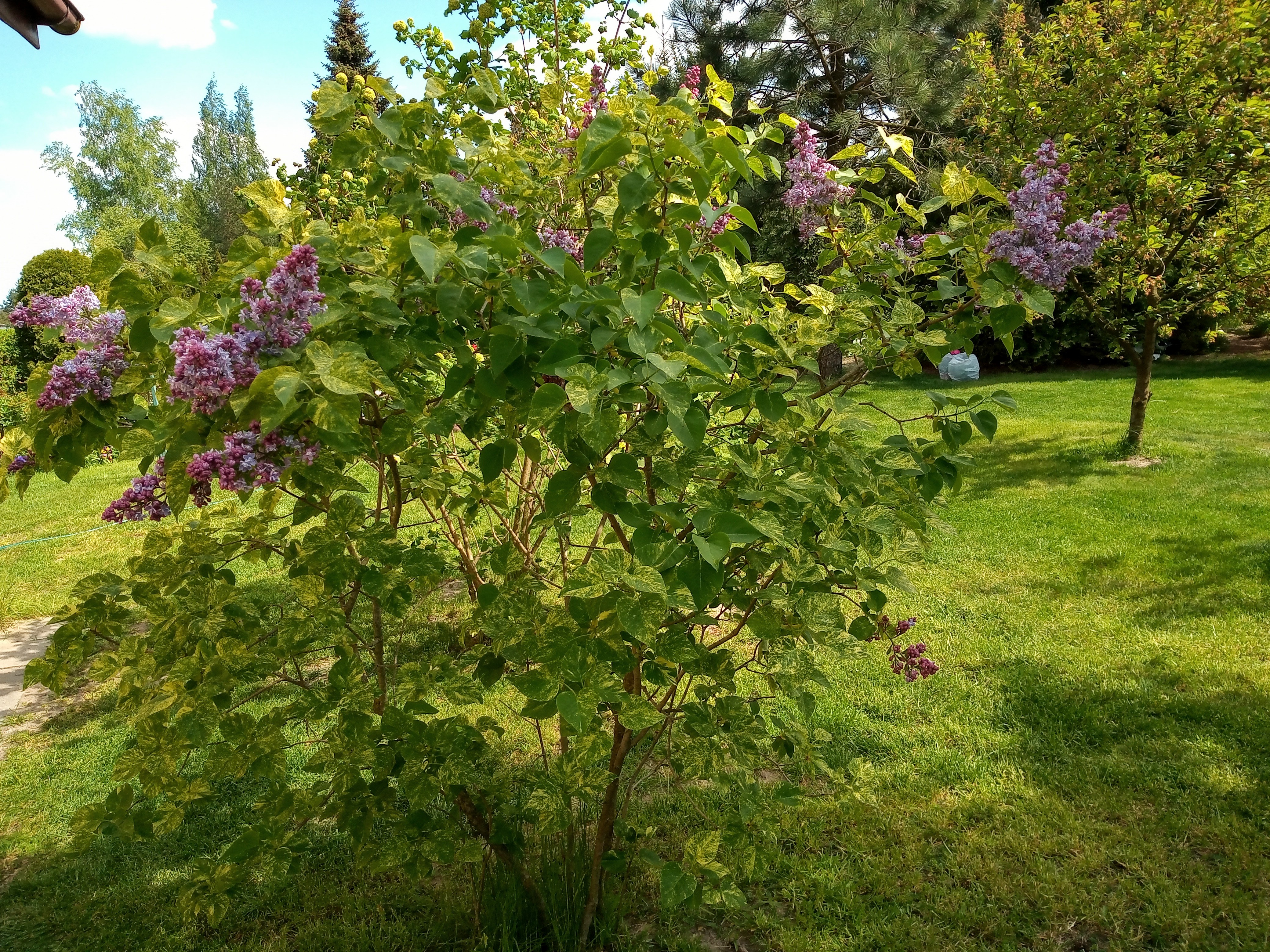 Bez-lilak 'Aucubaefolia' w pełnym rozkwicie.. Pachnie