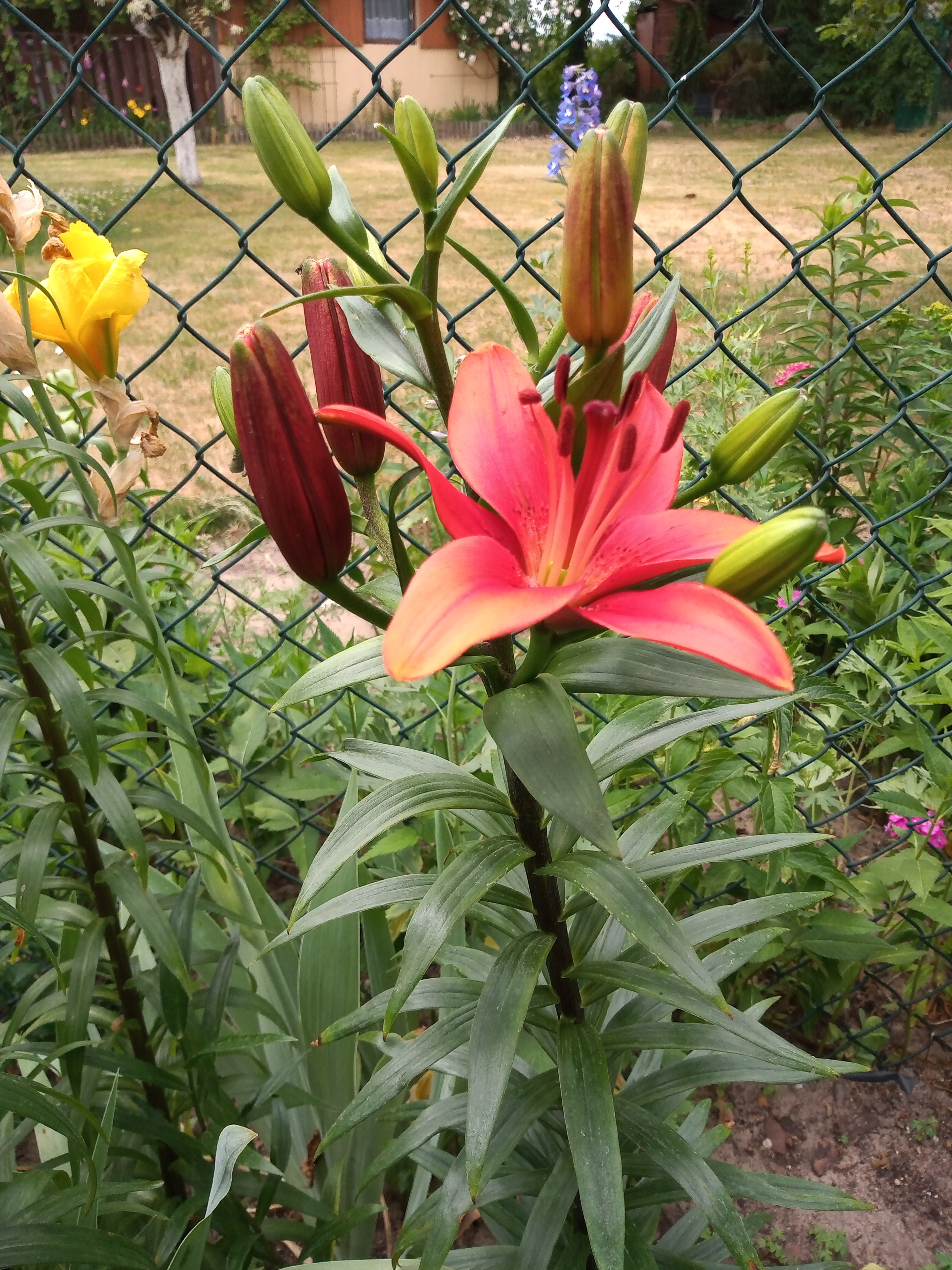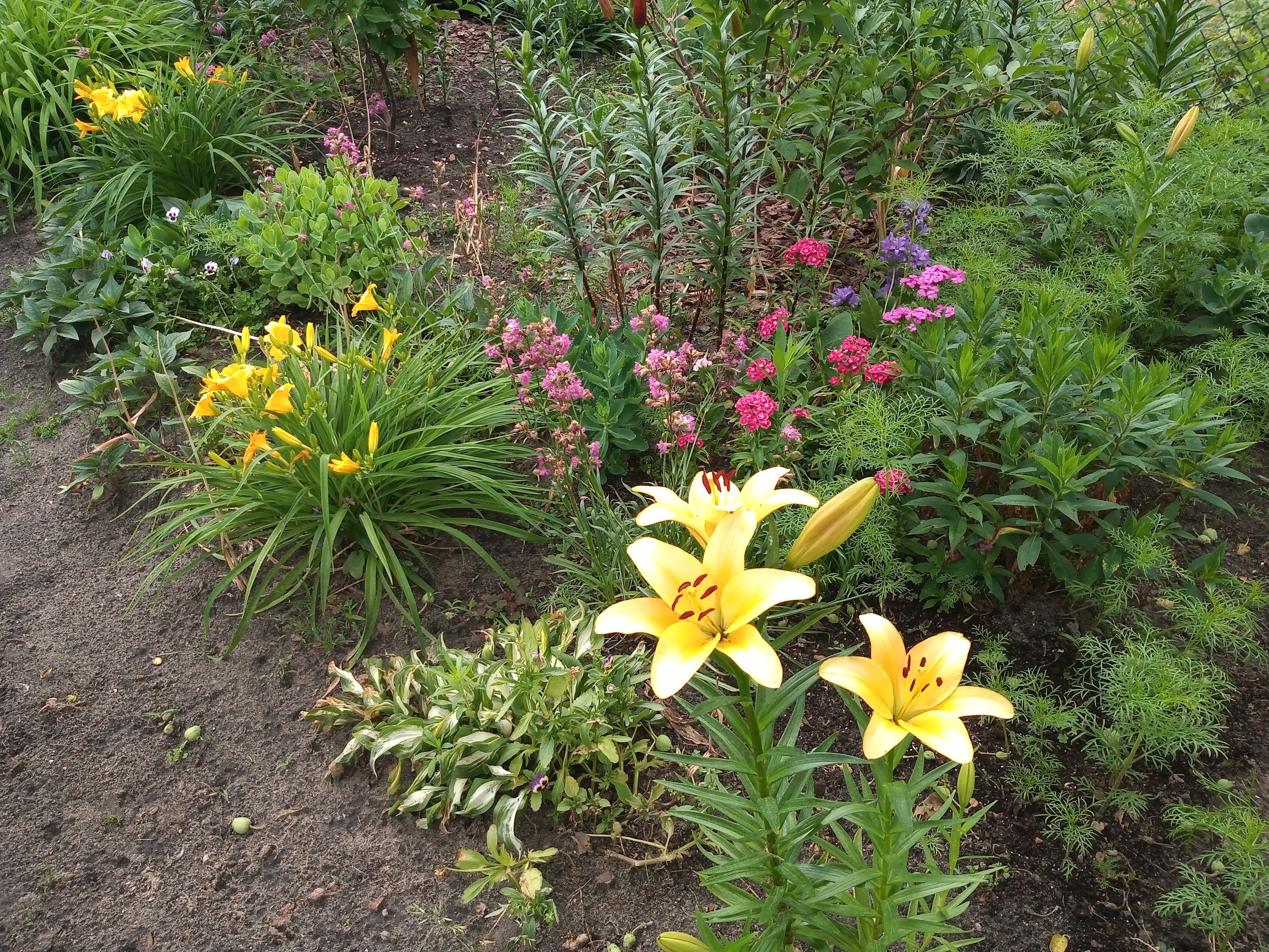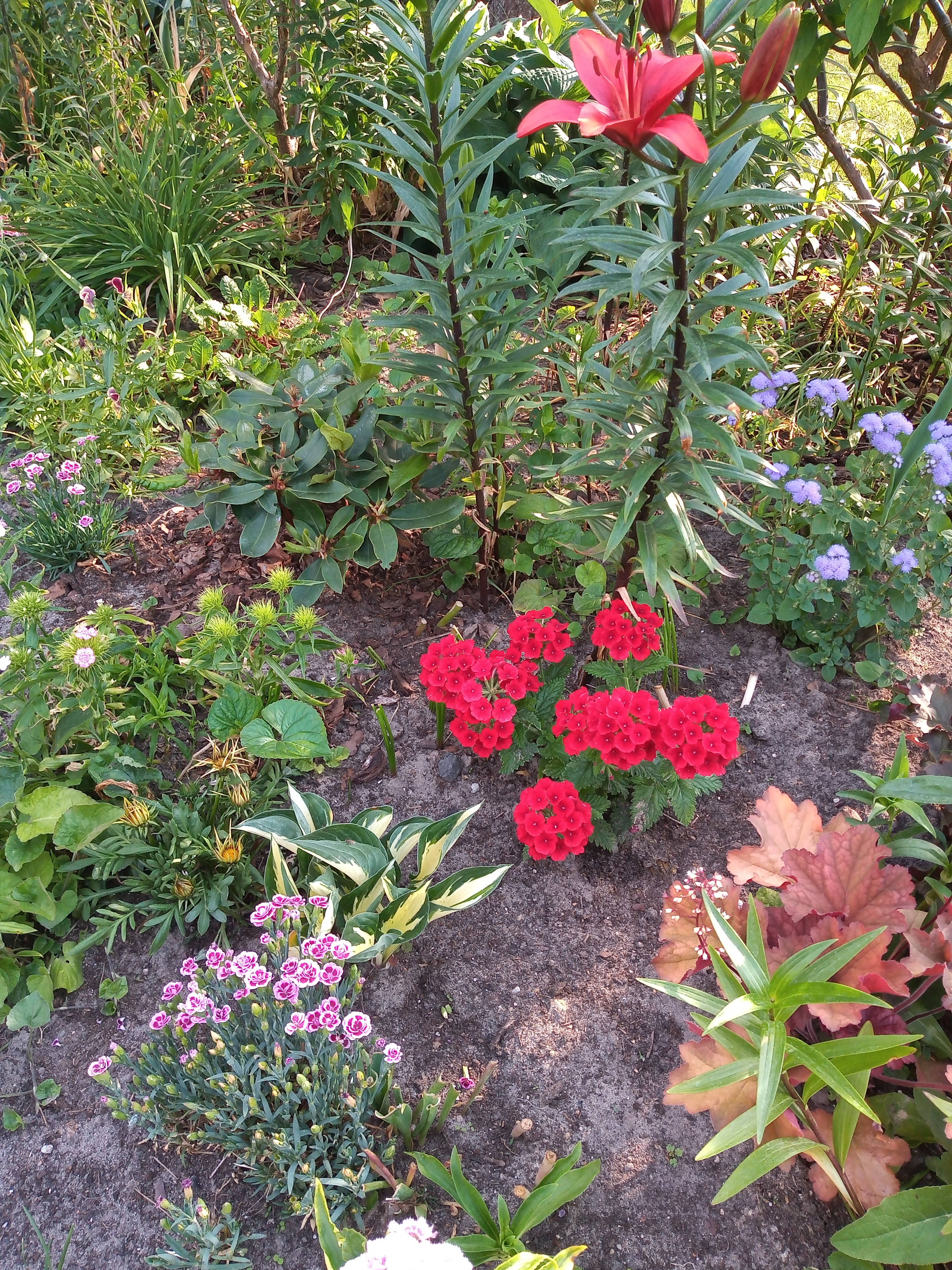 Goździk, werbena, oraz pierwsza lilia która rozkwitła tej wiosny. Także inne kwiatki.
