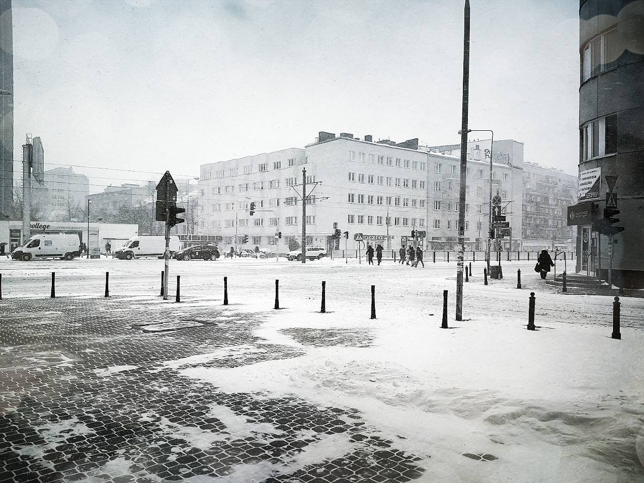 PiotrNS - 13 Grudzień 2021, 12:11 Kiedyś to byli drogowcy, teraz już nie ma drogowców. A zdjęcie całkiem fajnie oddaje dawne zimy, nawet to widoczne białe Volvo nie razi, bo w sumie samochody tej marki to i pół wieku temu były konstruowane w dość podobnych kształtach, jedynie zamiast tych samochodów dostawczych przydałyby się Żuki A ten napis na budynku po lewej stronie i szyld poczty to taki wręcz vintage, pasuje do lat 70 kmroz - 13 Grudzień 2021, 12:20 Ogólnie ta subdzielnica bardzo pasuje do lat 70-tych.