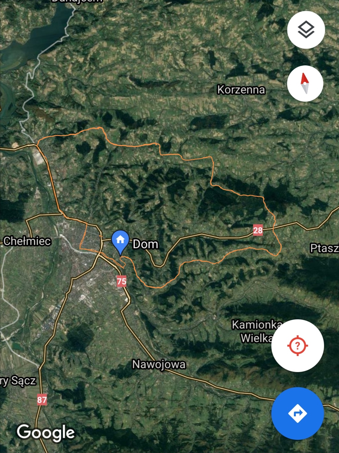 Z Jodłowej Góry ładnie było widać Nowy Sącz, który rzadko oglądałem od tej strony. Po chwili odpoczynku ruszyłem dalej, w kierunku asfaltu. Odbiłem lekko na północ, do Koniuszowej. Dalej lekkim podjazdem, a następnie bardziej z górki przejechałem przez Librantową i Klimkówkę, a stamtąd już do domu.