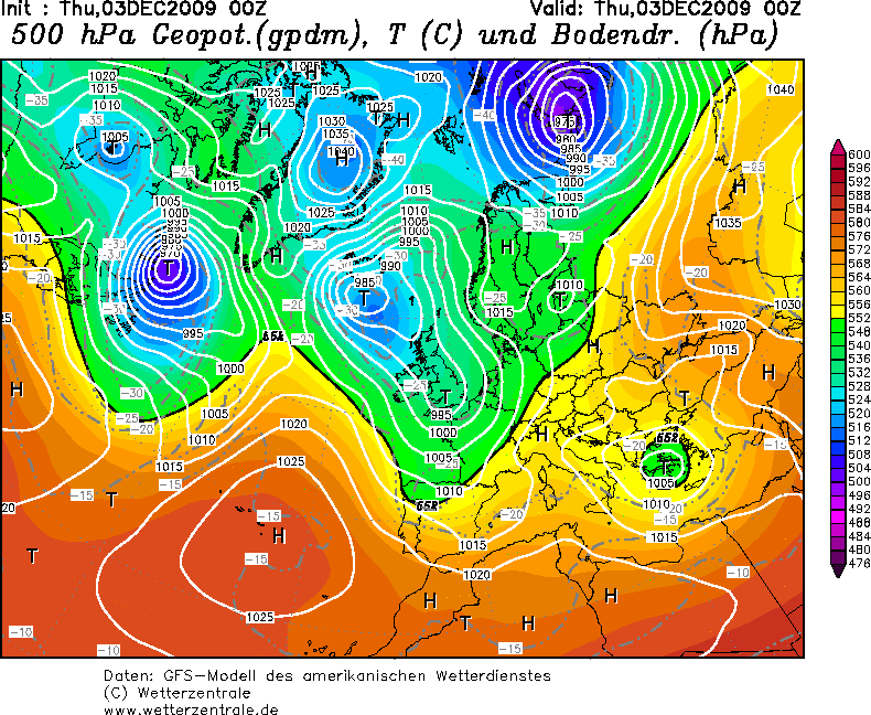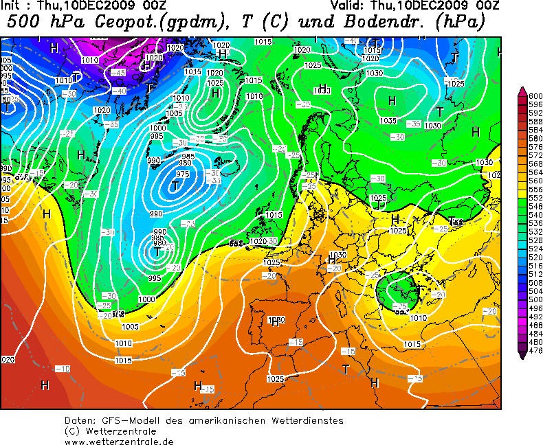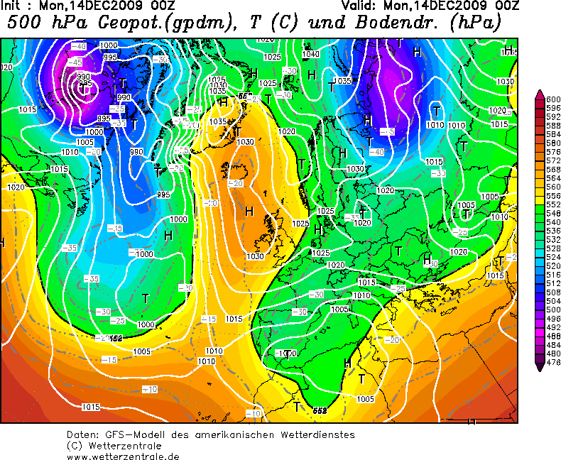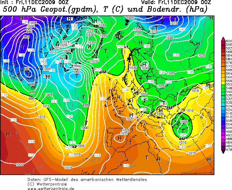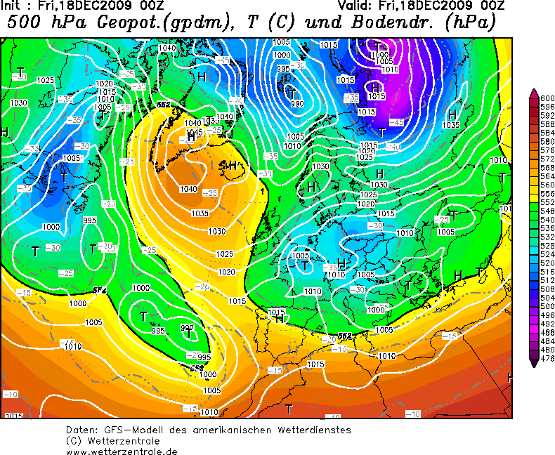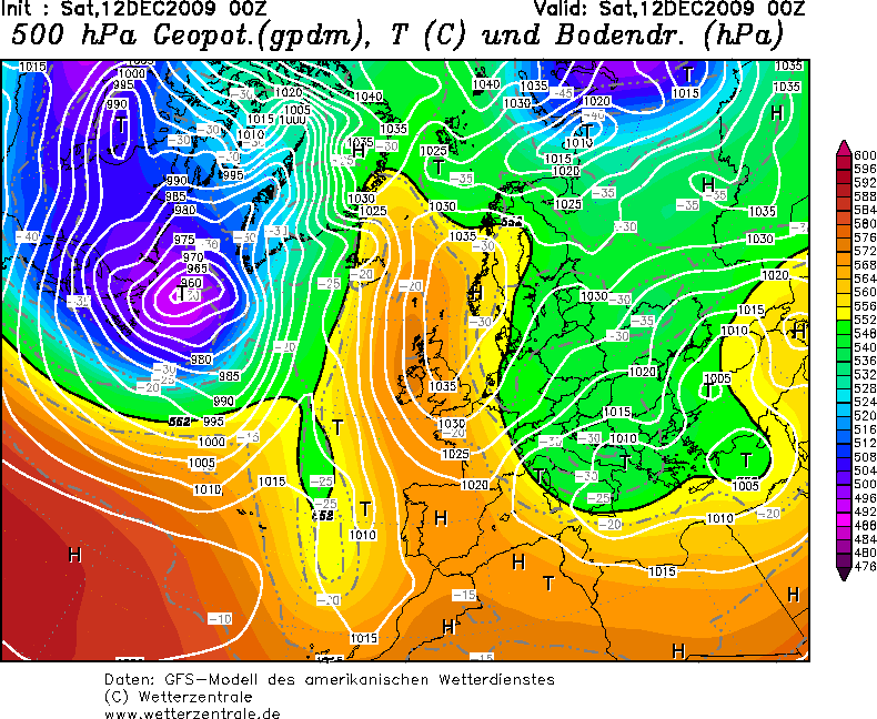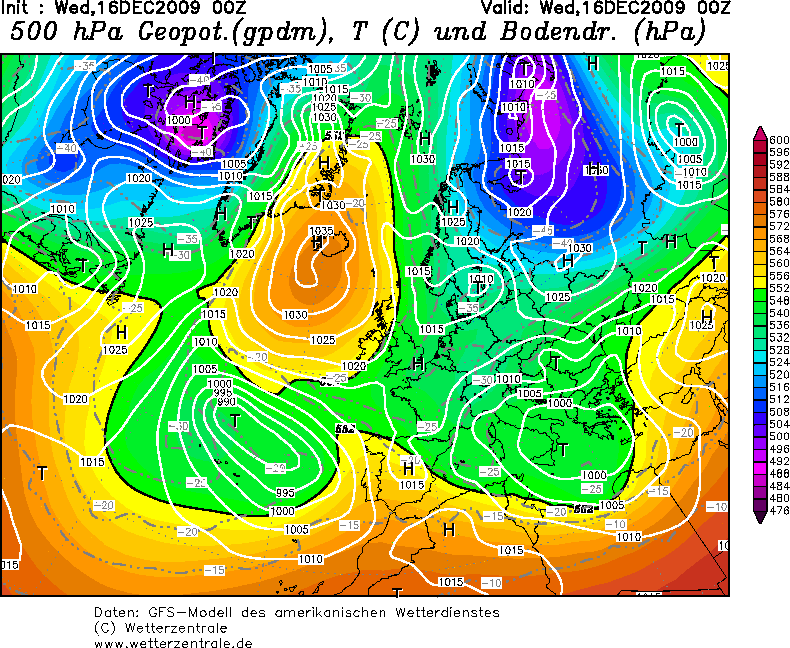 Aby jednak doszło do realnej zimy w Polsce, a nie tylko suchego i niezbyt mocnego mrozu, to musiała się zadziać jeszcze jedna oczywista rzecz - musiał ten wyż się odciąć na dobre od zaciągu z S, który nadal był sporym ryzykiem, bowiem Morze Śródziemne miało niepokojąco wysoki geopotencjał. Najlepszym sposobem do tego była próba wejścia wyżu śródziemnomorskiego na północ, przy jednoczesnym zaciągnięciu z północy kropli chłodu. Tutaj widać jak bardzo się sytuacja zmieniła w ciągu ledwie 2 dni