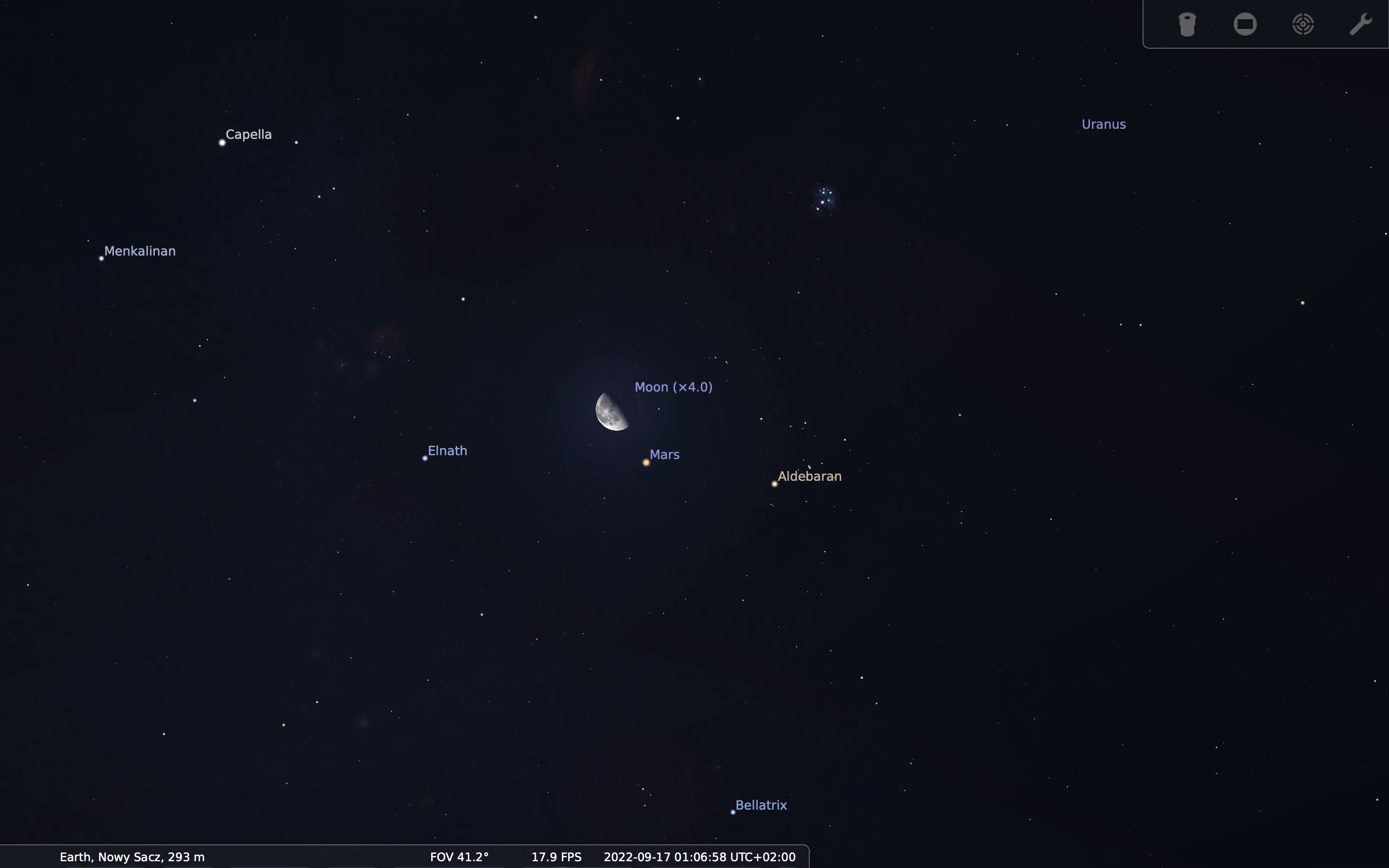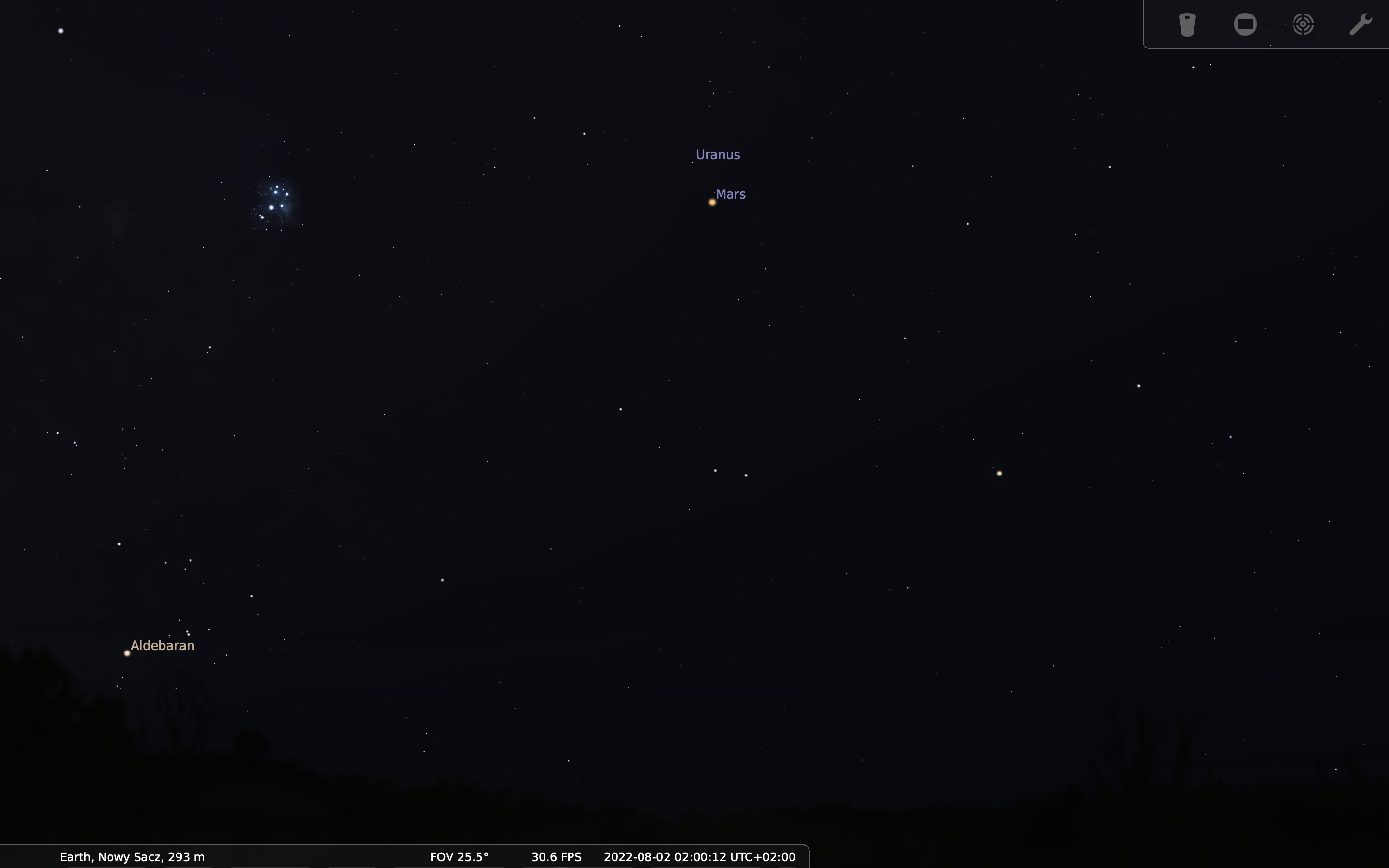 W nocy z 1 na 2 sierpnia przez znaczną część nocy istnieć będą fantastyczne warunki do obserwacji Urana. Planeta będzie bardzo łatwa do zlokalizowania, bowiem znajdzie się na niebie tuż obok jasnego, czerwonego Marsa, trudnego do przeoczenia. Urana dojrzymy przez każdą lornetkę, jednak pod dobrym, bardzo ciemnym niebem możliwe będzie podjęcie próby zauważenia siódmej planety Układu Słonecznego gołym okiem. Niewątpliwie sprzyjającą okolicznością będzie bowiem brak jasnego Księżyca. Obserwacje najlepiej zaplanować po godzinie 1:00, kiedy planety będą już wysoko nad horyzontem - i tak korzystny stan rzeczy potrwa do rana.