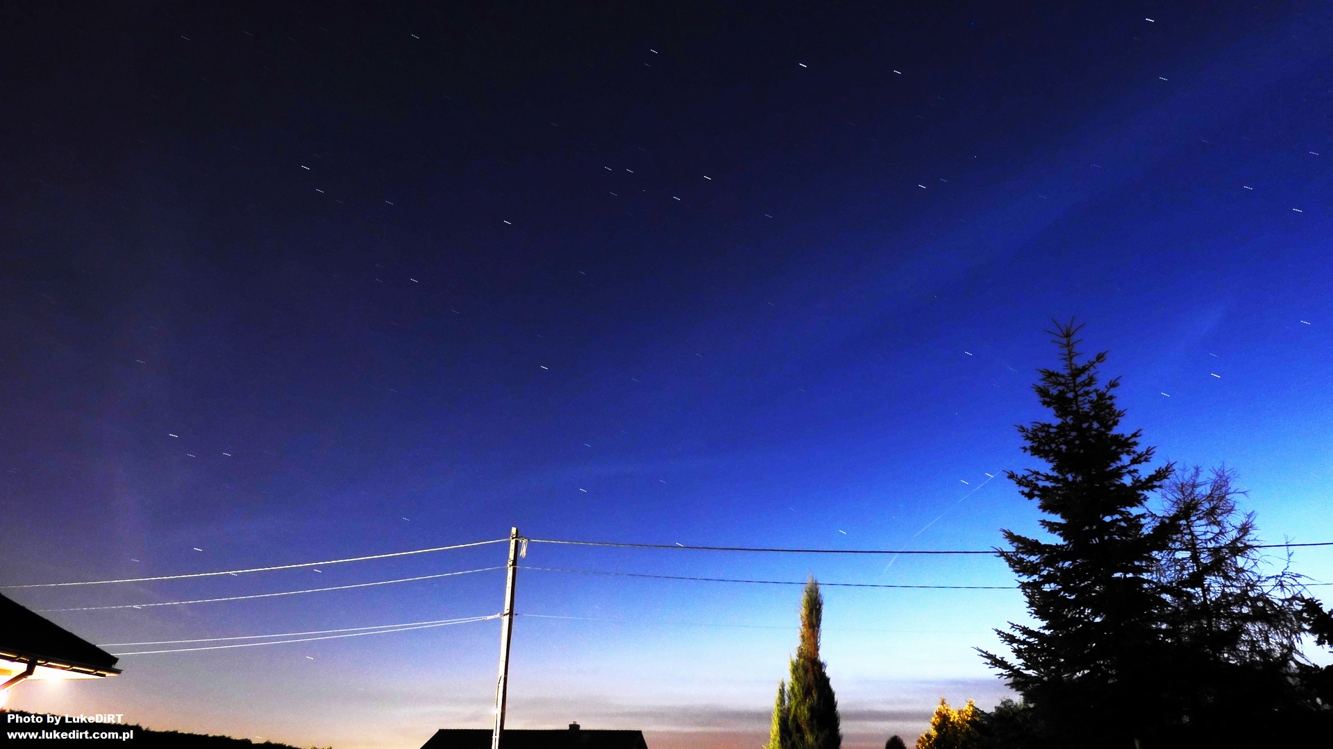 W sobotę byłem na działce i próbowałem zrobić zdjęcie omawianej komety. Ustawiłem aparat na południowy zachód oraz włączyłem długi czas naświetlania, ale chyba nic z tego...