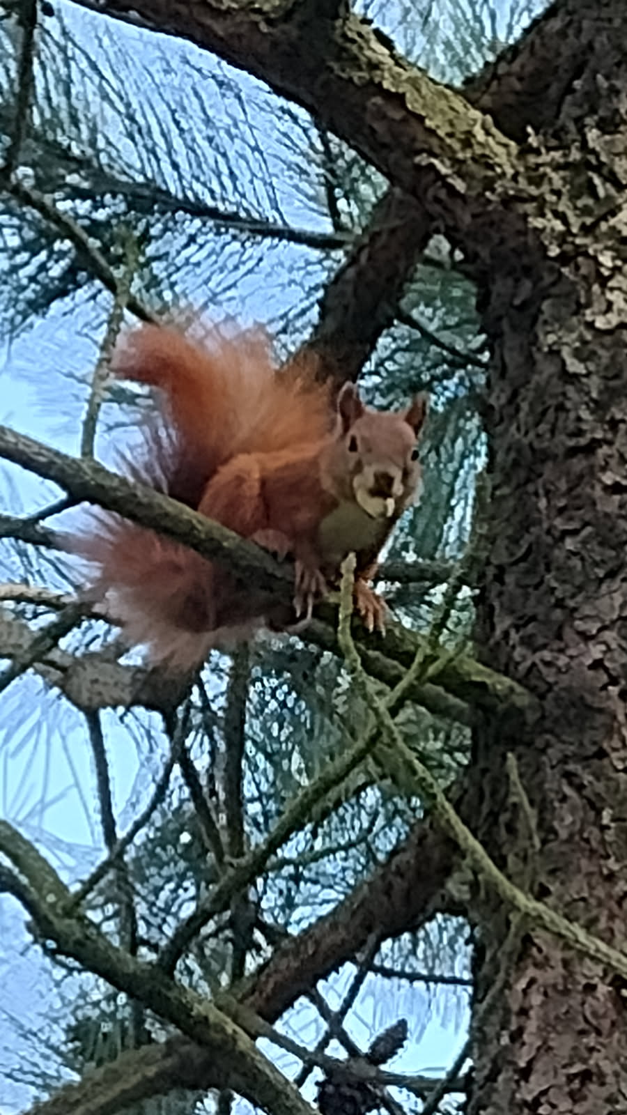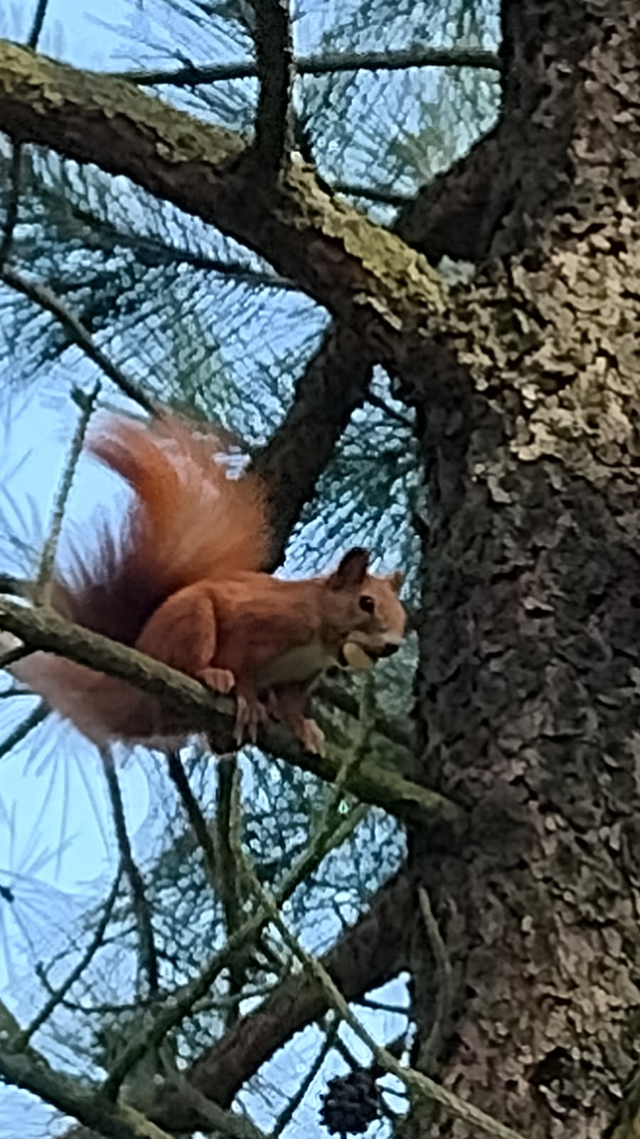 Wiewiórka na działce robi sobie zimową spiżarnię.