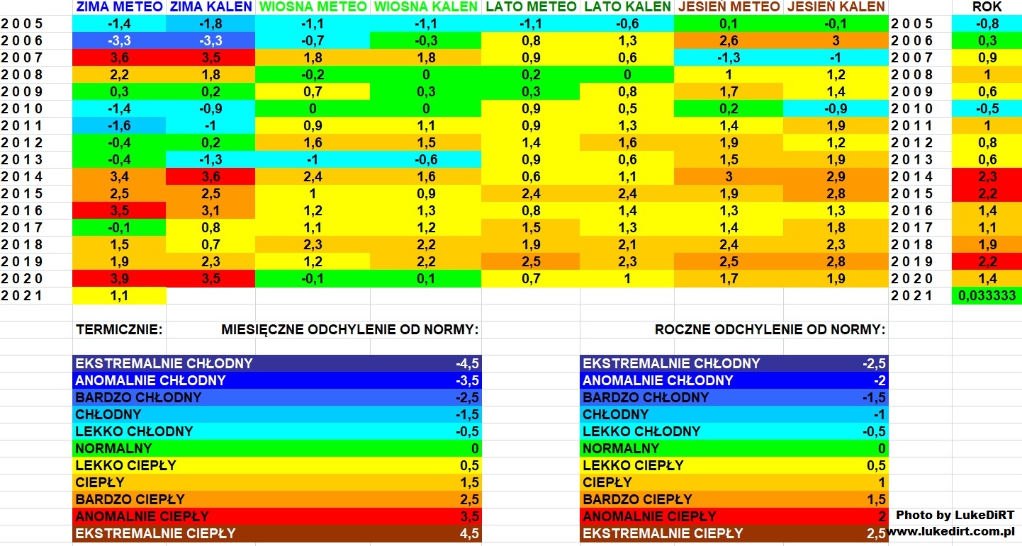 A oto moja własna klasyfikacja termiczna dla Gliwic dla pór roku oraz całych roczników.