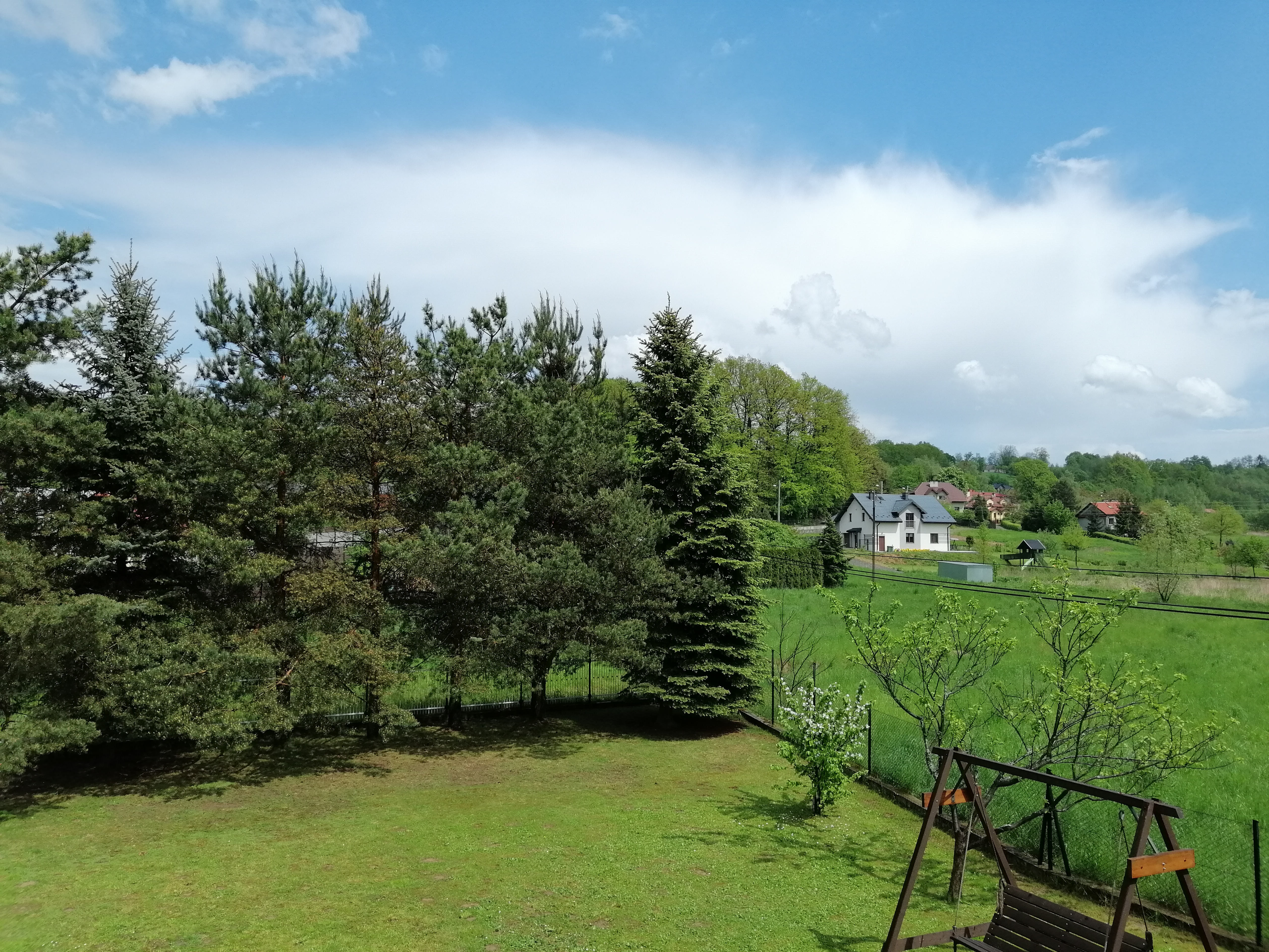 A to dlatego, że nie była to normalna wiosenna burza zwyczajnie urozmaicająca pogodę. To burza, która zapoczątkowała coś, o czym naprawdę chciałoby się zapomnieć. Stało się coś złego. Stojąc na zewnątrz i obserwując oddalające się wyładowania, czułem jak szybko robi się zimno. W godzinę wartości na termometrach zeszły z 21 do 14 stopni. Deszcz się wzmógł, a ja musiałem udać się z powrotem do Krakowa, jak się okazało nie na długo. Tam też padało choć nie aż tak intensywnie. Atmosfera tego wieczora była jednak iście grobowa. Po raz kolejny kurtka w maju. Do tego trwający remont ulicy przy której mieszkam sprawił, że z dworca nie mogłem dojechać do swojego mieszkania komunikacją miejską ani żadnym innym środkiem transportu, lecz musiałem pójść na nogach. Wszystko było rozkopane, chodnika brak, konieczność przechodzenia kilka razy na drugą stronę, bo robotnicy porobili sporo dziur... Błota tyle, że się przemoczyłem. Po dojściu na miejsce grzejniki nie grzały, a mi nadal było zimno. I coraz zimniej. Przemokłem i po paru godzinach poczułem jak ubywa mi sił (ogólnie w tym kiepskim roku przyszło na mnie osłabienie formy i często gorzej się czułem; możliwe że też przez to ten czerwiec tak mnie wyczerpał, dopiero w tym roku odbudowałem swoje siły w pełni). Następnego dnia miałem lekką gorączkę i jako że miałem do tej pory komplet obecności na wszystkich zajęciach, w poniedziałek po południu postanowiłem wrócić do domu się podleczyć. Gdybym nie podjął takiej decyzji, ominąłby mnie największy zimny wybryk natury, jaki nastąpił za mojego życia. I jedyny dzień, kiedy napisałem na Meteomodelu post caps lockiem. Było bardzo zimno i dopiero 16 maja wróciła majowa wiosna. 17-ty dzień miesiąca, kiedy miałem szczęście i okazję podejść do ważnego przedterminu, to już rozkwit. Ubytki w drzewach wypełniały się, a ja nareszcie mogłem cieszyć się ciepłem, takim prawdziwym i niezwiązanym z suszą. W tym dziwnym czasie dostałem od pogody niezwykły prezent - w sam raz na urodziny. Dzień 19 maja, to chyba najlepsze odzwierciedlenie mazowieckiego czasu euforii w moich warunkach, pogoda jak z marzeń. Piękny dzień rozpoczął się wręcz krystalicznie czystym niebem, tak czystym że nie widziałem podobnego od 20 kwietnia. Temperatura wartko rosła i już o 10-tej sięgała 20 stopni. W południe była już blisko 25, kiedy coś zaczęło się dziać. Niebo pokryły chmury. Na początku nie było wiadomo co oznaczają, ale tuż przed 13-tą wszystko się wyjaśniło. Zagrzmiało. Naprawdę piękny prezent od natury na urodziny :D Konwekcyjna komórka nadeszła z południowego-zachodu, tak jak zazwyczaj, jednak na początku tylko straszyła grzmotami, bowiem błyskawic nie było widać. Znikły za dużą szarą strefą - smugą opadową, która o godzinie 13:20 wylała wiadra wody.