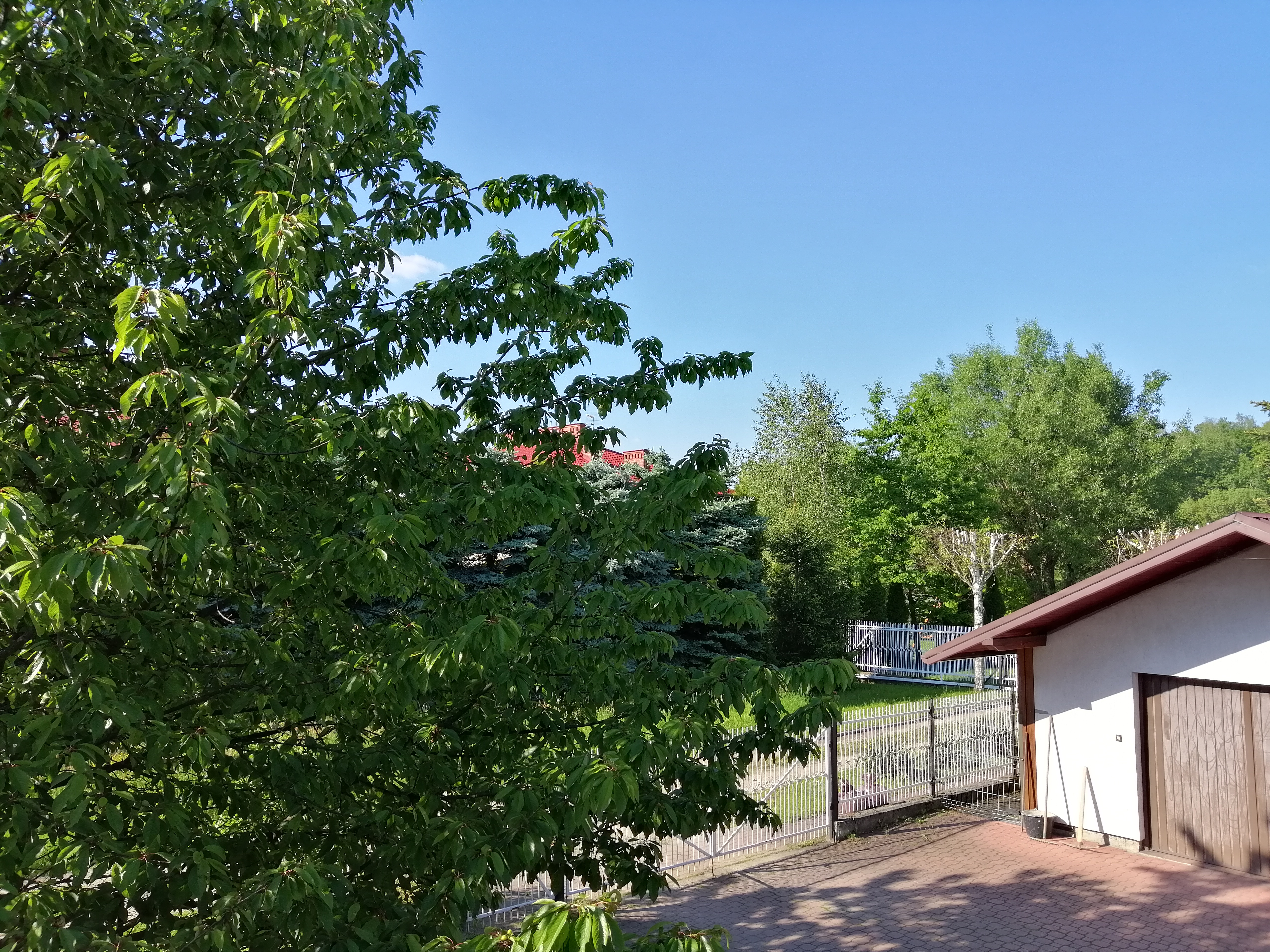 Tak wyglądał świat między godziną 13 a 14. Wyszedłem na chwilę z domu, bo nawet tam nie dało się już wytrzymać. Ten poniedziałek nie był już tak idylliczny jak miniona niedziela, bowiem występowało znikome zachmurzenie, wilgotność powietrza była nieco wyższa i cisza na zewnątrz nie była tak absolutna, w końcu to dzień roboczy.