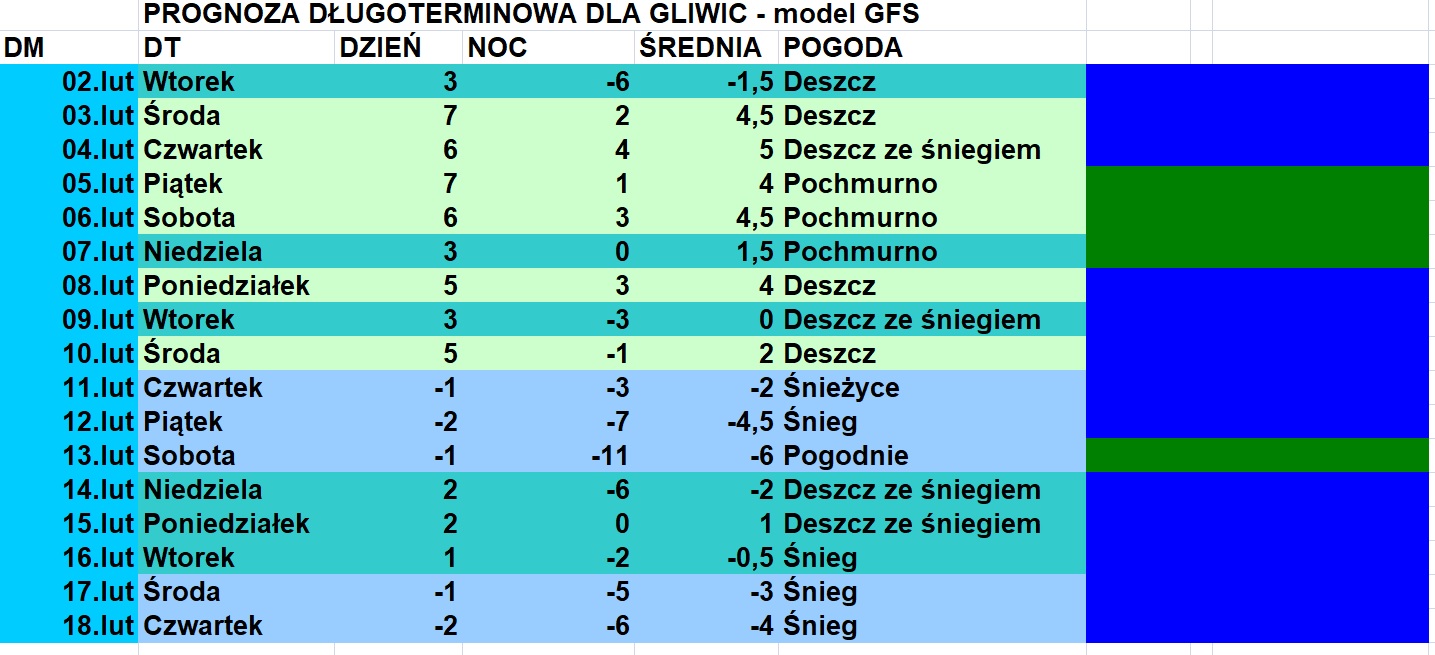 Termicznie wydaje mi się, że rozdanie z południa bardziej się sprawdzi, a nie z rana, ale w kwestii wystąpienia opadów (a właściwie ich wielkości, bo ja widziałem niekiedy ciągi opadów śniegu zimą w meteomodel, ale ich ilość często wynosiła bardzo mało, rzędu ~0.1 mm, a od tego pokrywa prawie nie rosła, więc...) mogą obydwie wersje nie trafić. Zobaczymy: wydaje mi się, że luty zaskoczy, ale bardziej mrozami niż śniegiem (jego może być paradoksalnie niewiele). Że luty to najzimniejszy miesiąc to nie powiedziałbym (przynajmniej na S Polski, bo na N tak może być- Morze Bałtyckie przestaje być magazynem ciepła), jak sprawdzałem znaczenie przysłowia/powiedzenia "Idzie luty, podkuj buty", no ale jak patrzę na wykresy, to dostrzegam na ogół większe amplitudy temp..