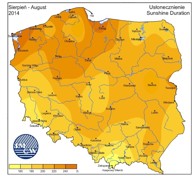 Do usłonecznienia to jednak najlepsze są mapki interpolacyjne, zapobiegają one takim "chochlikom" jak z Warszawa-Okęcie, czy - w przypadku 2014 roku - ze stacji Łódź-Lublinek