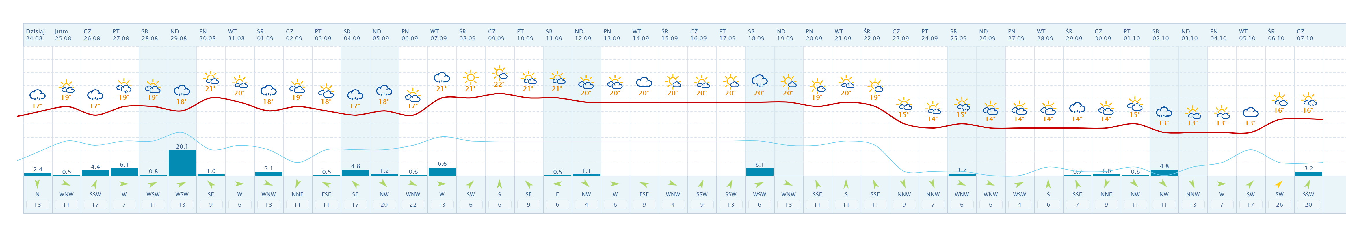Najwyższa temperatura (+22 stopnie) ma być 9 września. https://pogoda.interia.pl/prognoza-dlugoterminowa-siedlce,cId,30948