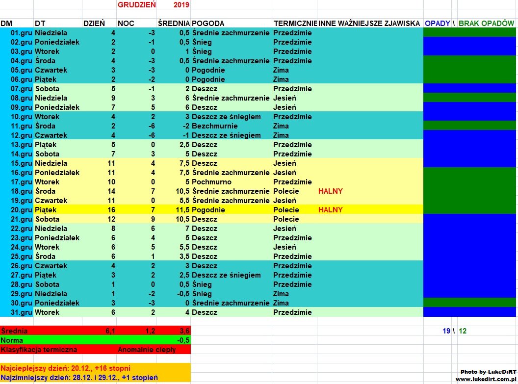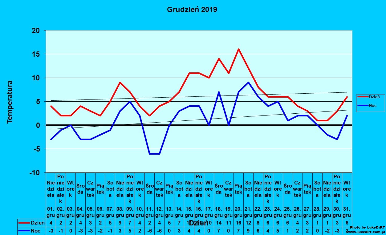 Rejon Krakowa też pogodę miał dziwną. Znaczy z osobistego punktu widzenia było ok, bo ja na ogół wstaję koło godz. 10 (jak nie mam porannych zajęć), więc często czułem przyjemne ciepło. No ale co mogę poradzić: czasem mi się wydaje, że obowiązuje odwrotna korelacja między atrakcyjnością regionu (ze względu na krajobrazy), a panującą w nim pogodą. Kraków i okolice są ładne, ale pogoda 1 z najgorszych w Polsce (nieważne jaka pora roku). Paradoksalnie 29.12.2019 u mnie temp. była na krótko dodatnia.