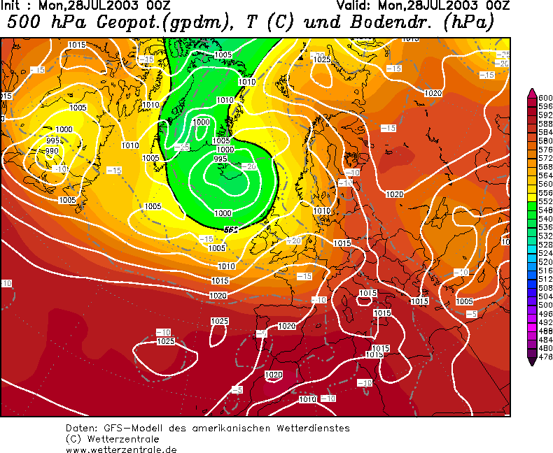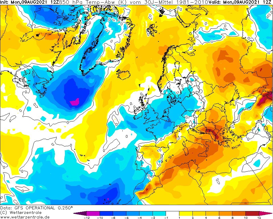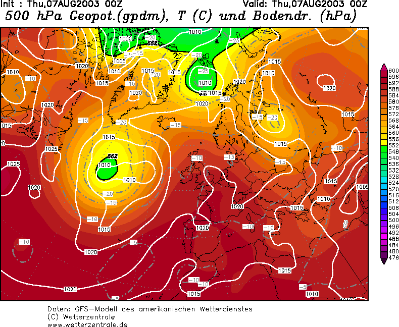 Ta końcówka szczególnie się rzuca w oczy. Analizowałem bowiem sytuacje baryczną i widać wyraźnie, że to wschód i północ Euorpy były w 2 połowie lipca pod wpływem blokady wyżowej, a na zachodzie dominowały niże i chłodne, polarnomorskie masy. Wiemy to nawet z tego, że lipiec 2003 na W Polski miał dużo słabszą anomalię niż na E - przez wiele lat myślałem na odwrót, polegając na mitach o jednym wielkim upale całe lato na zachodzie Europy...