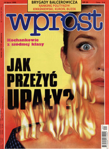 To daje do myślenia. Lipiec 1999, choć bardzo ciepły, dziś nie robi już wrażenia, a na dzisiejsze standardy mógłby się wręcz nie podobać z powodu wielu pochmurnych dni, zwłaszcza na południu. Kilka dni upalnych też nie robi wrażenia, a tymczasem okładka tygodnika "Wprost" z 18 lipca 1999 wywołuje efekt, jakby upałom w tym miesiącu nie było końca Rzeczywistość bardzo się zmieniła jak widać.