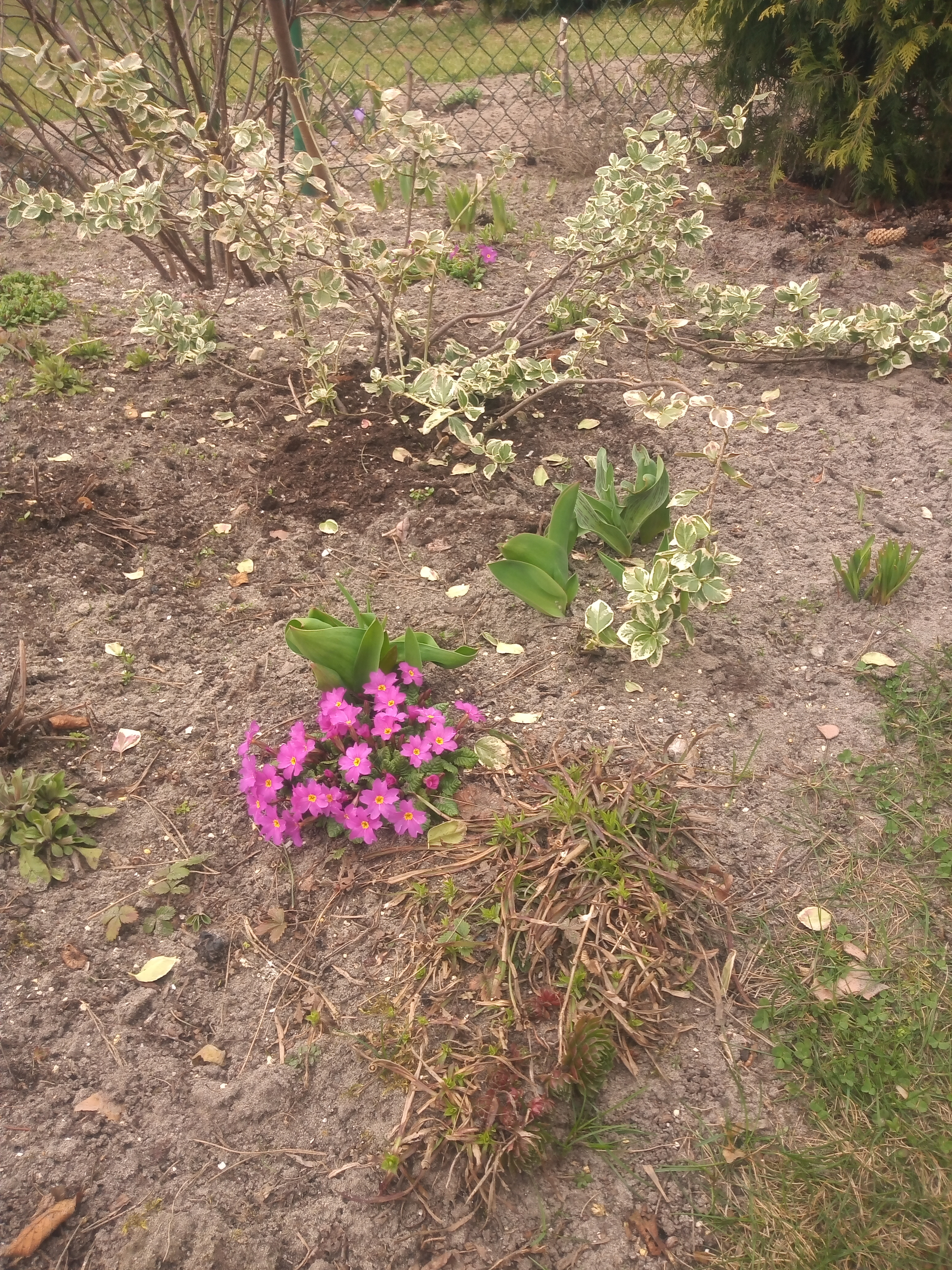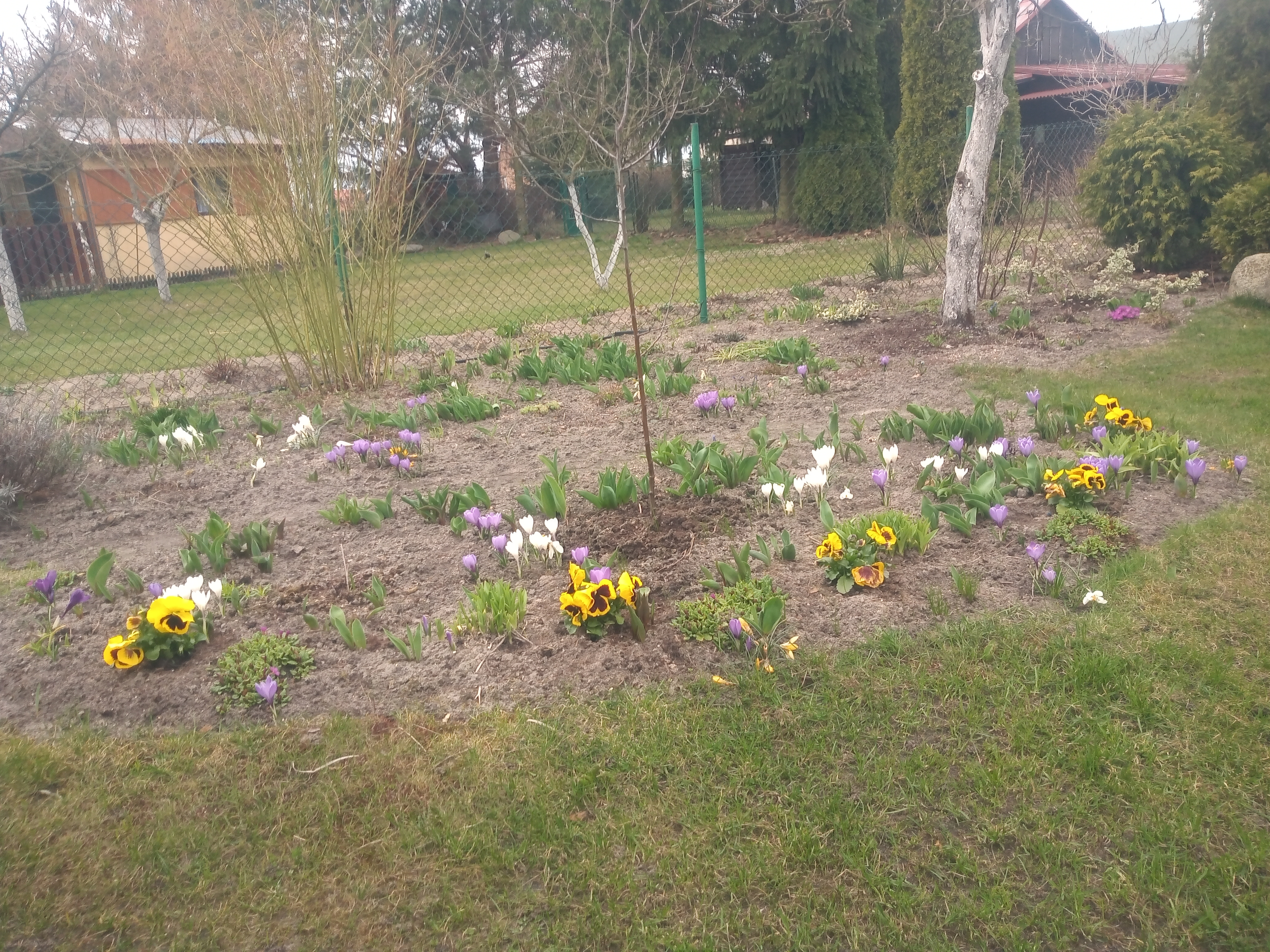 Niedawno przyjechaliśmy z działki. Do studzienki wpuściliśmy pompę zatapialną i podlaliśmy całą działkę i jeszcze nabraliśmy wody w 200 litrową beczkę. Deszczu jak na lekarstwo. Kwiaty cebulowe coraz śmielej zaczynają rozkwitać.