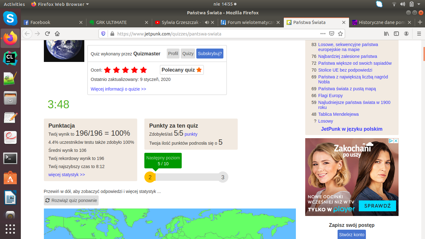 Zapraszam was również do tej zabawy, naprawdę fajny quiz, rzadko kiedy coś mnie tak wciągnęło, a ile się z geografii dzięki temu nauczyłem. Teraz staram się patrzeć też w jakim dokładnie miejscu jest dany kraj, a nie tylko pamiętać nazwy