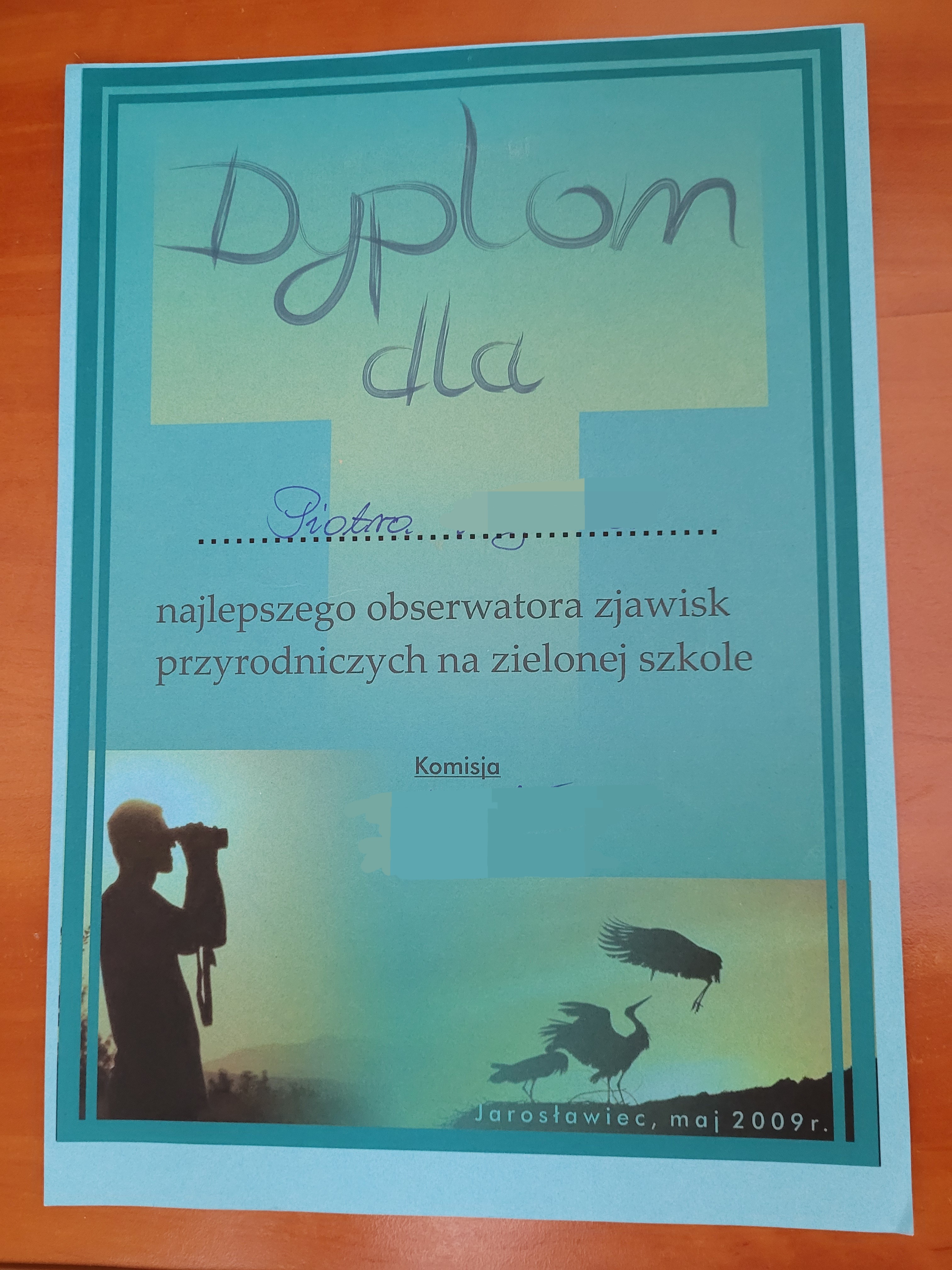 Znalazłem pamiątkę z tego pierwszego miesiąca mojej pasji, ale miło mi się zrobiło :) To za dzienniczek z wyjazdu i wygranie konkursu wiedzy zdobytej na tej zielonej szkole 26 maja 2009 :D Ciągle żyłem burzą sprzed dwóch tygodni i zamiłowanie do przyrody we mnie narastało :)
