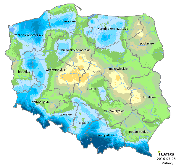 Jorguś, na wyżynach i pogórzu po prostu więcej pada. Jednak granatowy kolor na południu Polski wcale nie musi świadczyć, że jest "dobrze" - u Was zapotrzebowanie jest dużo większe na opady, ponieważ to z waszych regionów płynie najwięcej wody do całego kraju.