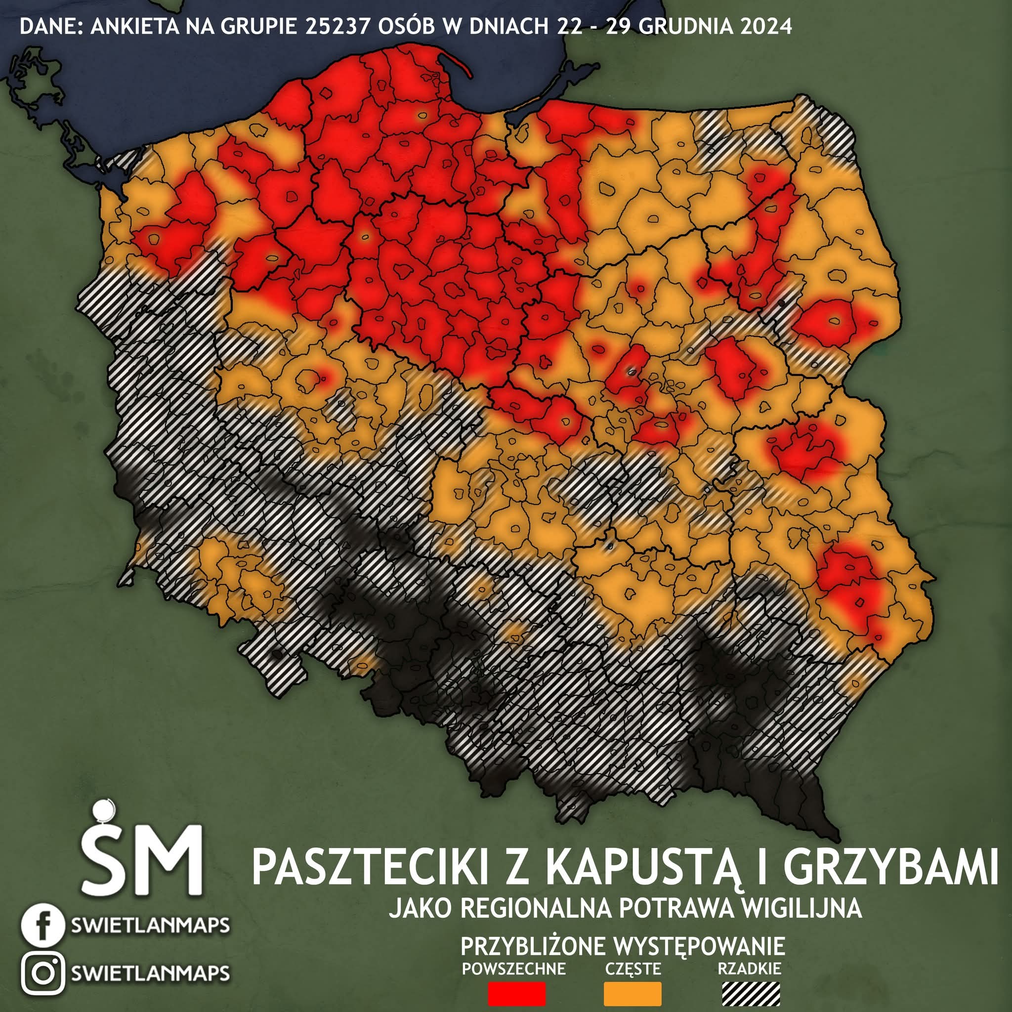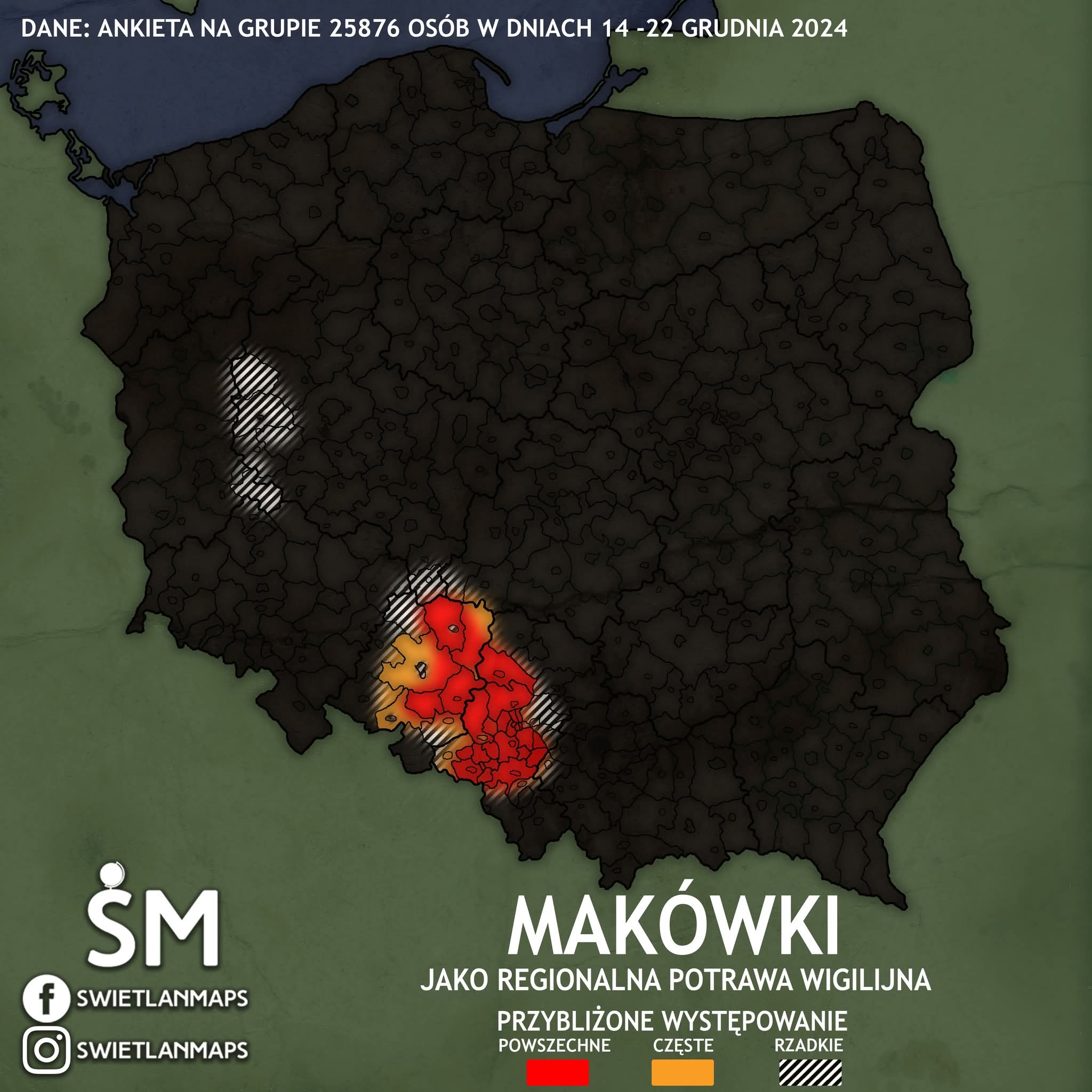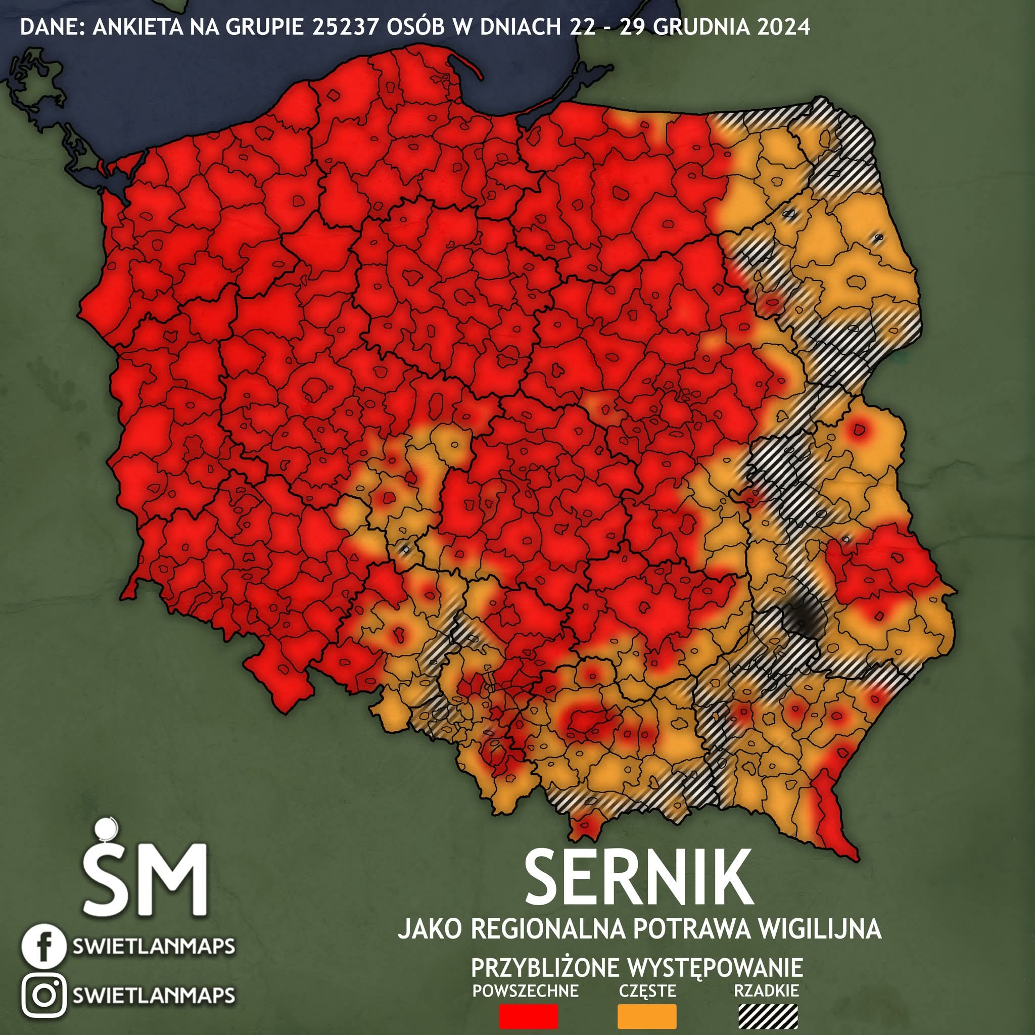 Jutro znowu zasiądziemy do wigilijnych wieczerzy. Z tej okazji kilka ciekawych mapek ilustrujących popularność niektórych potraw w poszczególnych regionach Polski, przygotowane przez Świetlan Maps Zgadzacie się Jedyna uwaga z mojej strony, to że na Sądecczyźnie sernik nazywa się "serowcem"