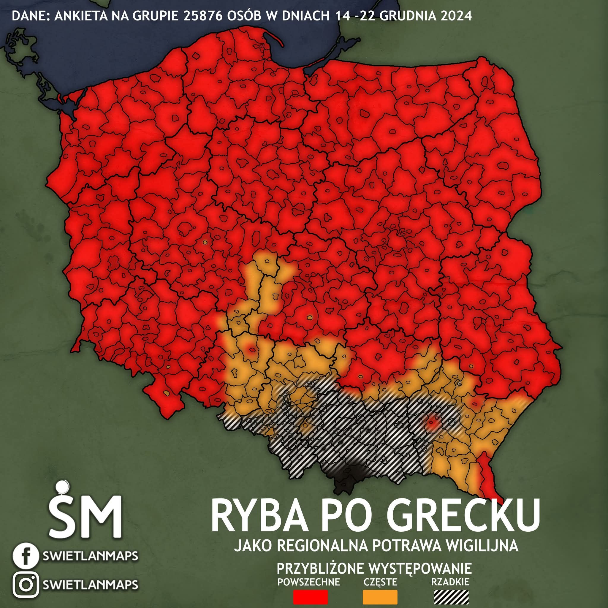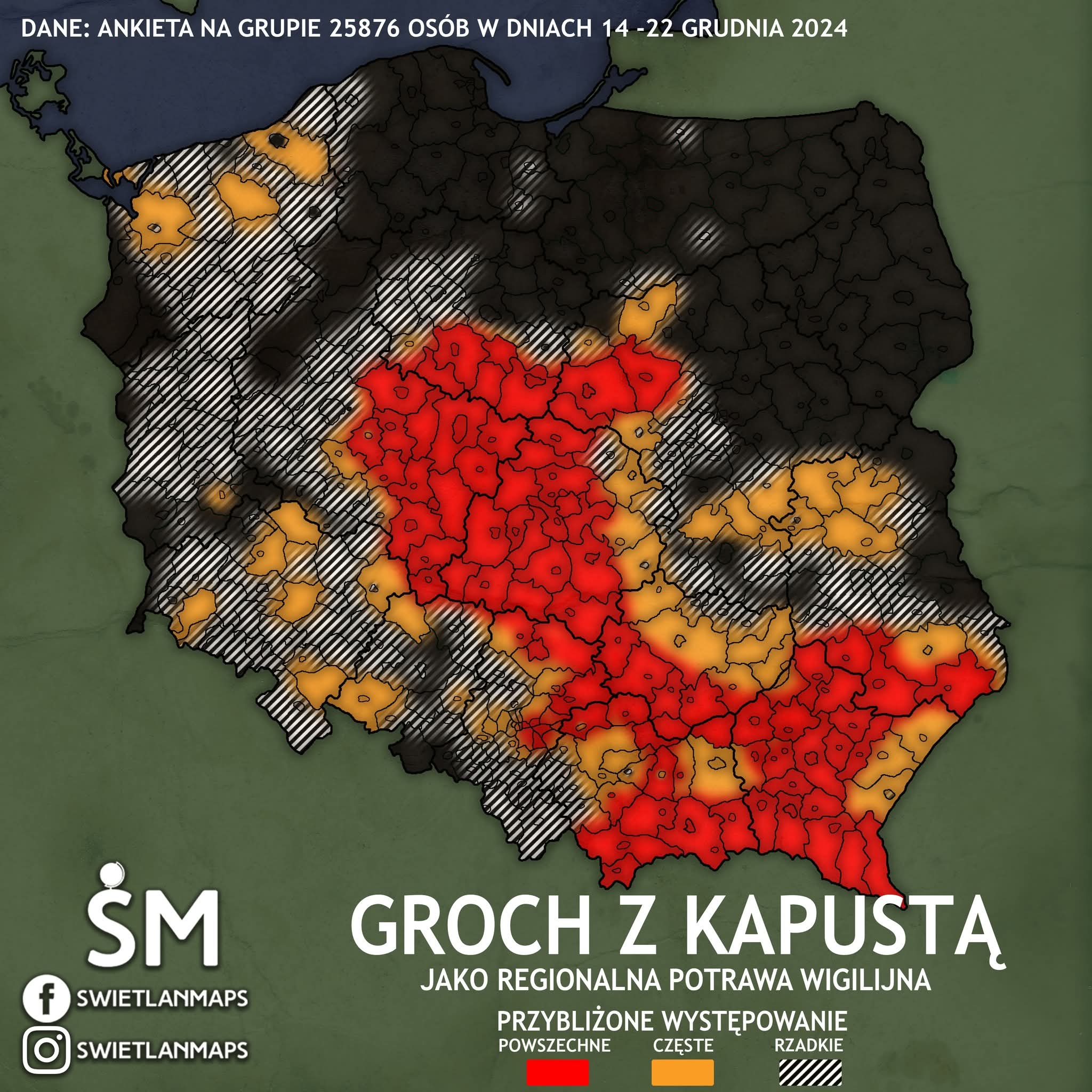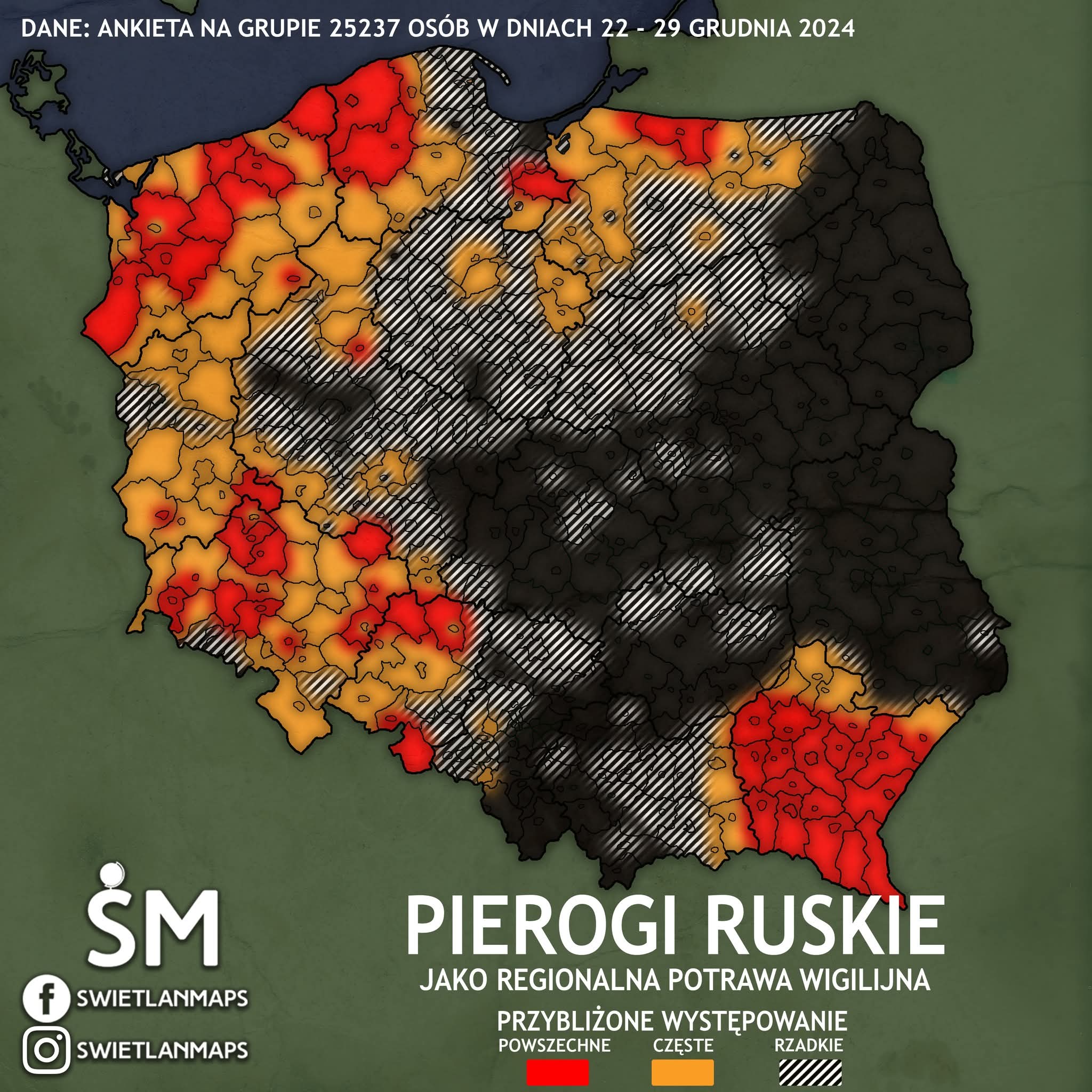 Jutro znowu zasiądziemy do wigilijnych wieczerzy. Z tej okazji kilka ciekawych mapek ilustrujących popularność niektórych potraw w poszczególnych regionach Polski, przygotowane przez Świetlan Maps Zgadzacie się Jedyna uwaga z mojej strony, to że na Sądecczyźnie sernik nazywa się "serowcem"