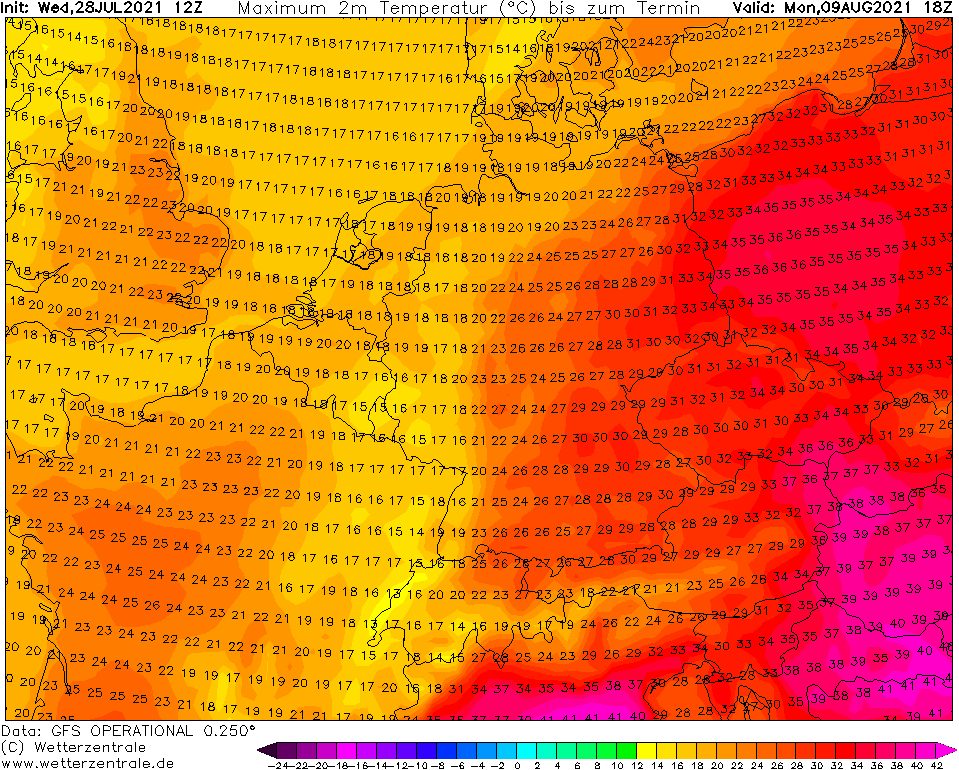 GFS powrócił w swojej prognozie do silnego upału. Co ciekawe, prognoza znowu dotyczy 9 dnia sierpnia.