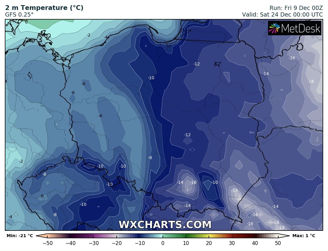 O ewidentnie zimowy okres Wigilii i Świąt Bożego Narodzenia jest trudno, ale naprawdę to jest mit, że w tym okresie bywa jakoś zabójczo ciepło (chyba że względem refa jakim jest koniec grudnia, statystycznie prawie jednego z najzimniejszych okresów- to tak, anomalie bywają niestety wyraźnie dodatnie). :-( Zazwyczaj z tego co pamiętam z ostatnich lat, panuje jednak słotna, typowo odwilżowa aura, z temp. 0-5 C lub niewiele przekraczające +5 C, pada nie tylko deszcz, ale też deszcz ze śniegiem lub śnieg (topiący się lub tworzący małą pokrywę). ;-) Zresztą koniec listopada i początek grudnia uprzywilejował termicznie południe Polski, to może z biegiem miesiąca role się odwrócą i to w północnej połowie będzie cieplej- tak byłoby jak dla mnie sprawiedliwie. ;-)