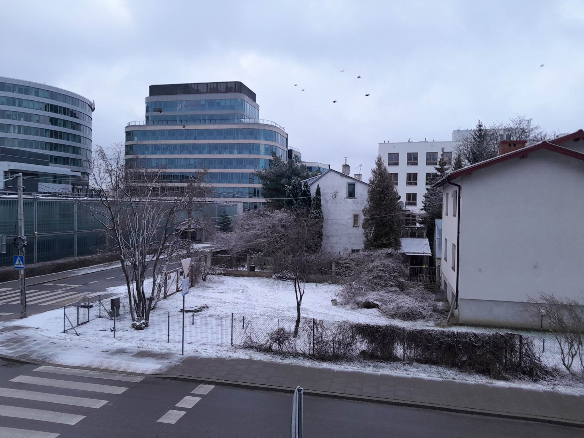 Wracając do tematu. Z rana przy zerowej temperaturze padał śnieg i przybyło go, potem nieco się ociepliło (do +1-go stopnia) i nieco się go stopiło. W tej chwili znów jest nieco poniżej zera. Wiatr niewielki.