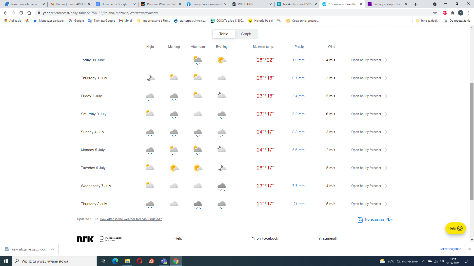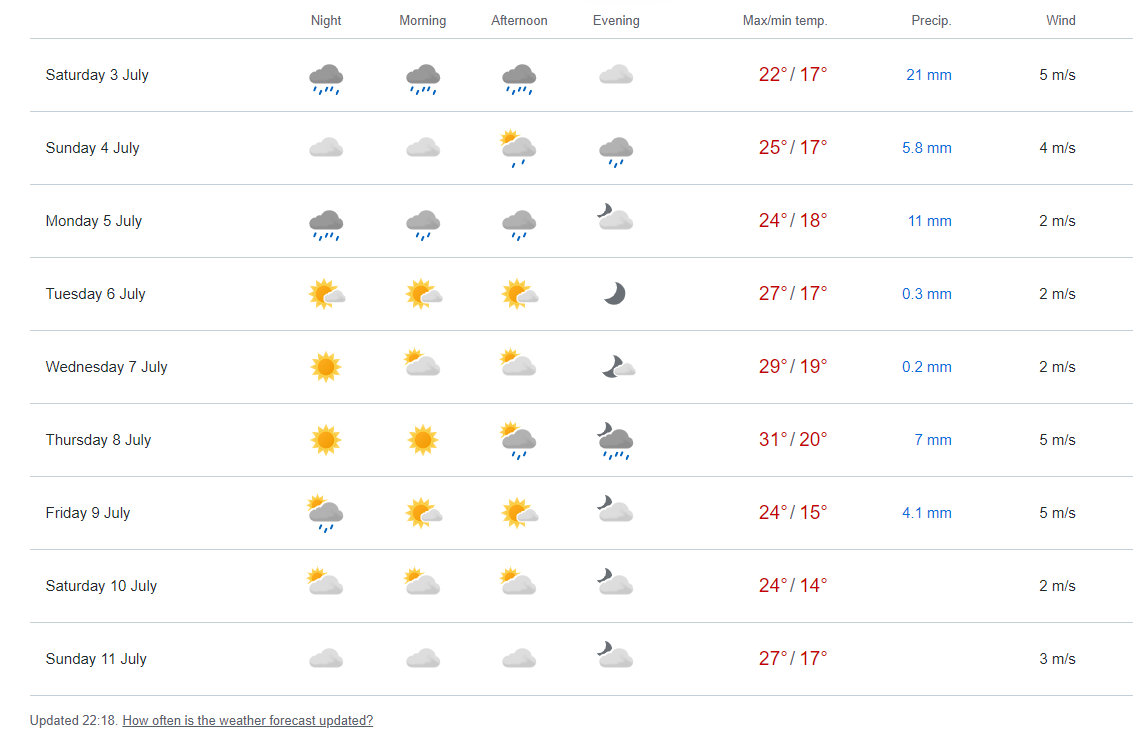 Będzie to jeden w miarę słoneczny dzień (i to niepełny, gdyż pod wieczór przypałęta się burza). Do połowy lipca prawie codziennie ma padać a dni bez deszczu będzie można policzyć na palcach jednej ręki...
