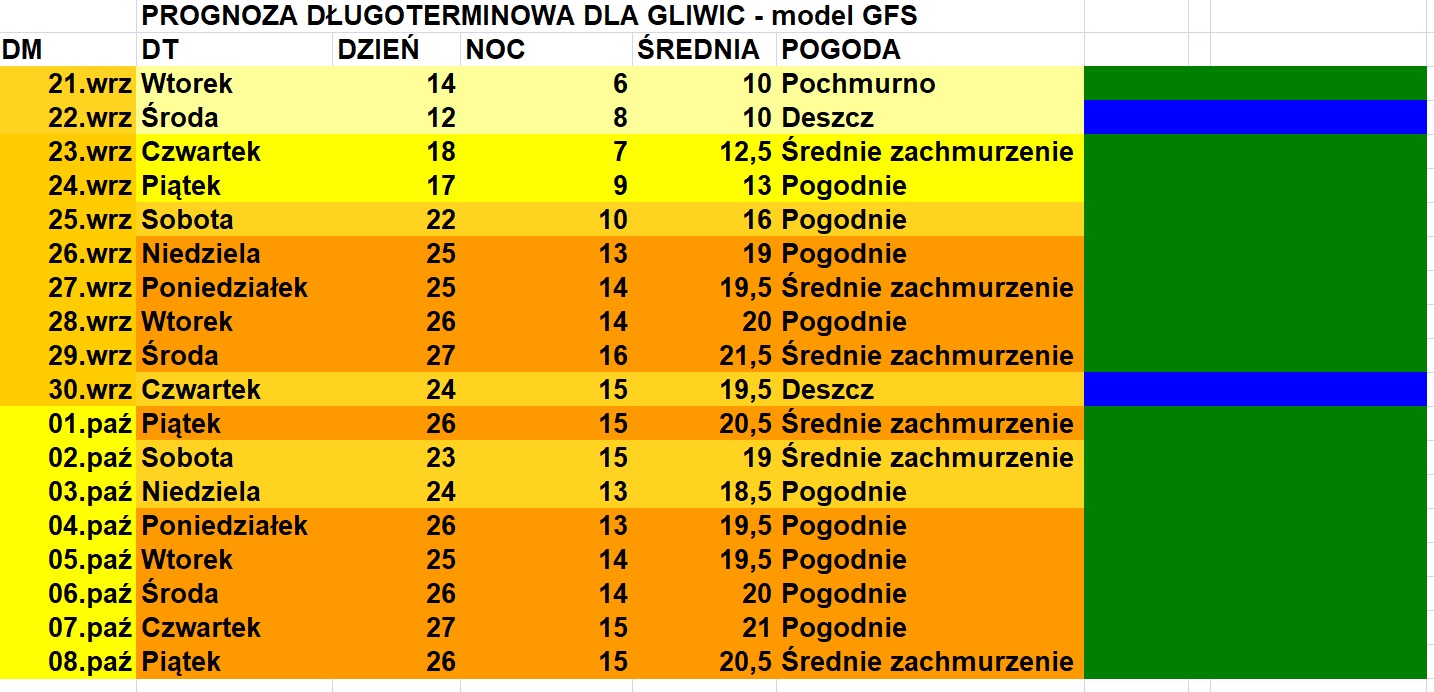 Prognoza długoterminowa dla Górnego Śląska (13.09.2021)