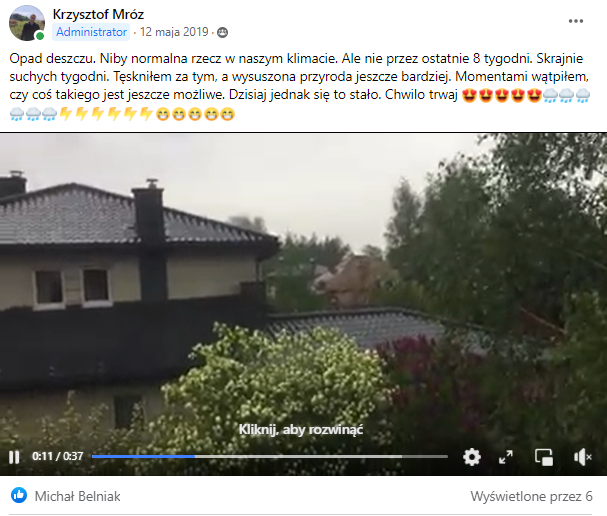 Mi się też chyba podoba bardziej maj 2020, bo potrafił być całkiem pogodny jak na zimno (ale o 2019 mam dość dobre zdanie). Wieczór 11 maja się udał (tzn. był dość ciepły, bo wówczas zaczynała się wędrówka frontu chłodnego (do południowych województw jeszcze nie doszedł), a 19 maja był faktycznie ciepłym dniem, temp. wzrosła do +25 C (choć noc była 1-cyfrowa i tak). 4 dni wcześniej, kiedy jechałem na rowerze w stronę Olkusza w niewielkim deszczu, przy temp. ponad 2 razy niższych (było 10-12 C w szczycie), nie sądziłem, że do takiego ocieplenia dojdzie.