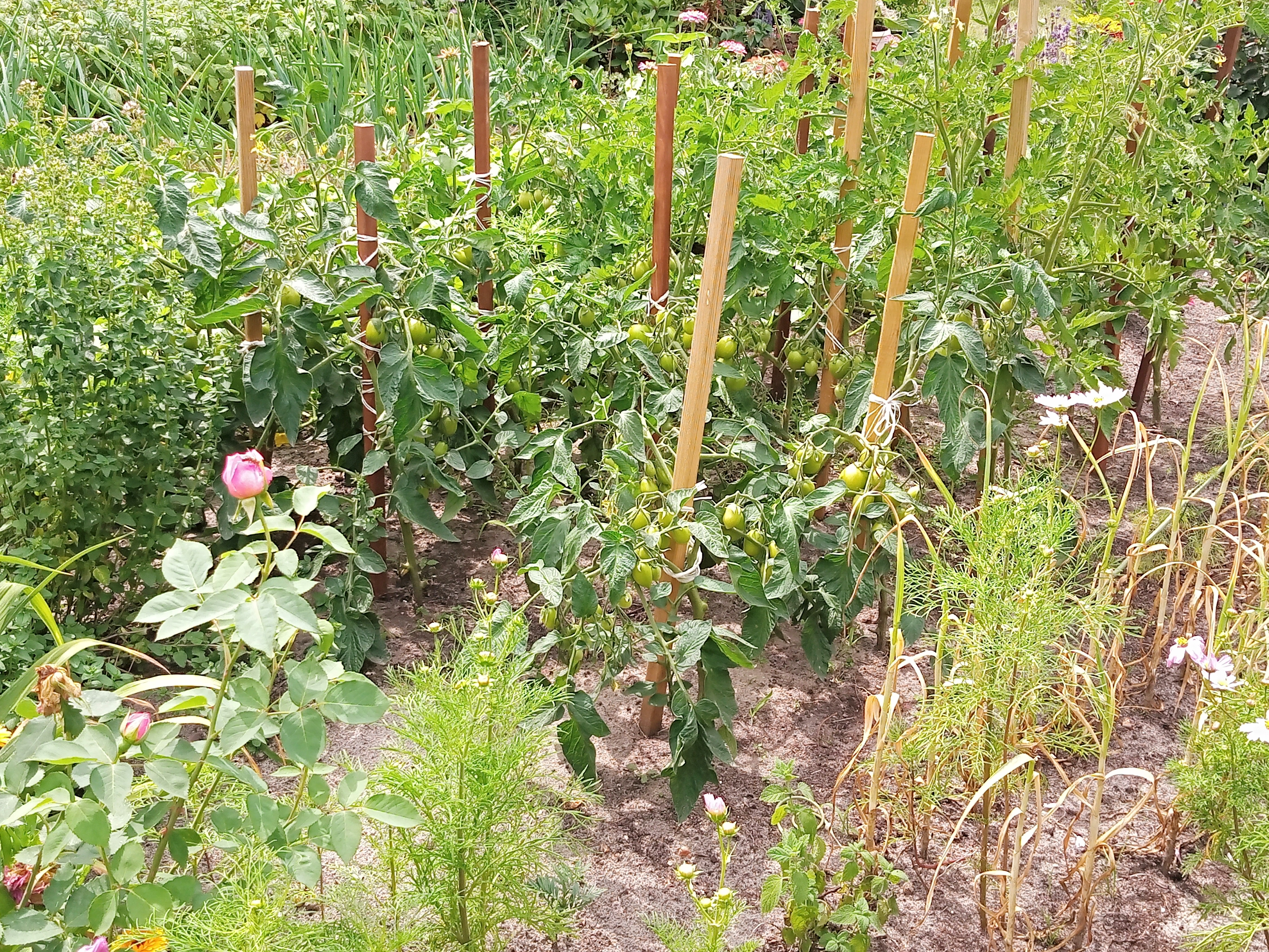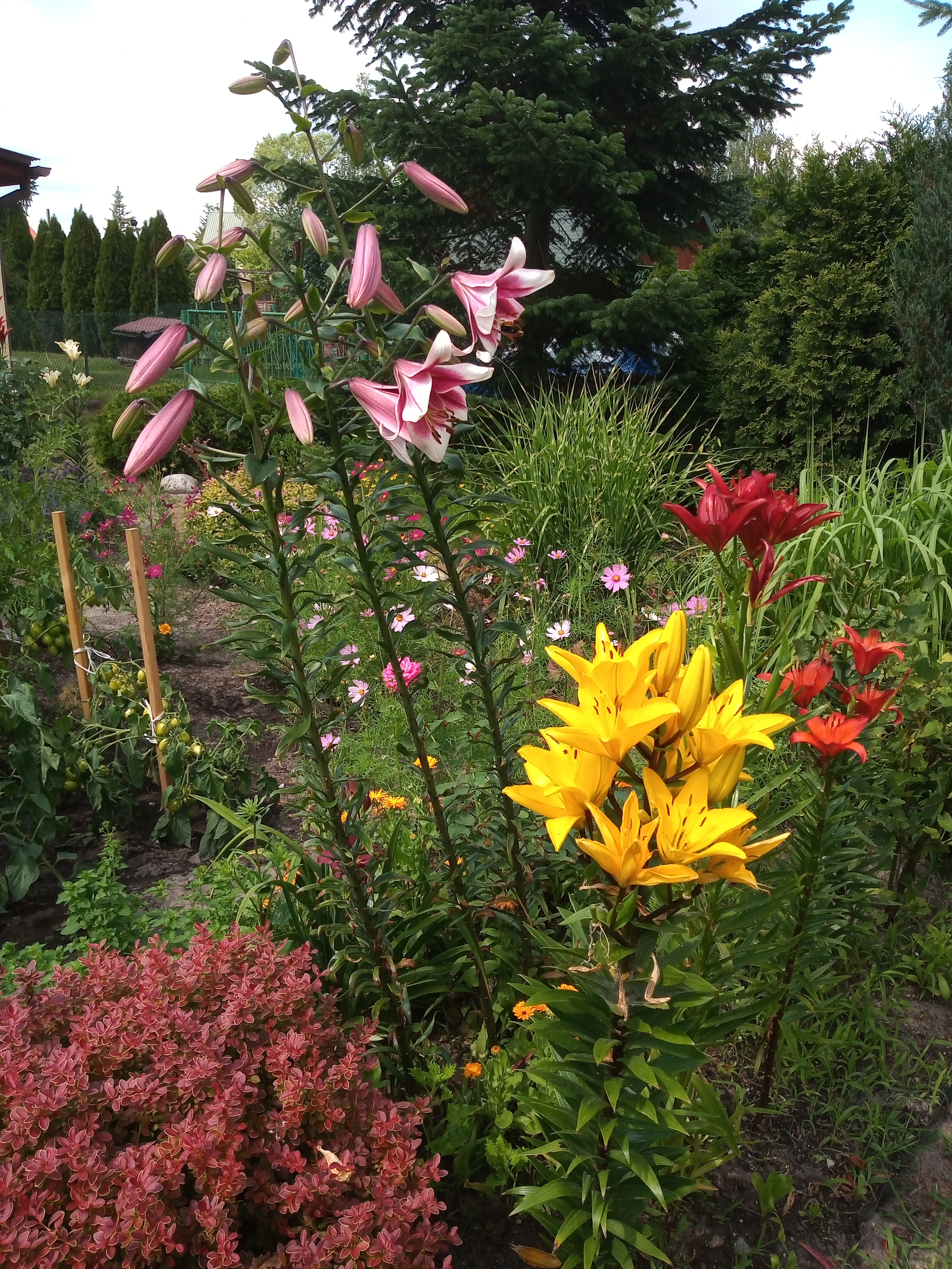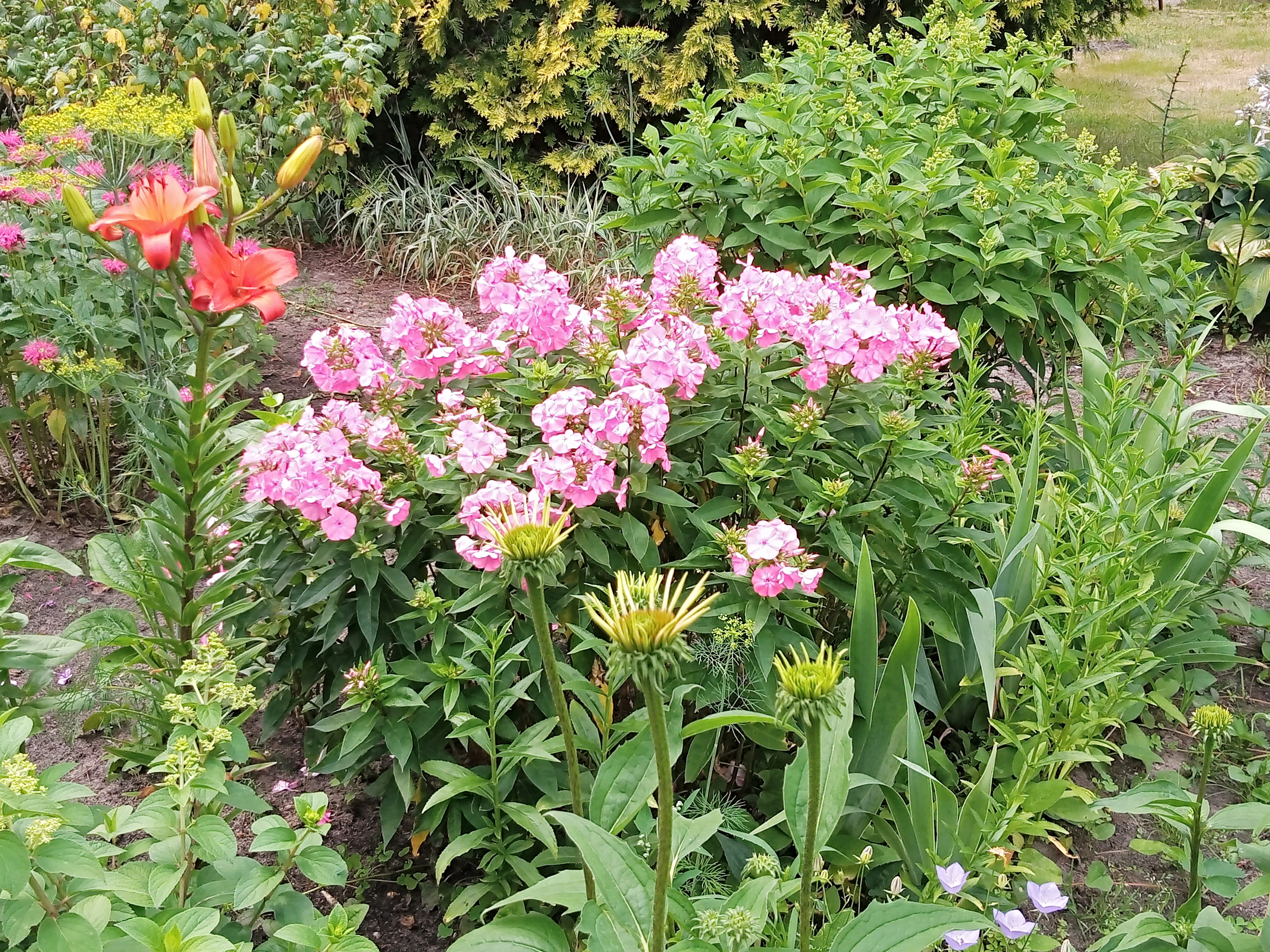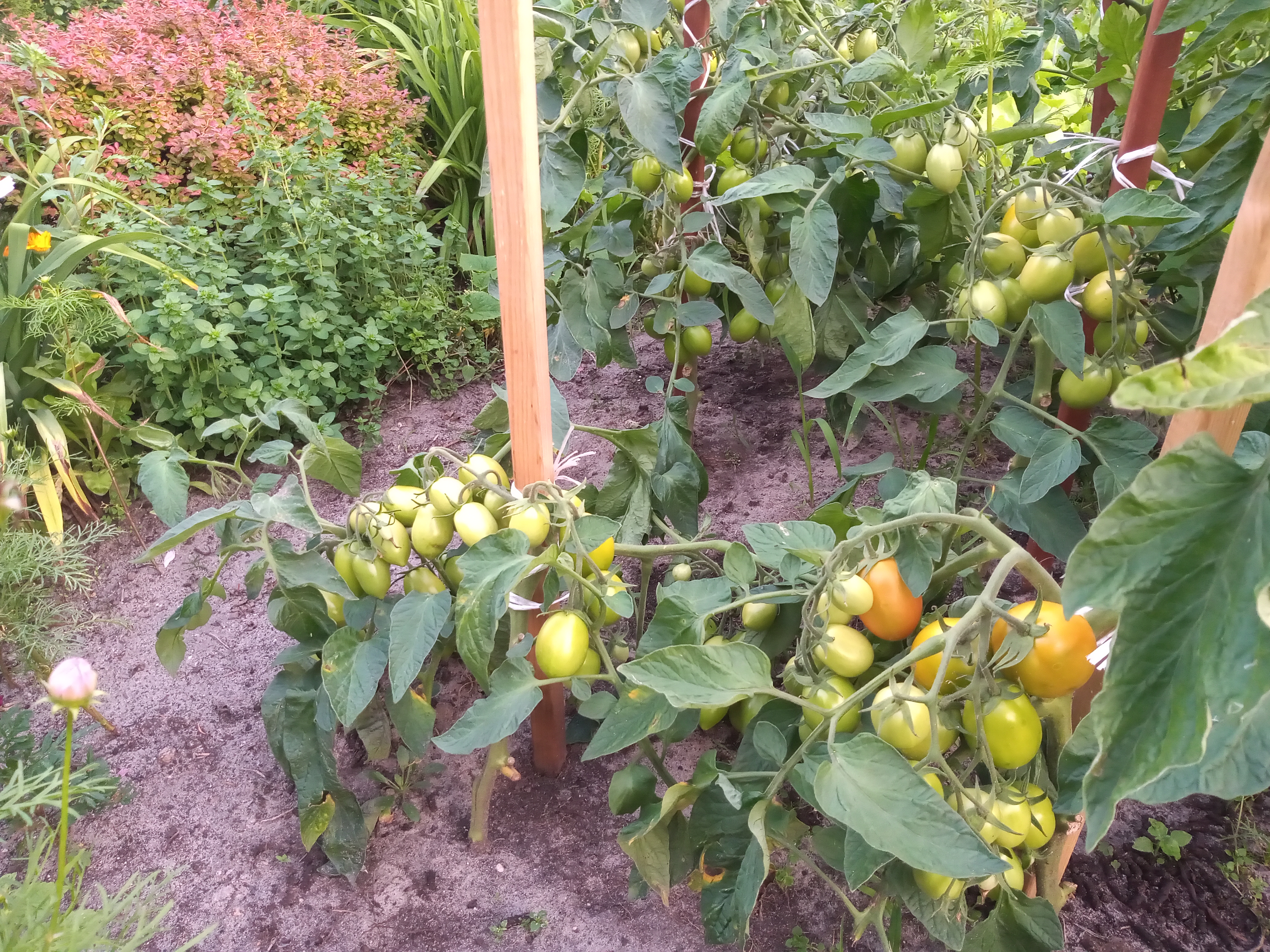 Jeszcze zielone pomidory gruntowe, floks i pysznogłówki .