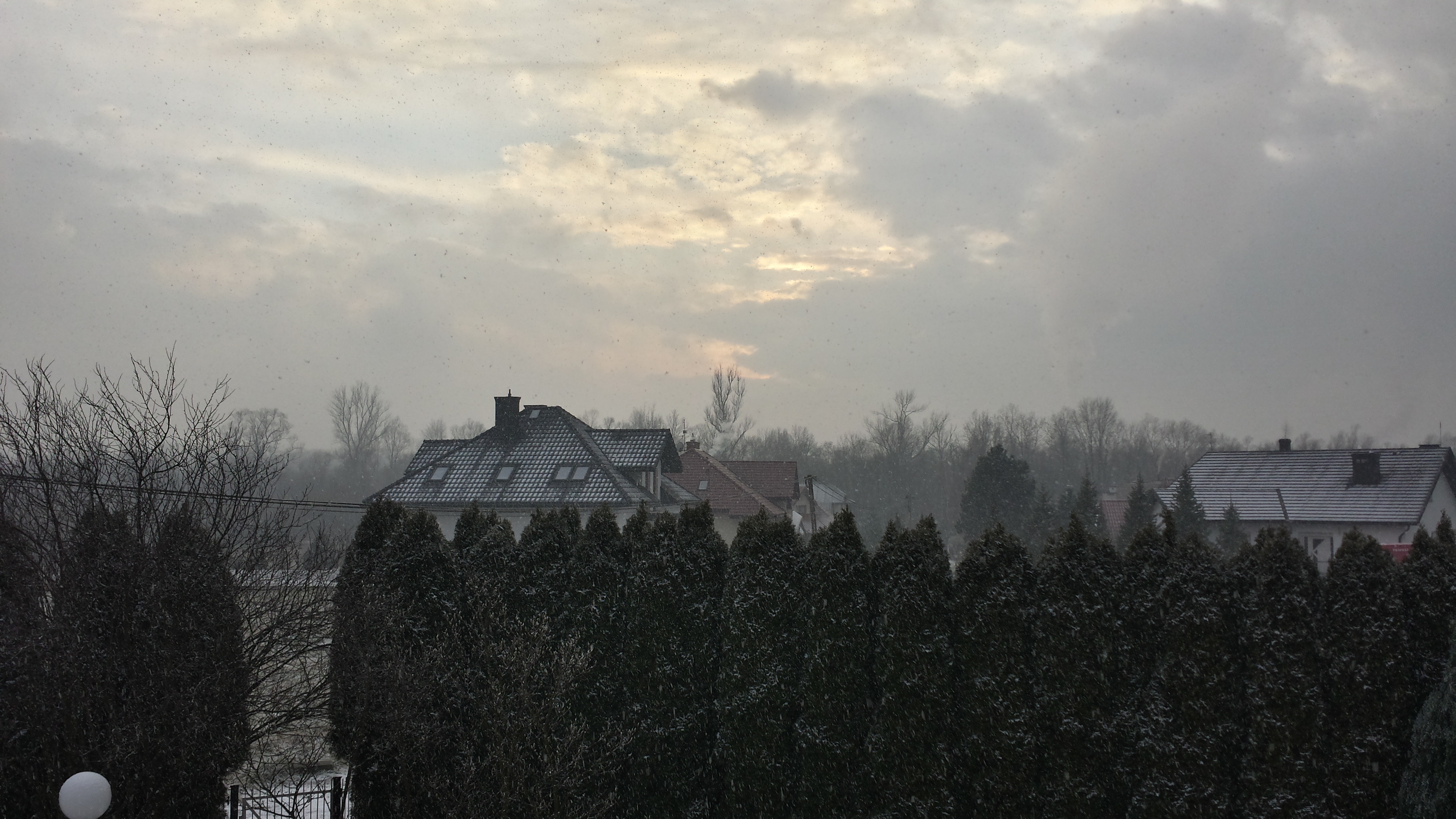 20 stycznia nadeszło kolejne krótkie ochłodzenie połączone z opadami śniegu, które rozpoczęły się tego dnia w miłej dla oka scenerii zachodzącego słońca.