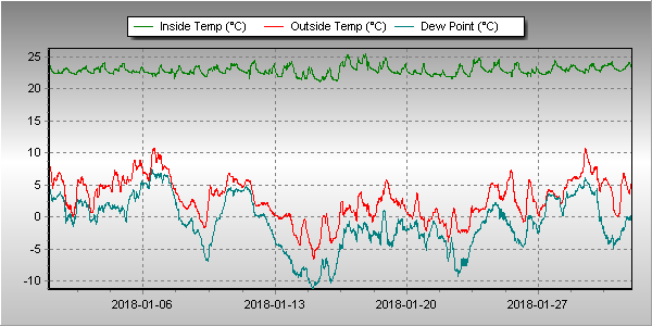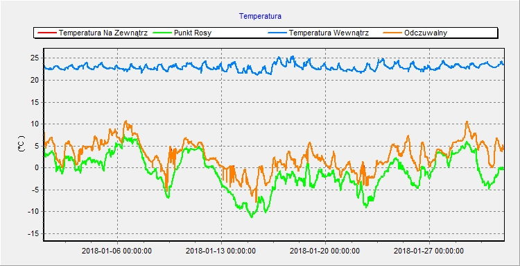 Dni 13-16 stycznia, to suche ochłodzenie, bez śniegu, ale za to z prawie pełnym usłonecznieniem (14 i 15 I). Dzienna Gwiazda i brak bieli na ziemi sprawiły, że ochłodzenie do dzisiaj umknęło z mojej pamięci, szczególnie go nie zauważyłem. Dotkliwiej można było się o tym przekonać rankiem 15-ego, kiedy temperatura spadła u mnie do -10 stopni (-8,9 na stacji, gdzie zimowe TMiny niemal zawsze są trochę wyższe niż u mnie). Było to pewnego rodzaju zderzenie z rodzimą rzeczywistością, bo do tej pory temperatury minimalne były wręcz "brytyjskie". Ciepłe dni wróciły, ale już w słabszej postaci. Nie było cieplej niż 5 stopni, słońca też mniej, ale nadal sporo jak na zimę. O "ciemnicy" można było zapomnieć.