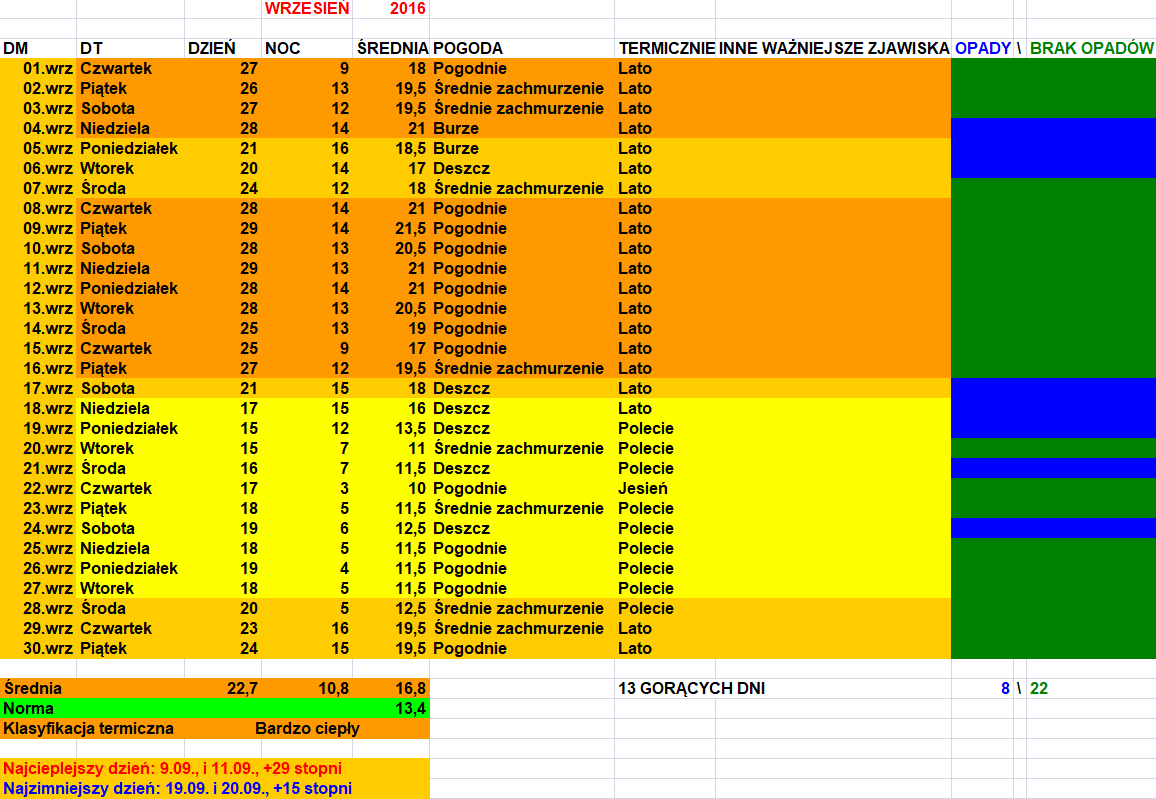 Jeden z najbardziej udanych wrześniów w XXI wieku. Lepszy był chyba tylko wrzesień 2006, ale nawet on nie dorównał liczbie gorących dni wrześniowi sprzed 2 lat.