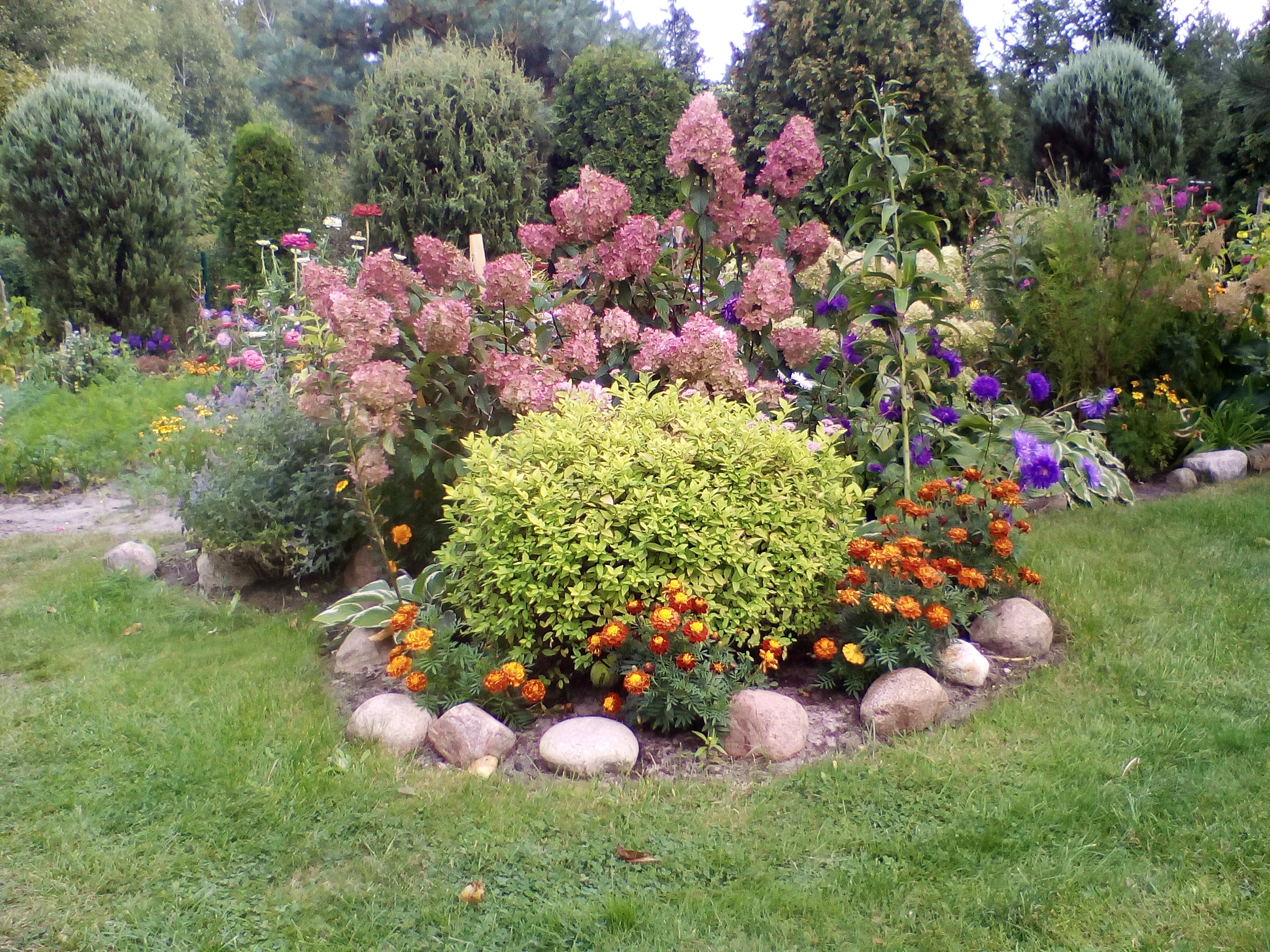 Pokażę moje ale zdjęcia z I połowy lipca a najpiękniejsze są we wrześniu ale wtedy zdjęć samych kwiatów nie zrobiłem. W środku zdjęcia są białe hortensje.
