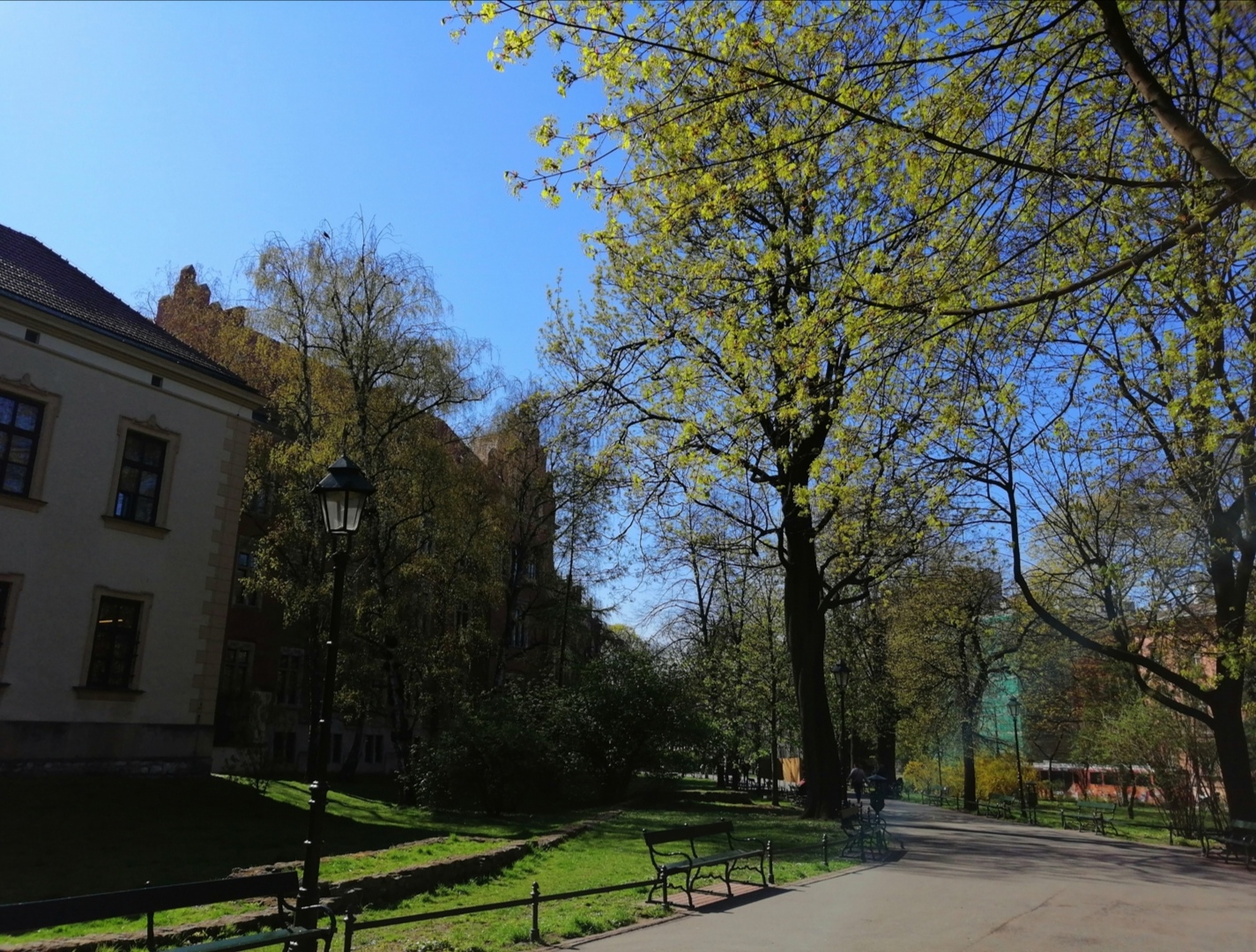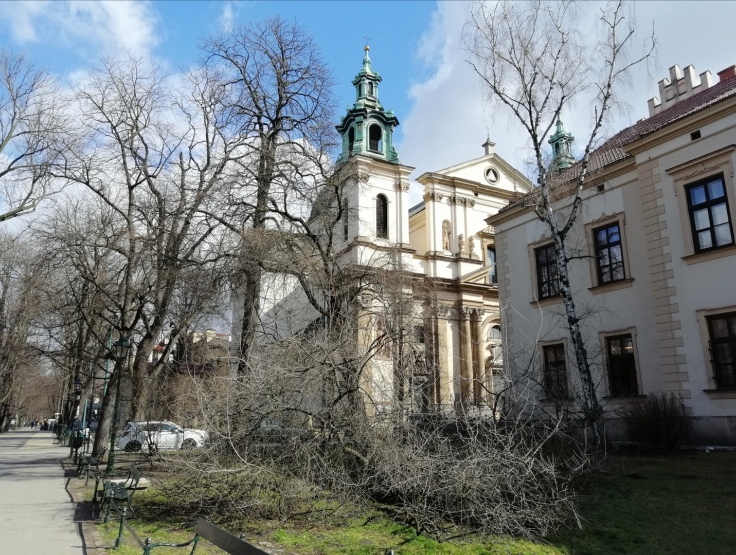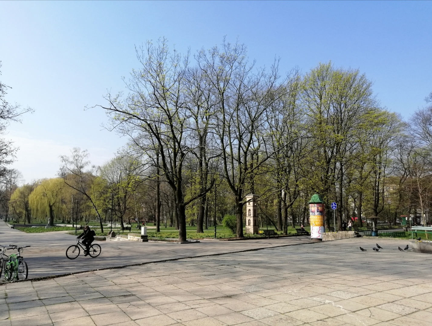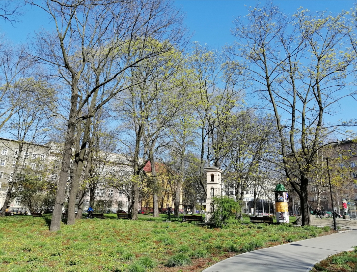 Park przy Placu Inwalidów w Krakowie 8 kwietnia - już robi się zielony.