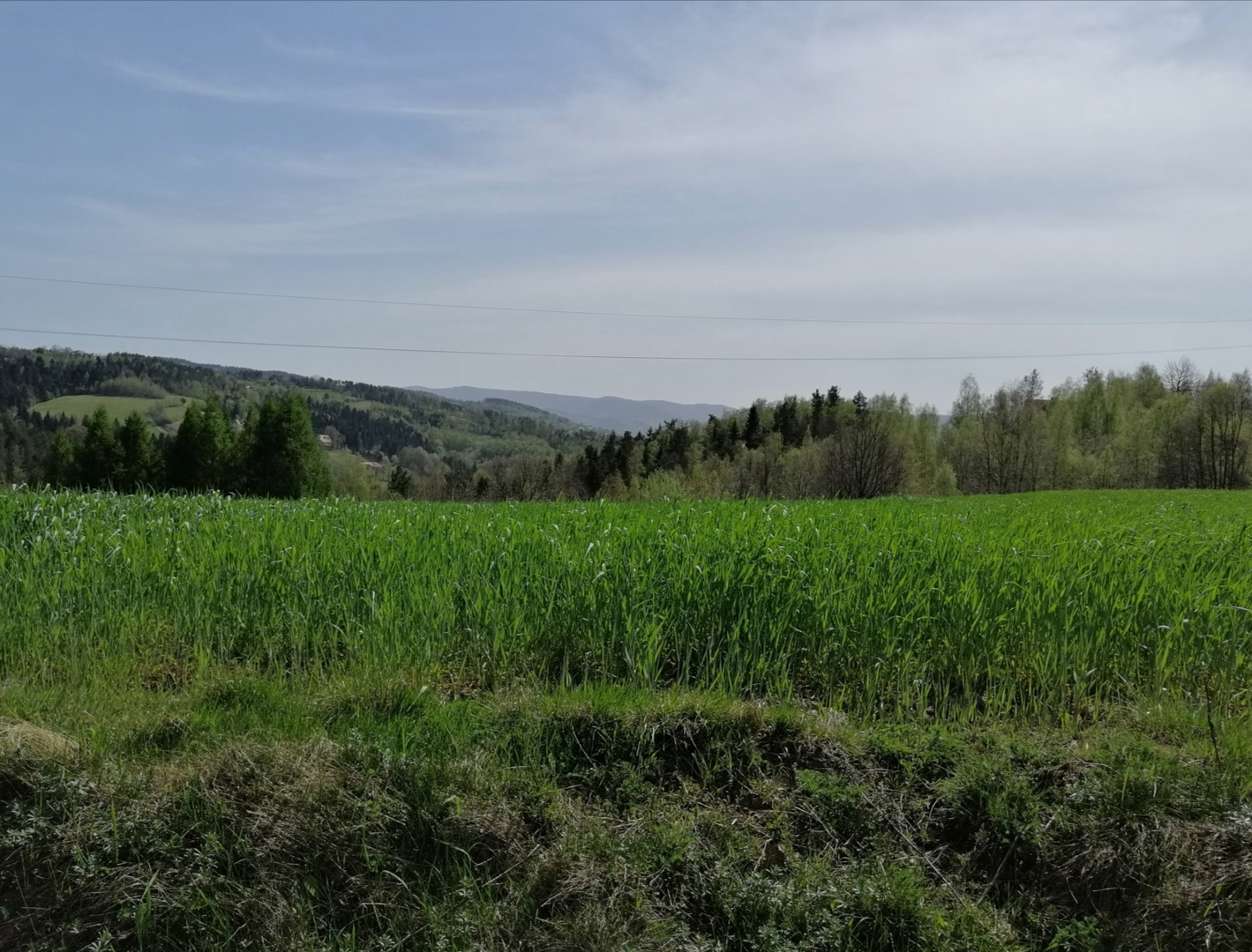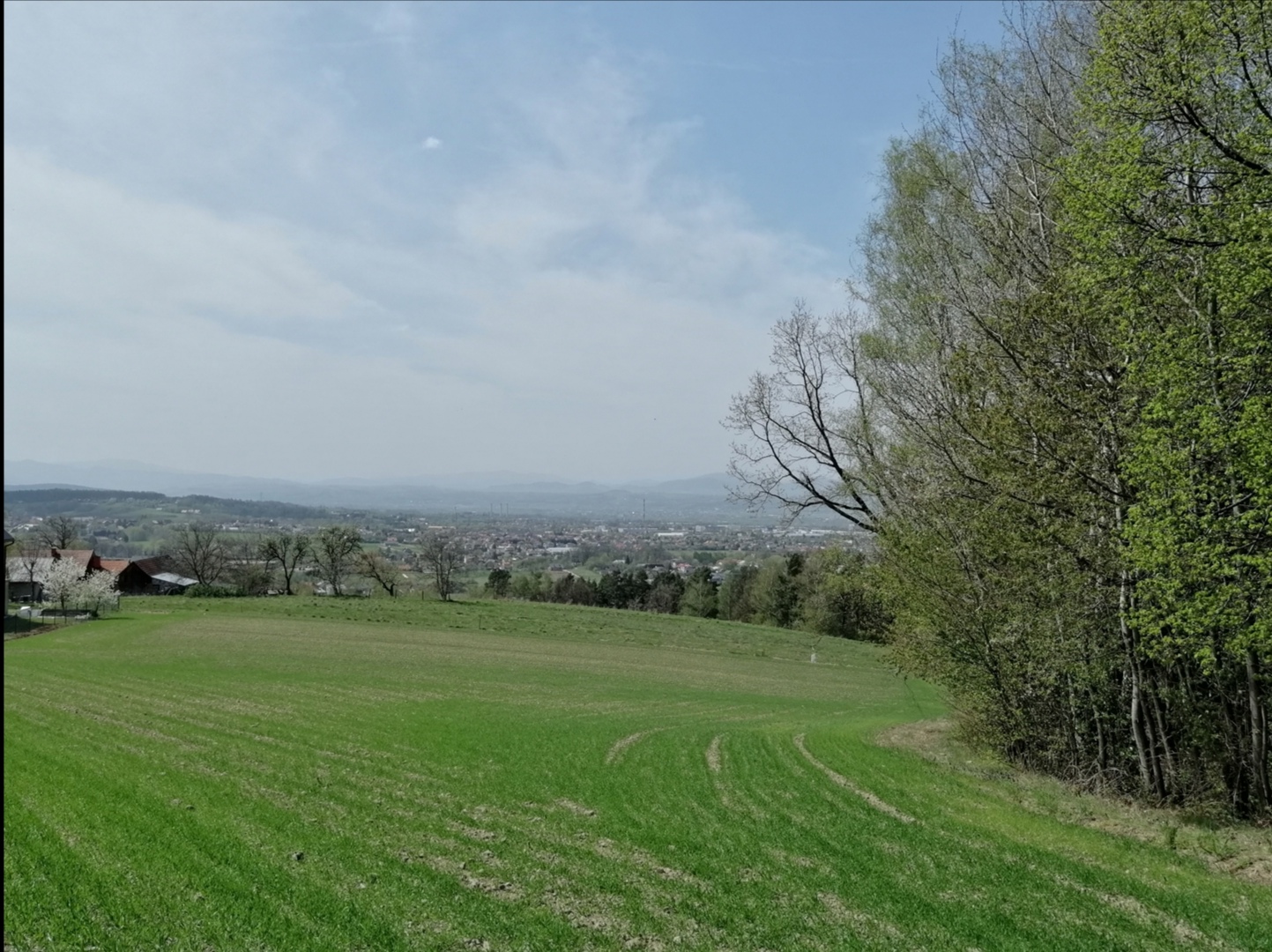 W Nowym Sączu ten piątek zamknął się temperaturą maksymalną równą 28,2 i średnią 19,5 stopnia. Podobnie jak w Tarnowie, wieczór był anomalnie ciepły, jednak średnią powstrzymał dość chłodny poranek z temperaturą minimalną 7,7. Tego dnia zachęcony całkiem przyjemnymi prognozami ECMWF i faktem rozkwitania roślinności, wybrałem się na rowerze na łono natury. Niestety początkowo przyjemnie ciepły i pogodny dzień prędko się zmienił. Wzmógł się wiatr, a niebo zaczęły zakrywać cirrocumulus stratiformus. Temperatura stała się nieprzyjemna. Zawsze pierwszy tak gorący (podobnie jak pierwszy naprawdę zimny, w tym roku 28 października) dzień w roku jest dla mnie czymś wrednym. Było bardzo sucho, przez co wegetacja już była delikatnie opóźniona, mimo że pod koniec marca była rozwinięta jak rzadko kiedy, tak jak w 2014 roku. Jak widać na zdjęciach zrobionych w okolicach Nowego Sącza (na jednym z nich widać fragment miasta), zieleń nie była taka jaka być powinna. Chroniczny niedobór opadów sprawiał, że trawa była krótka, a jej odcień nie przypominał tego, który widywałem w poprzednich latach. Kiedy wracałem, duża część trasy wiodła z górki, a wtedy wiatr zaczął wiać mi w twarz, niosąc w moją stronę kurz i piach. Jak na Dzikim Zachodzie w samo południe, ale trudno się temu dziwić skoro wszystko było tak wysuszone. W domu byłem po około dwóch godzinach, trochę zmęczony i z brakiem wiary w to, że nadal mamy kwiecień, i to nie taki znowu anomalny. Kiedy wszedłem na meteomodel i zobaczyłem jakie mamy w Polsce temperatury, zdębiałem xD