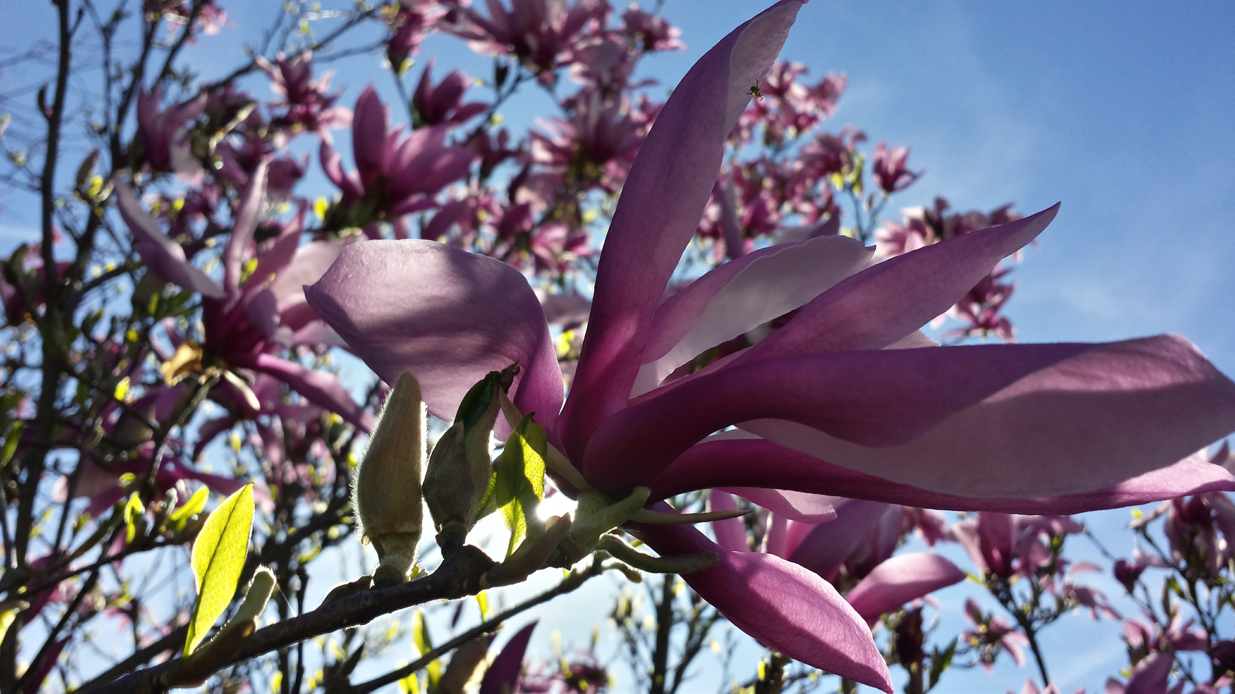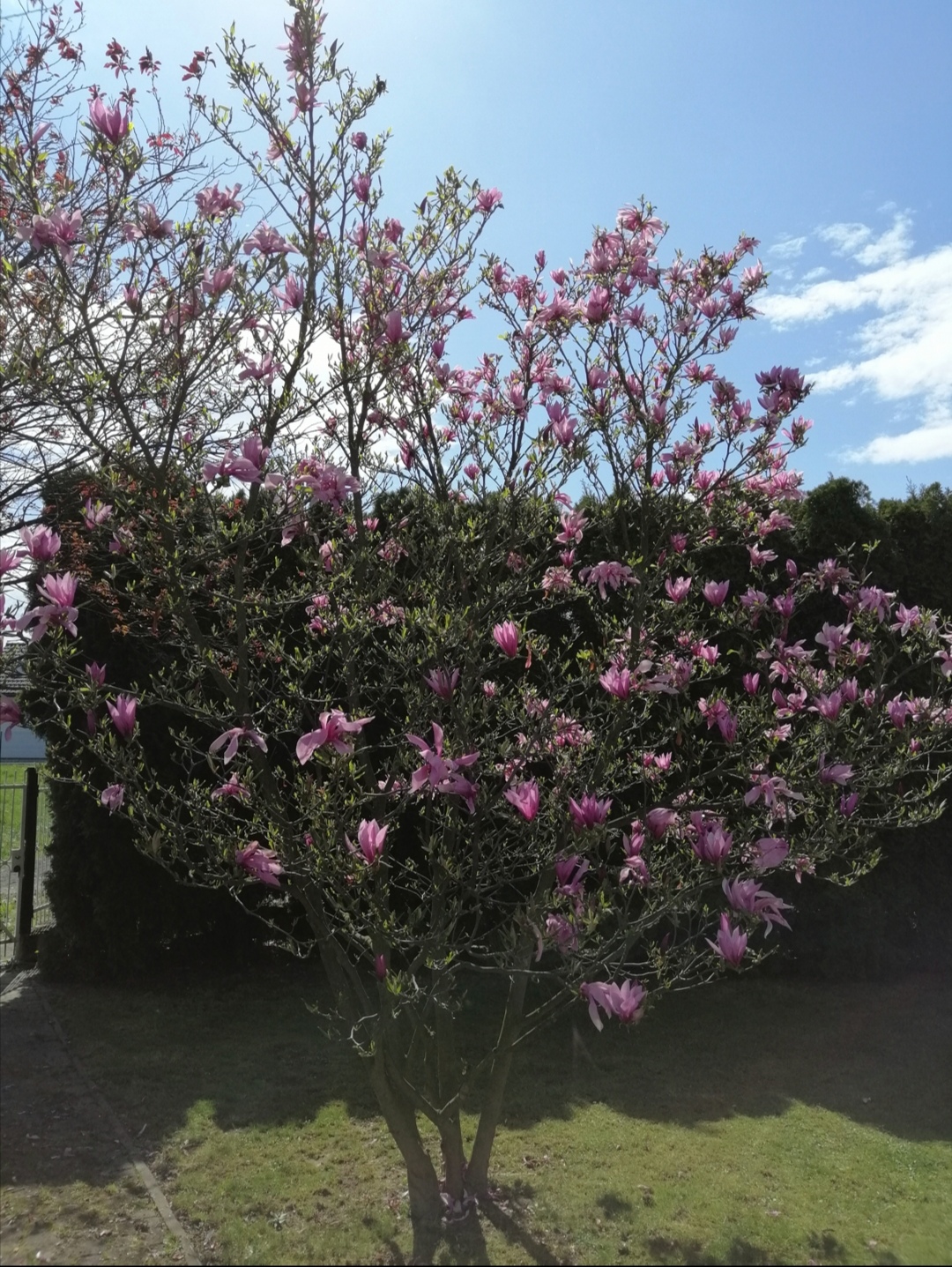 To moja magnolia liliflora na zdjęciach z 1 maja 2019 i mojego kochanego 20 kwietnia 2018 (makro). W ostatnich latach często się zdarza, że kwitnienie powtarza się jesienią, ale raz, w 2012 zdarzyło się, że zakwitła aż trzy razy. Wszyscy byli tym bardzo zdziwieni, poszukam zdjęć, może coś się z tego znajdzie