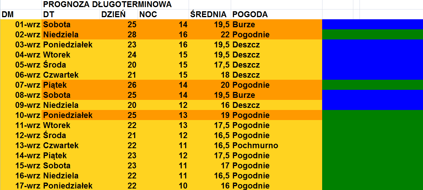 Prognoza już bardziej stonowana - owszem, będzie ładnie i ciepło, ale już bez skrajności, jakie były we wcześniejszych prognozach. W powyższej prognozie widać po prostu ładny, ciepły wrzesień, podobny do tego z 2006 roku. Ale szansa na rekordowo ciepły miesiąc maleje.