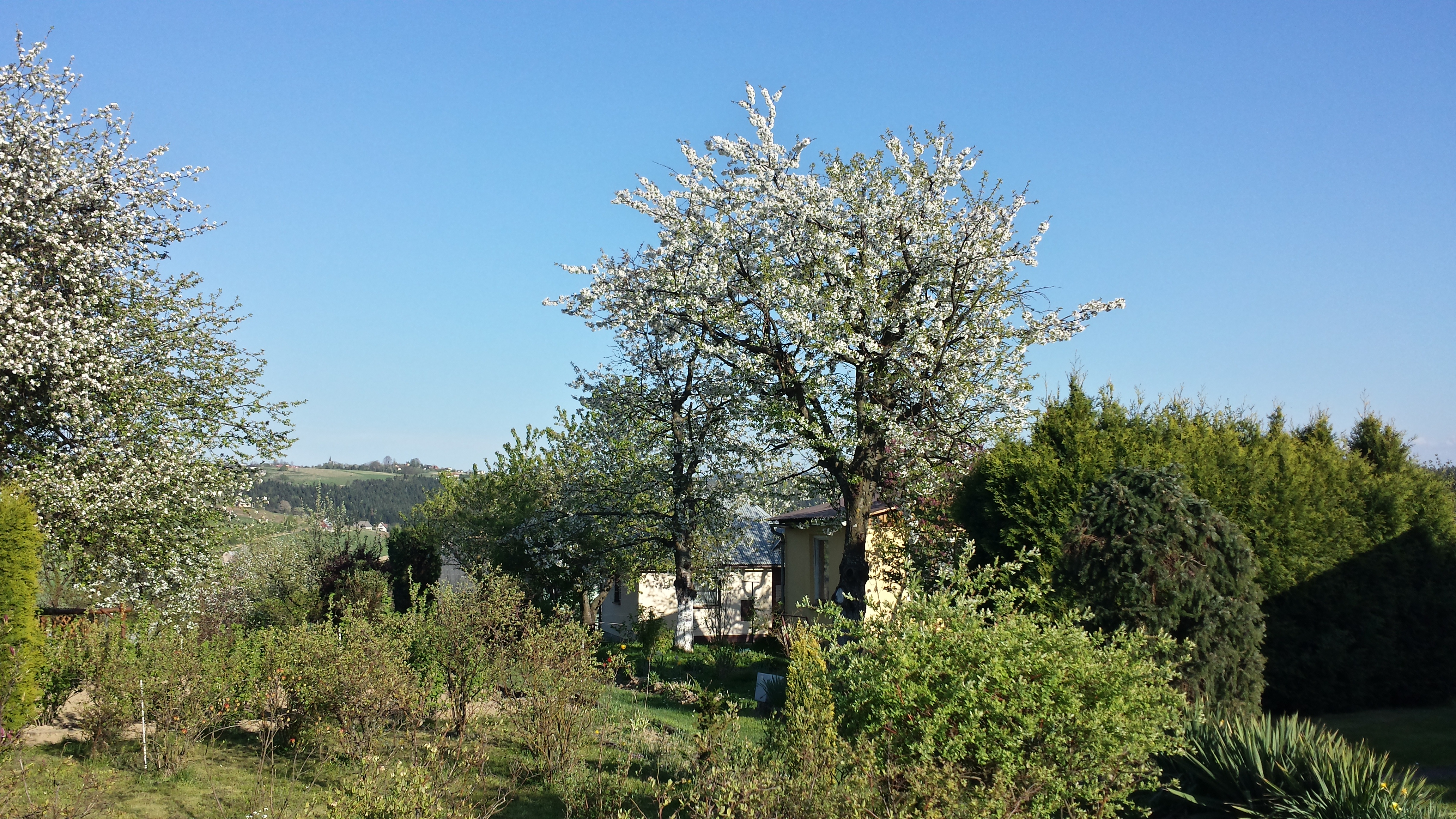 20 kwietnia miałem wolne i od rana postanowiłem spędzać czas na świeżym powietrzu. Pogoda dopisała? To mało powiedziane. Ten dzień uważam za opus magnum kwietnia 2018 – jego najpiękniejszy moment – choć jestem w stanie zaryzykować nawet dalej idące stwierdzenie – najpiękniejszy dzień 2018 roku. Po długim ciągu ekstremalnie ciepłych dni, 20 kwietnia sceneria dookoła mnie była już wręcz letnia. Niemal wszystkie drzewa były już choć trochę zielone, kwitło wszystko od hiacyntów przez tulipany, magnolie, aż po czereśnie i jabłonie, co powodowało istną ferię barw. Wybrałem się na spacer do lasu i Miasteczka Galicyjskiego w celu obserwacji przyrody i porobienia zdjęć. Pogoda nie była dobra, ani bardzo dobra. Była doskonała i to pod każdym względem. Niebo było jaskrawo lazurowe, pozbawione choćby jednej chmurki. Na jego tle biel, róż i zieleń wyglądały wyjątkowo pięknie. Drzewa owocowe aż „chodziły” od setek obsiadających je pszczół. Kiedy wyszedłem na niewielką górkę za swoim domem, czekało mnie prawdziwe zdumienie. Nigdy z tego miejsca nie widziałem takich Tatr. Zdarza się czasami zobaczyć zamglone wierzchołki paru szczytów, ale tego dnia wszystko wyglądało tak, jakby góry były dwa razy bliżej. Zbliżone widoki miałem parę razy w życiu, lecz teraz wszystko wyglądało tym bardziej niezwykle, że odległe szczyty pokryte były śniegiem, stwarzającym wrażenie pewnej „nierealności”. Temperatura – doskonała. Przy 20,7 stopnia było idealnie przyjemnie, a ja zapomniałem o swoim strachu (a właściwie dyskomforcie) spowodowanym ekstremalnymi anomaliami. Nie było wiatru, więc promienie słońca łagodnie otulały przyjemnym ciepłem. Jak w idyllicznej bajce, chciałoby się zatrzymać takie chwile, tę przepiękną wiosnę, która 20 kwietnia pozostała wiosną i oszczędziła przesadnie wysokich temperatur. Do złudzenia podobna pogoda wystąpiła w dniu moich narodzin, może to dlatego mam taką słabość do tego typu warunków? Tak wyglądał 20 kwietnia 2018 roku w moim obiektywie: