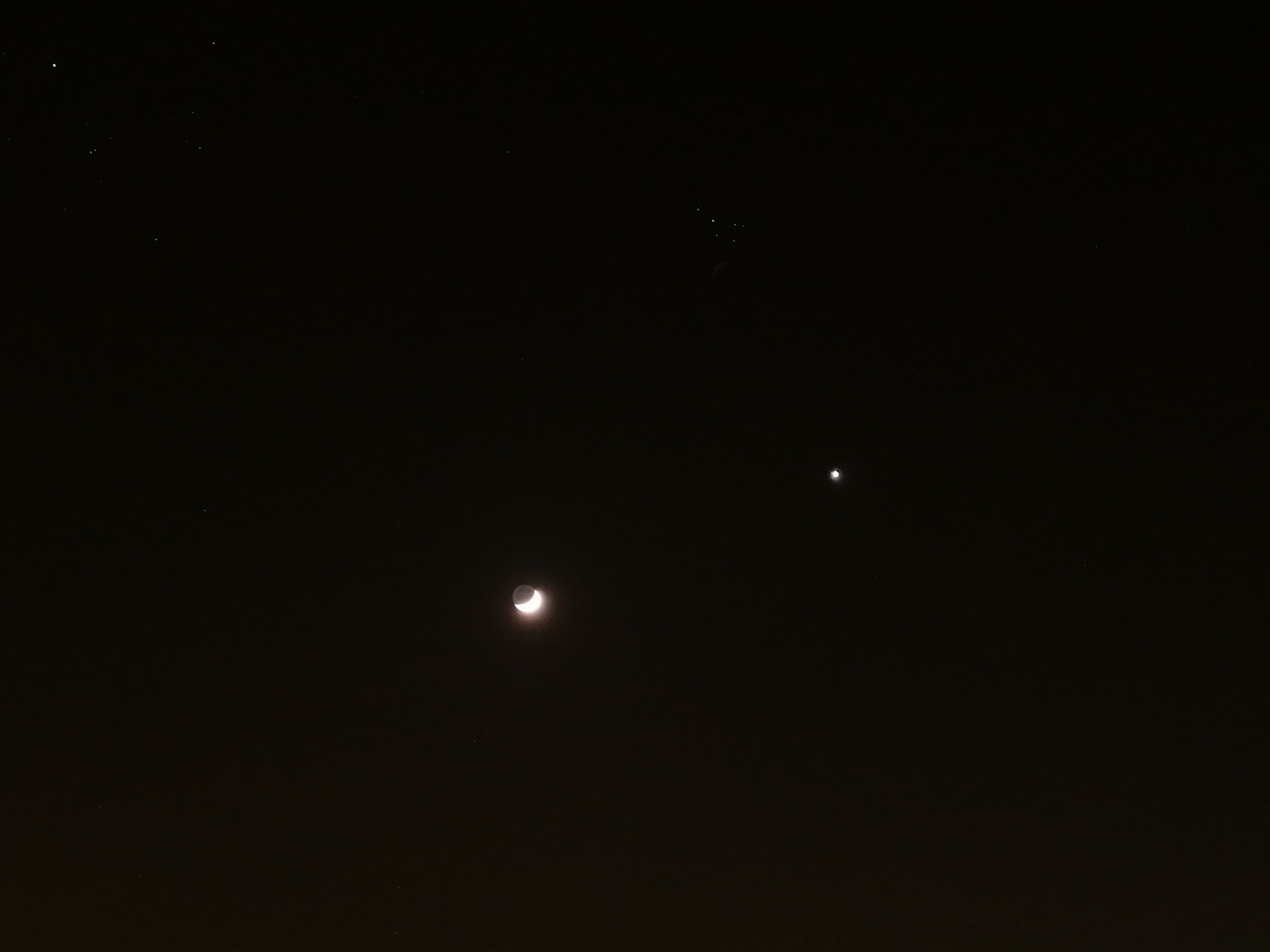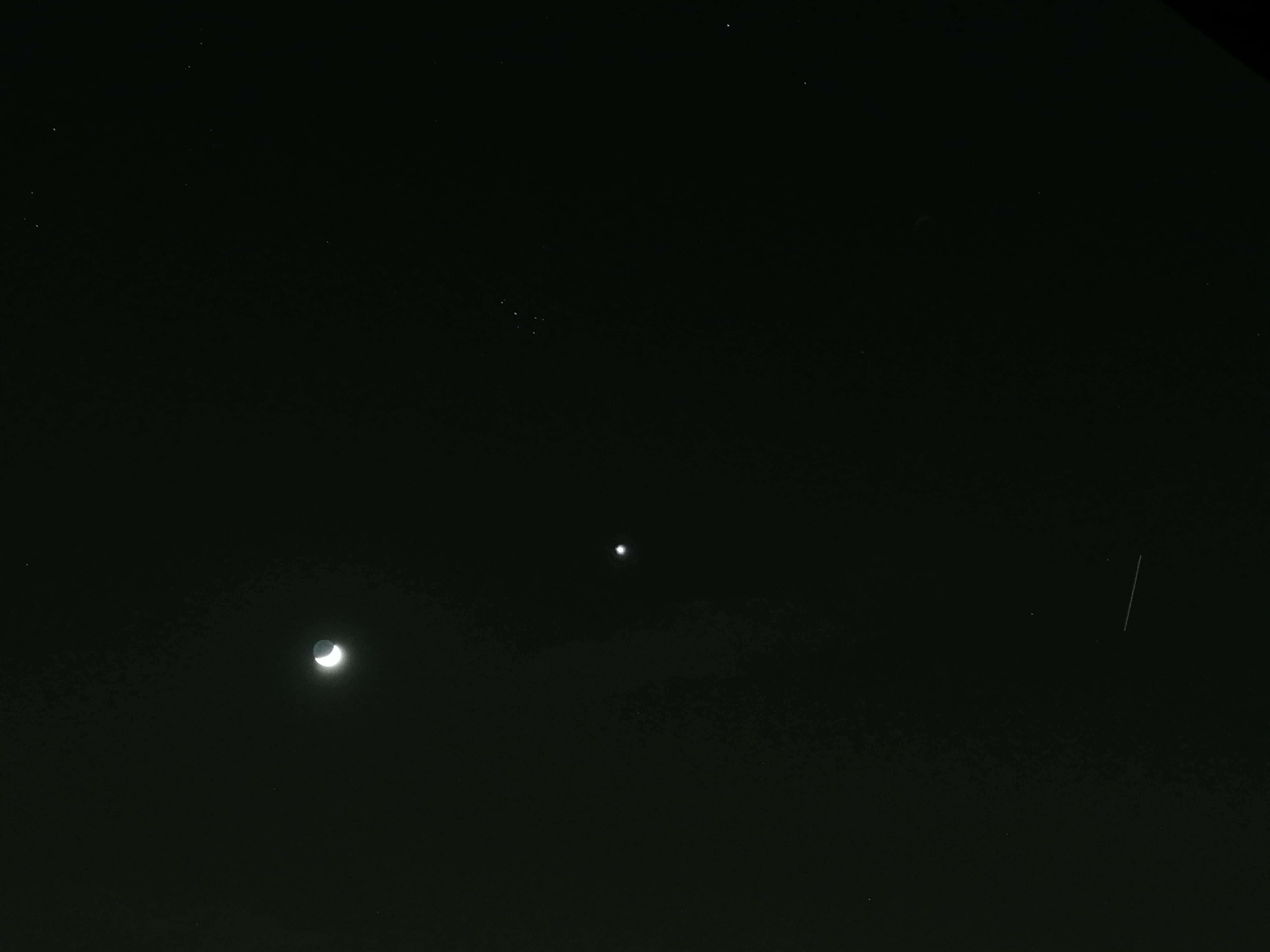 Poniżej zdjęcia z dzisiaj. Na ostatnim z nich, w formie kreski na prawo od Wenus, widać także przelot Międzynarodowej Stacji Kosmicznej. Jeśli dopisze pogoda, to 3 kwietnia postaram się również uwiecznić spektakl, być może z użyciem teleskopu :)