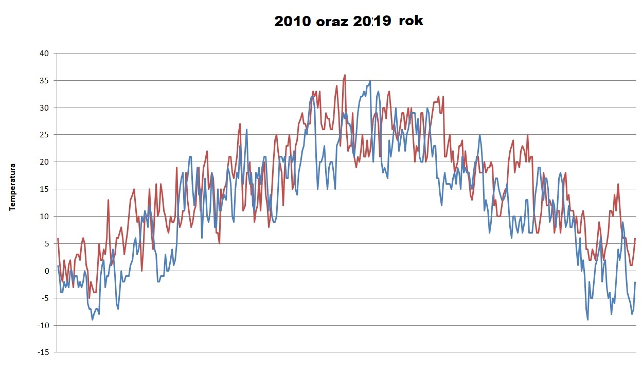 Średnia miesiąca 2010; -8,95*C a 2019; -1,48*C