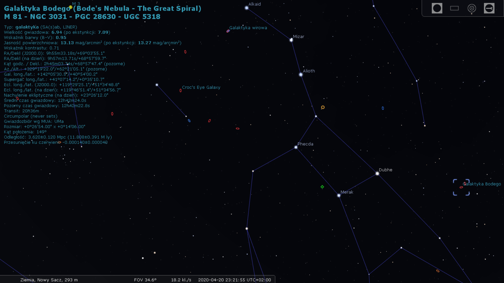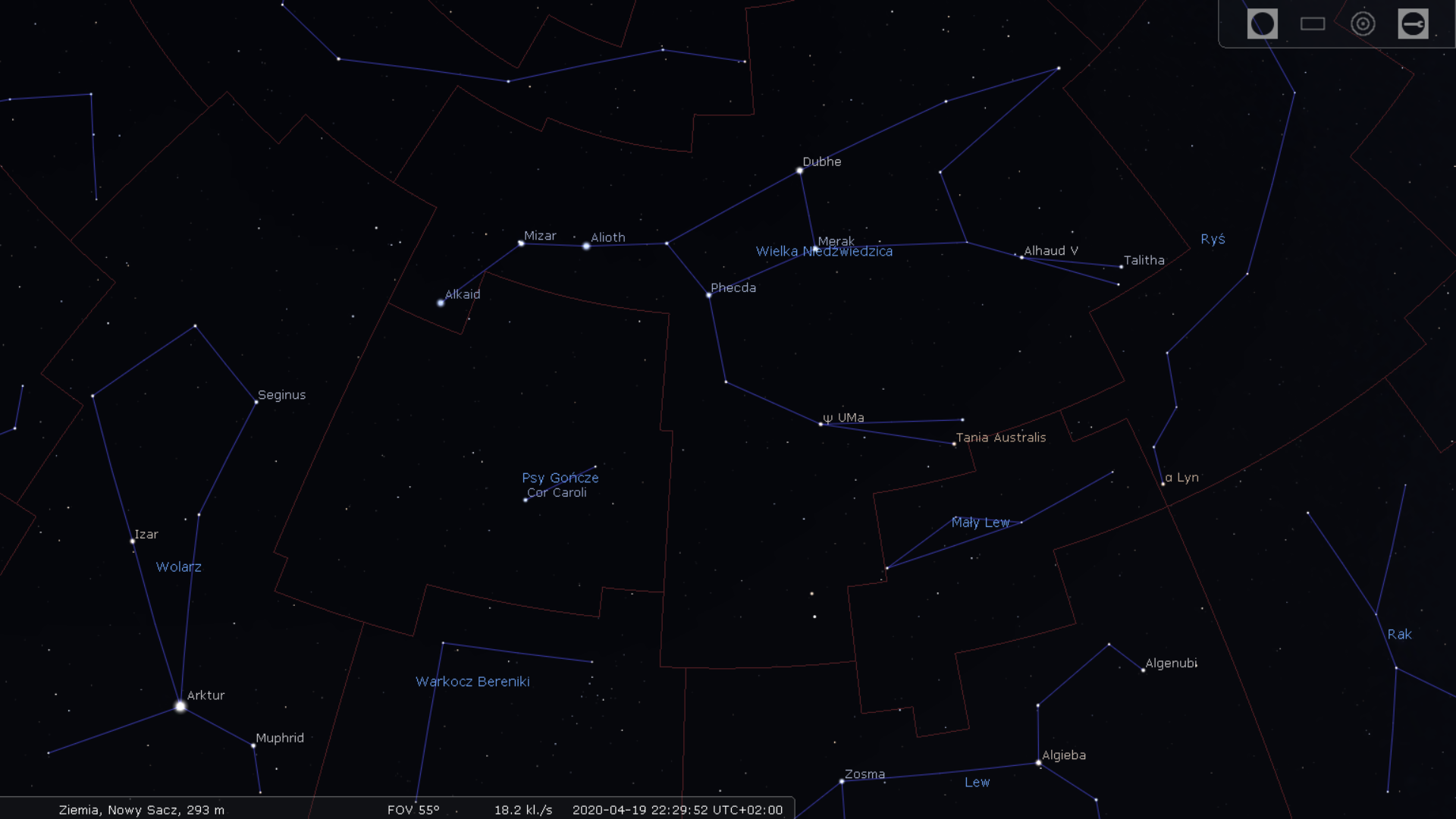 Wielka Niedżwiedzica, choć widoczna przez cały rok, w najlepszym (najwyższym) położeniu znajduje się wiosną, i to wtedy szukanie poniższych obiektów powinno okazać się najbardziej owocne :)